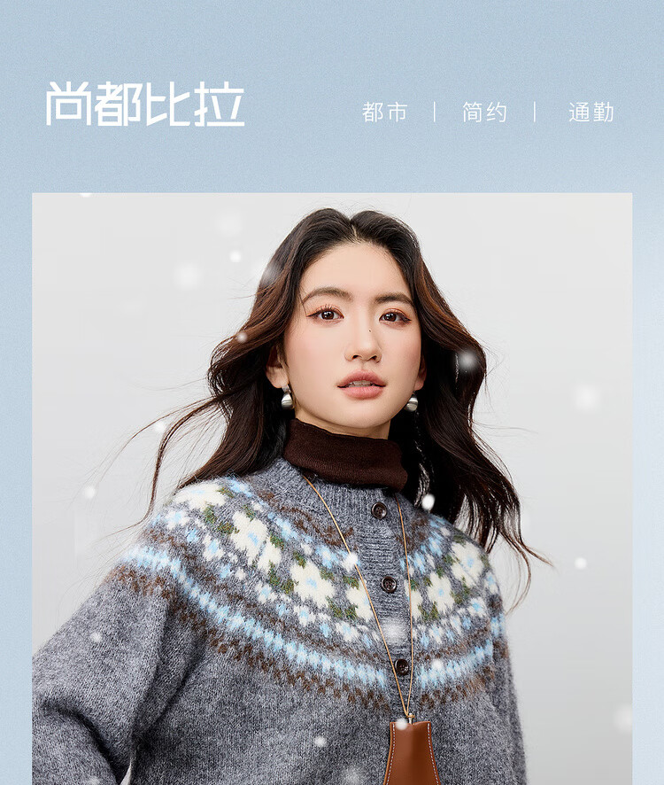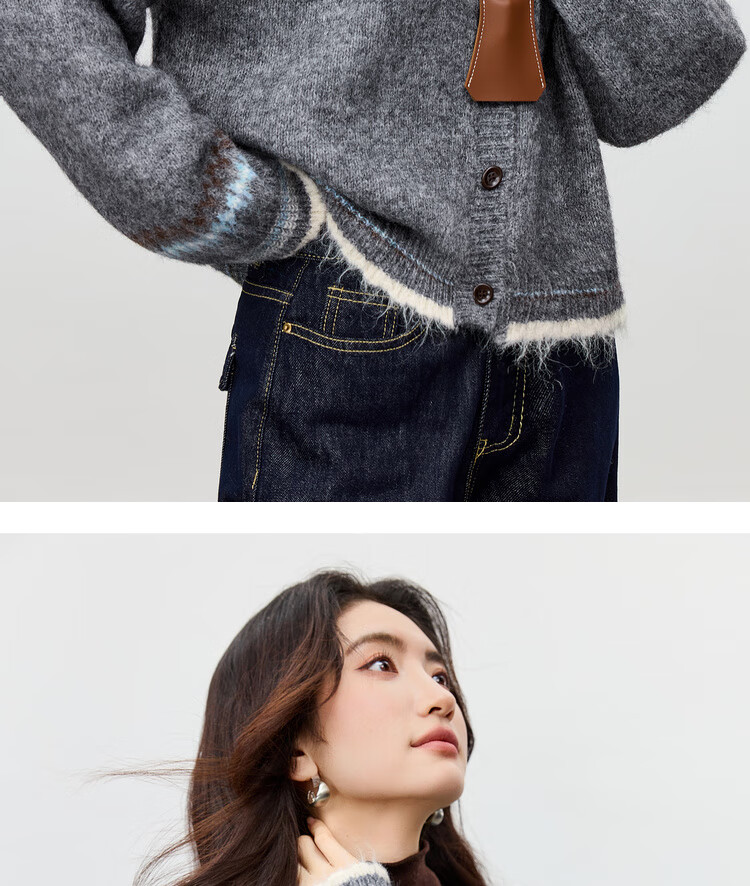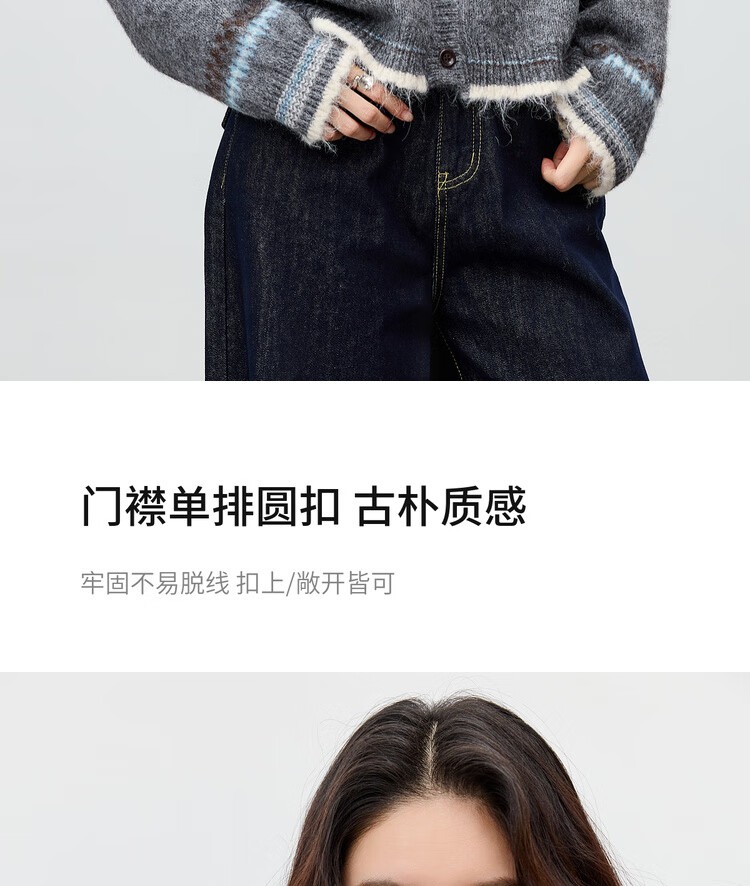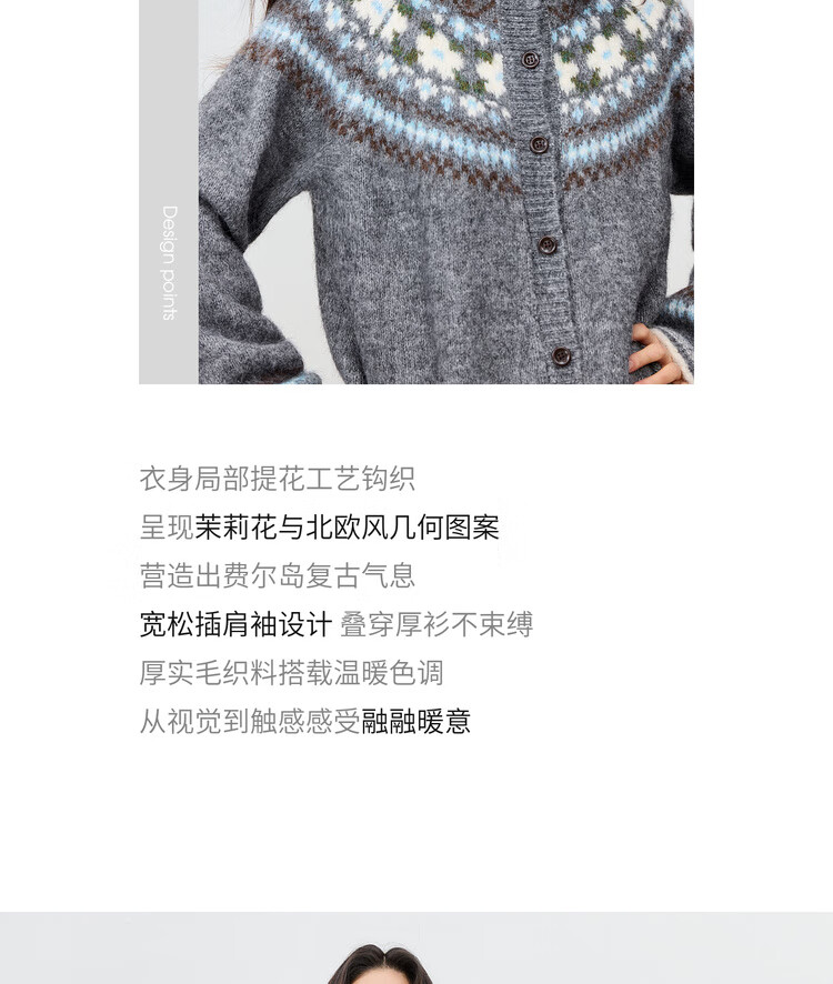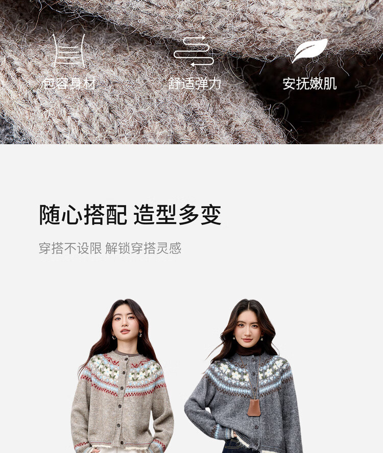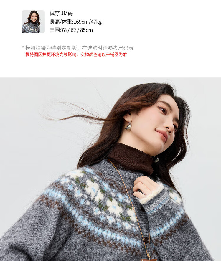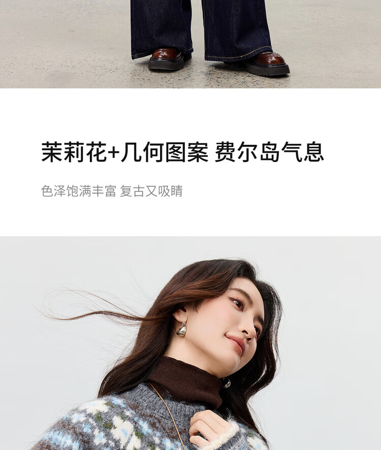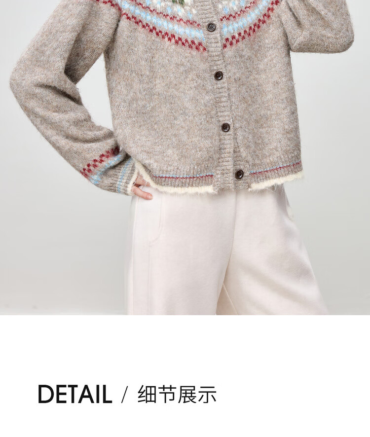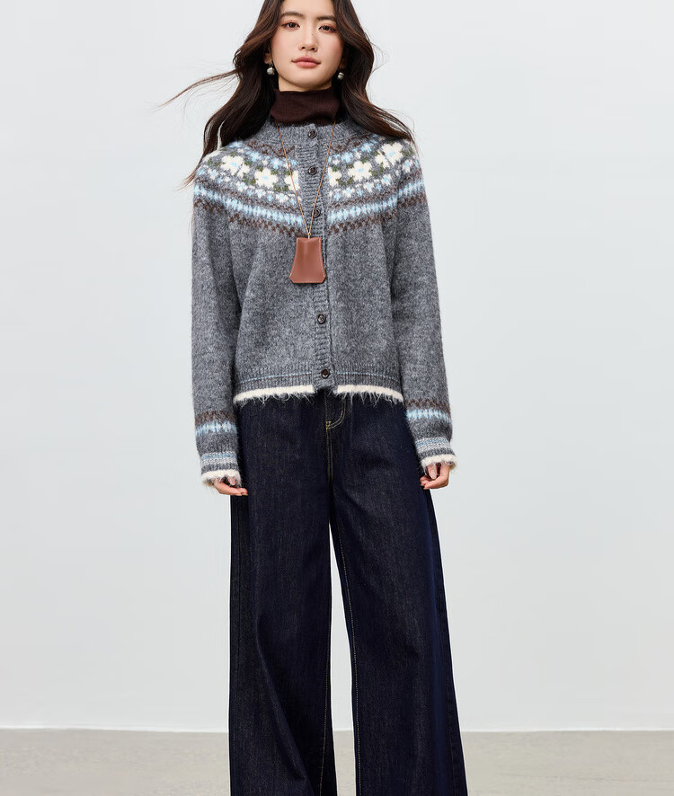 Shandubira Fair Island retro style sweater for women in winter containing sheep wool warm round neck long-sleeved sweater loose slimming cardigan