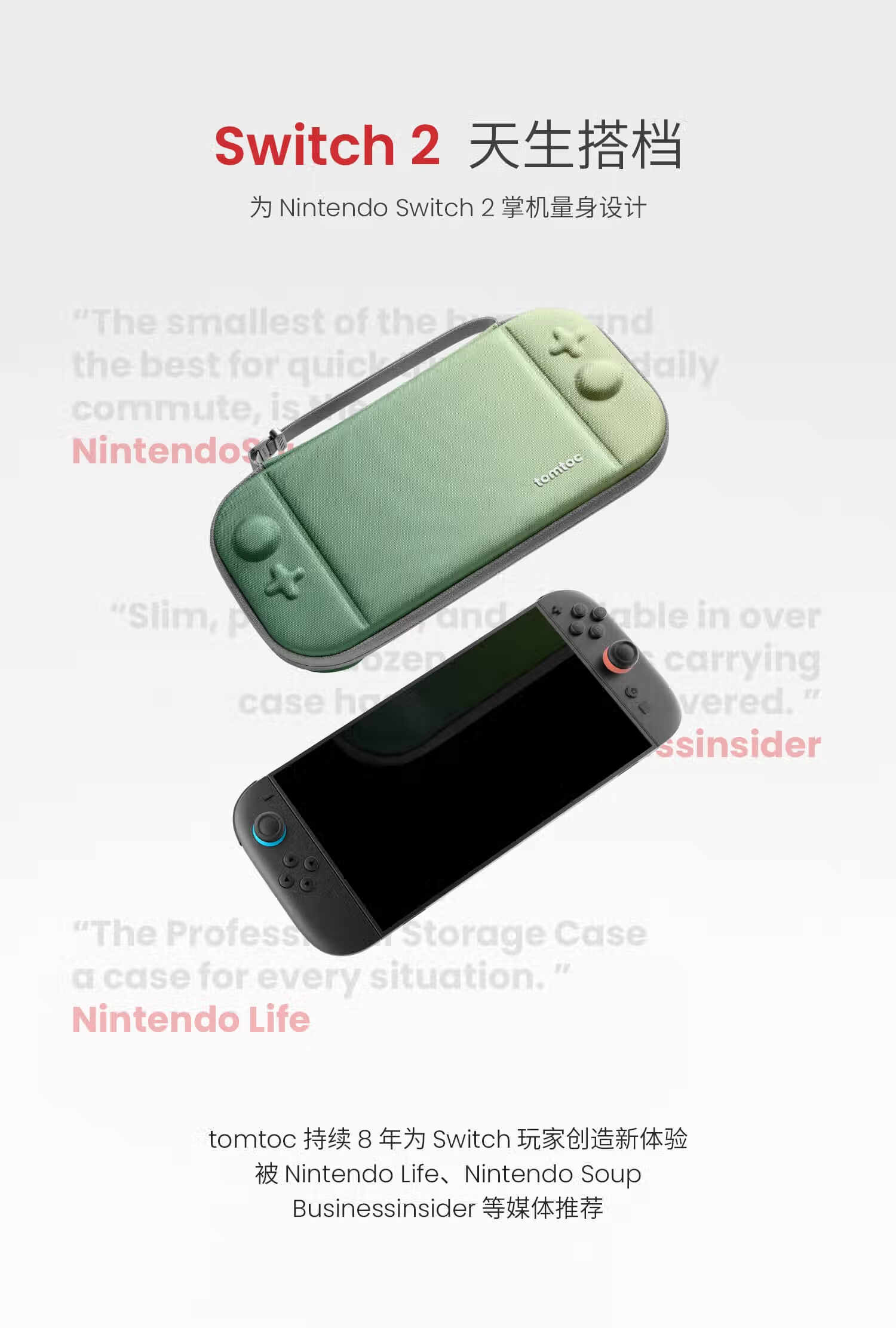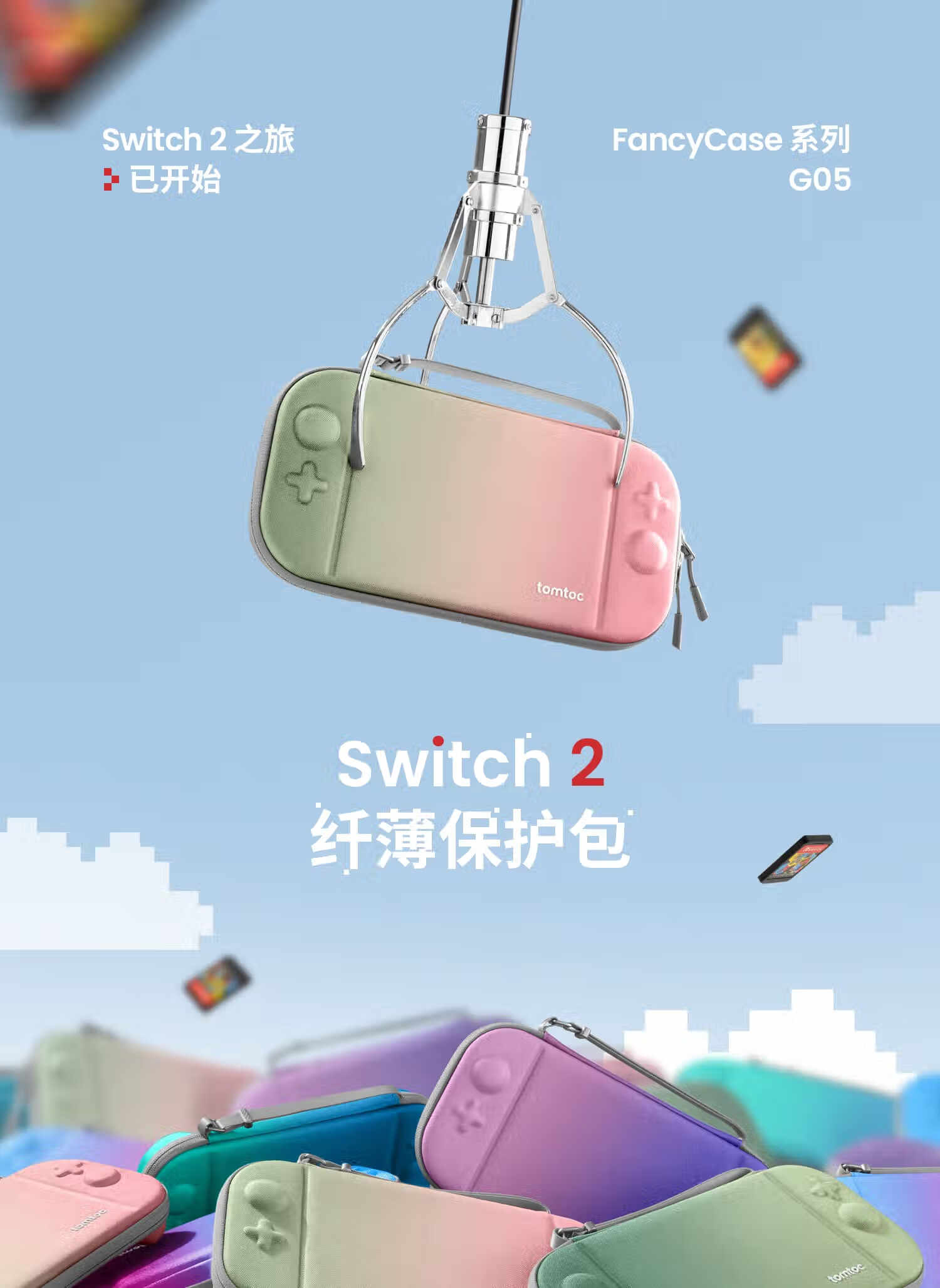 Tomtoc Switch2 storage bag N2 accessories slim storage bag protective cover Nintendo anti-fall and pressure-resistant classic gray suitable for Switch2