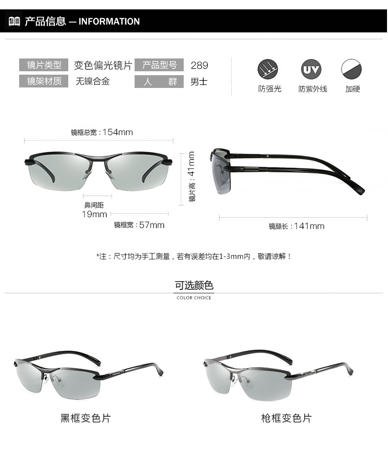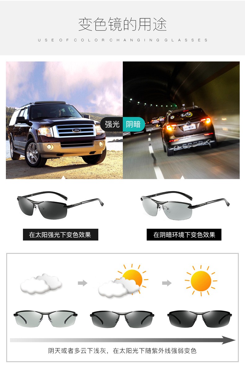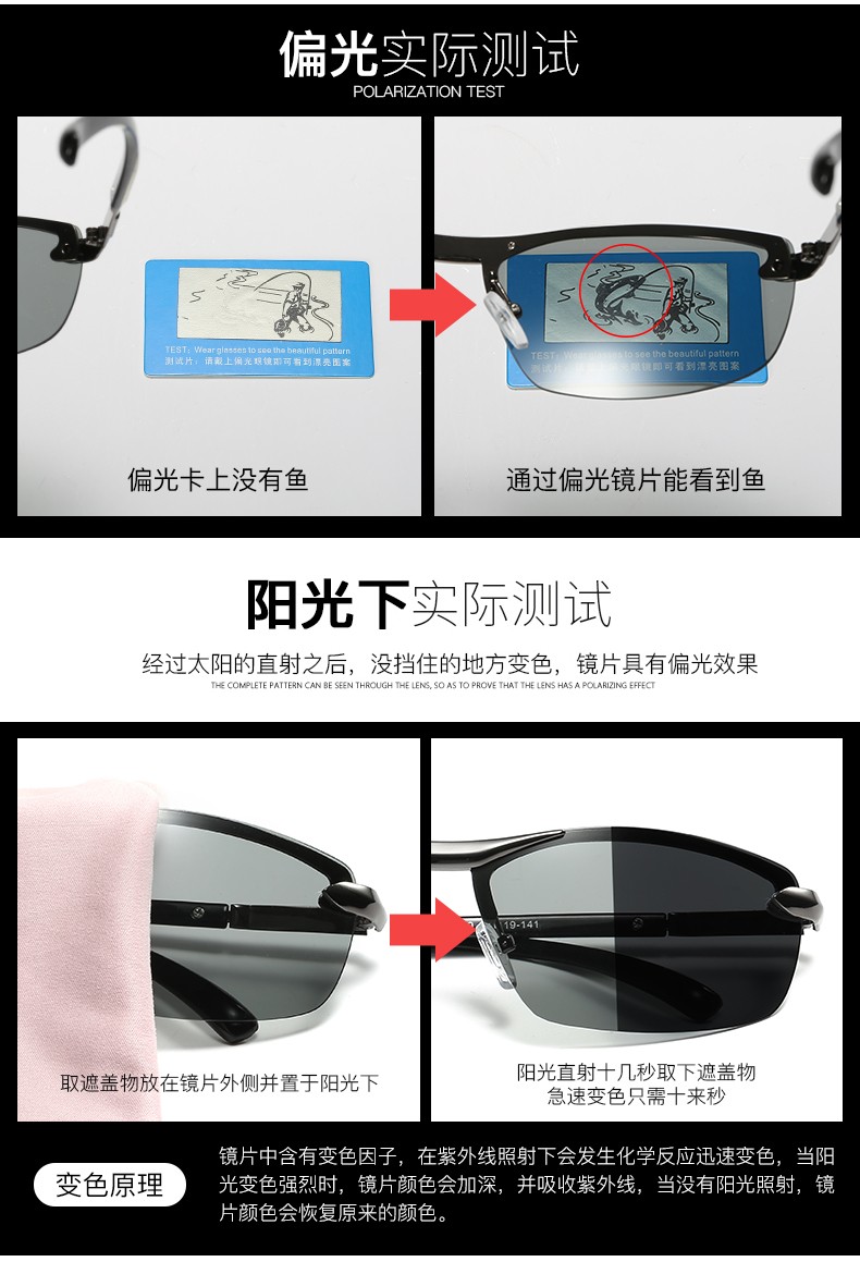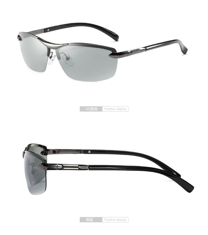 PAMIAO photochromic polarized sunglasses, men's sunglasses, day and night, special for driving, fishing sunshade, anti-high beam, black frame, color-changing gray film