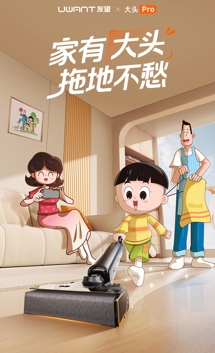 Uwant Youwang's new floor washing machine Big Head Pro is launched, the first D-shaped roller brush, washing, mopping and suction all-in-one automatic cleaning and mopping machine, household handheld electric mop