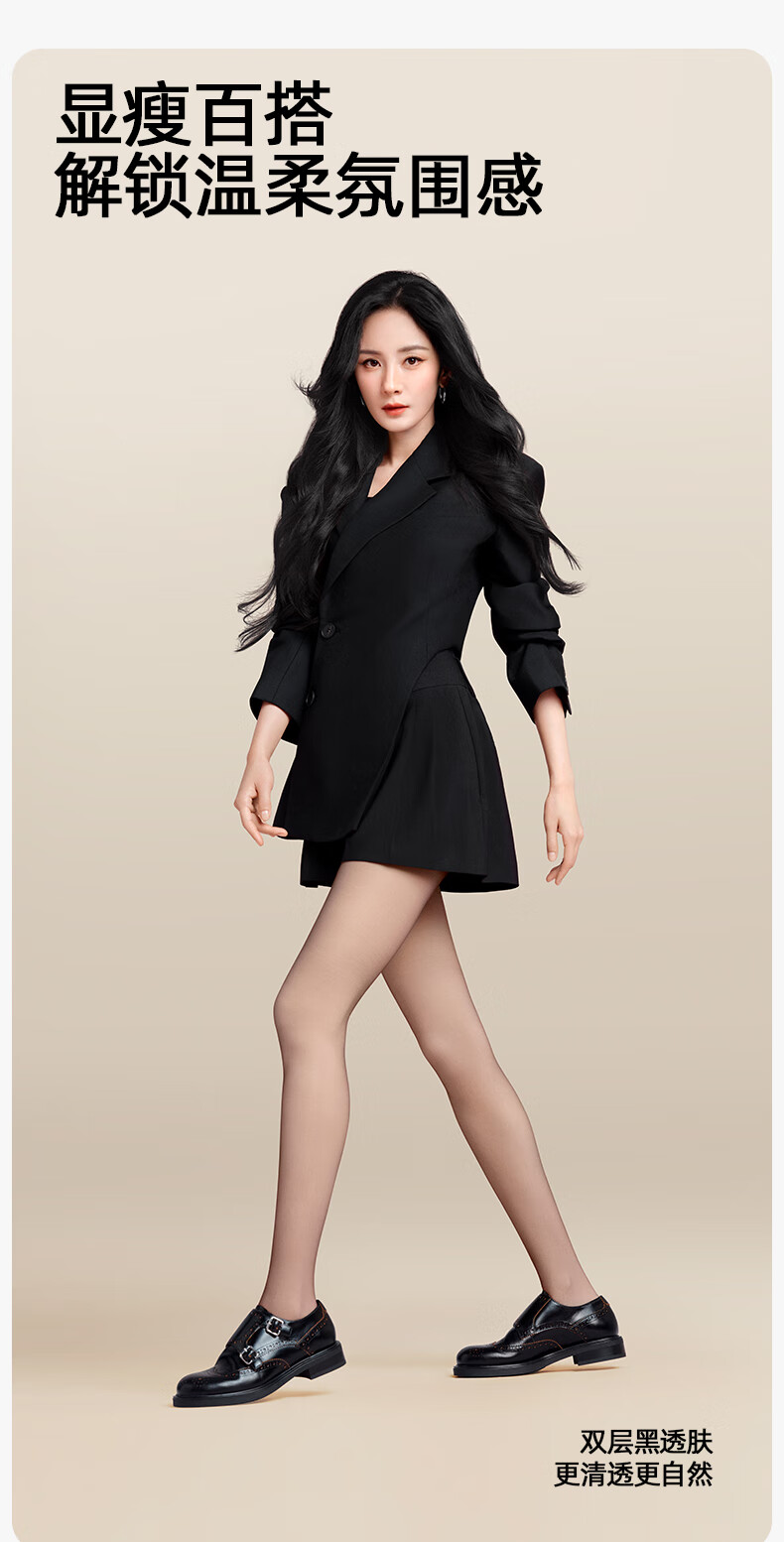 Ono Kazuko Yang Mi's same style double-layer black stockings bare legs artifact autumn and winter women's black translucent leggings