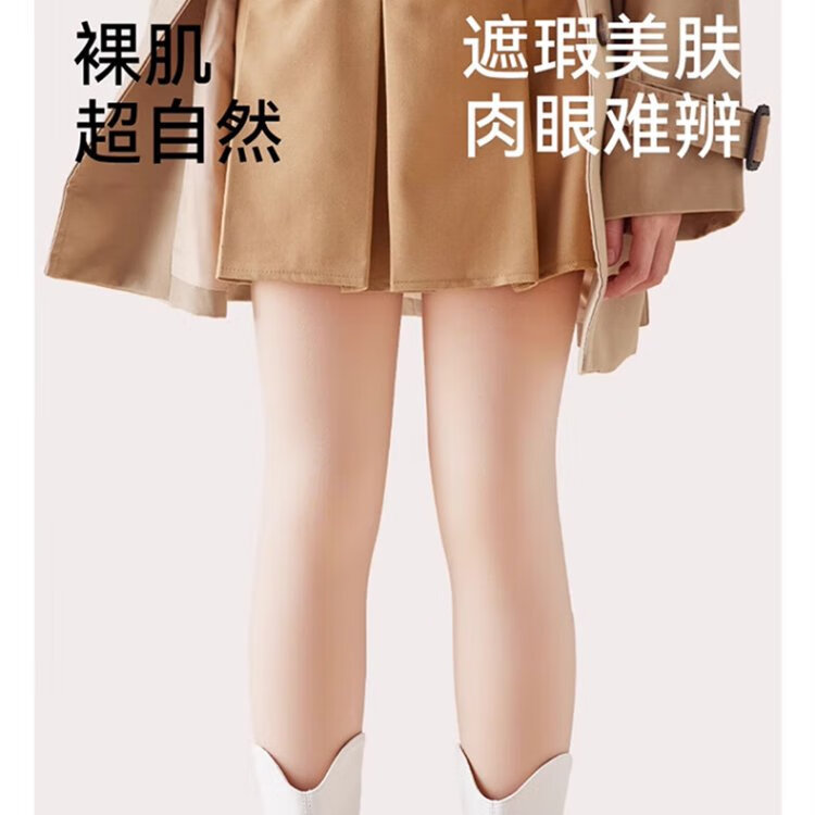 Langsha Children's Bare Legs Artifact Autumn and Winter Plus Velvet Thickened Skin Color Pantyhose Winter Outerwear Stockings Girls Flesh-Colored Leggings