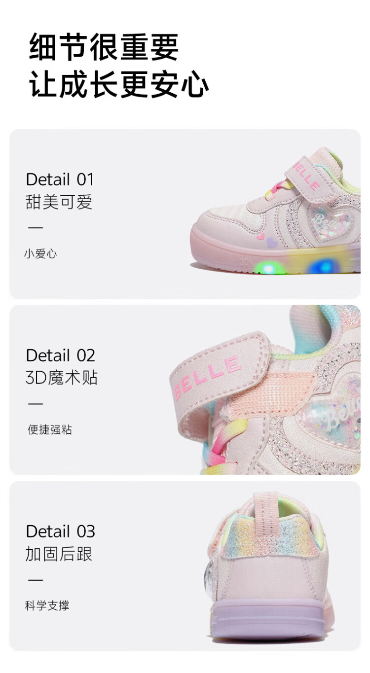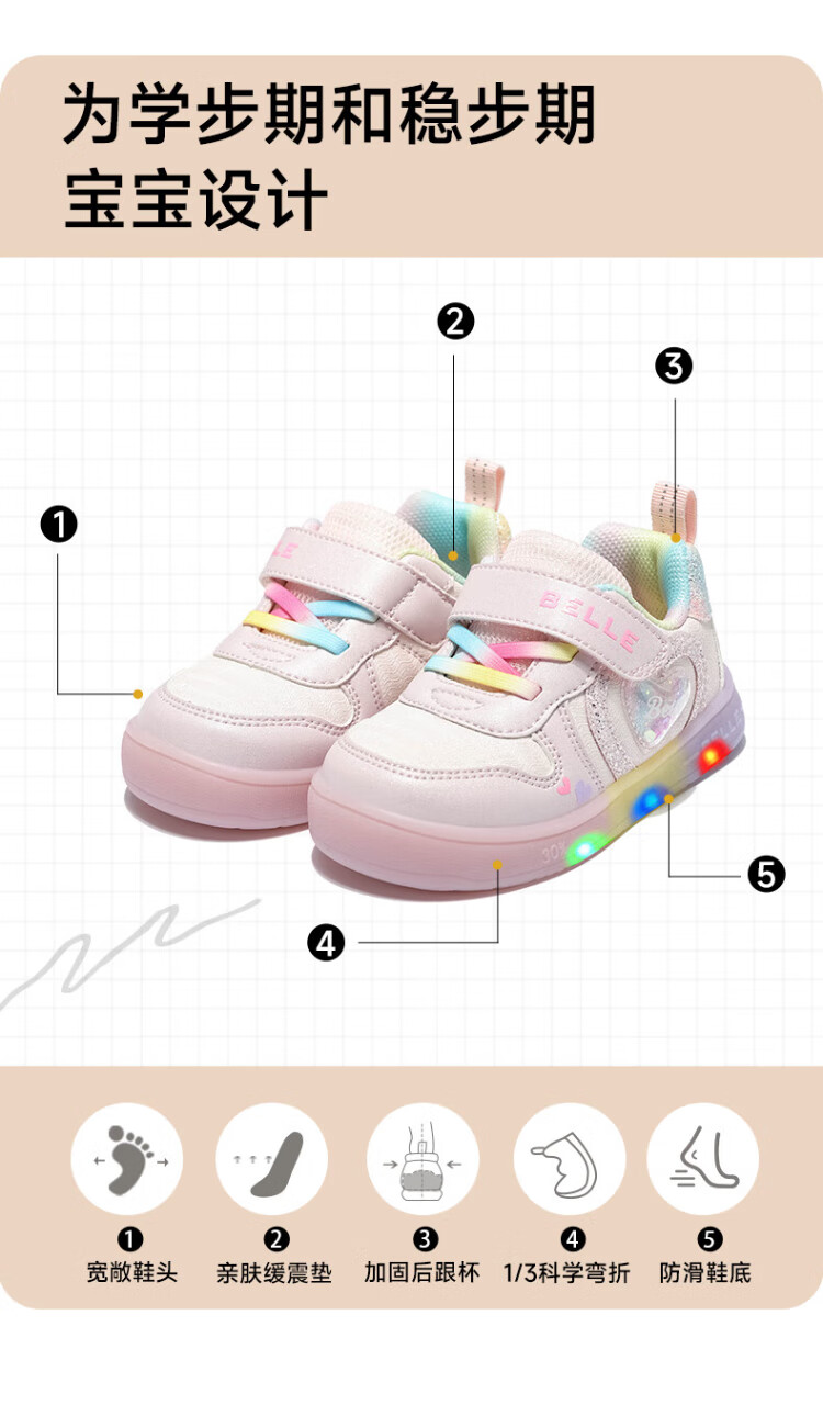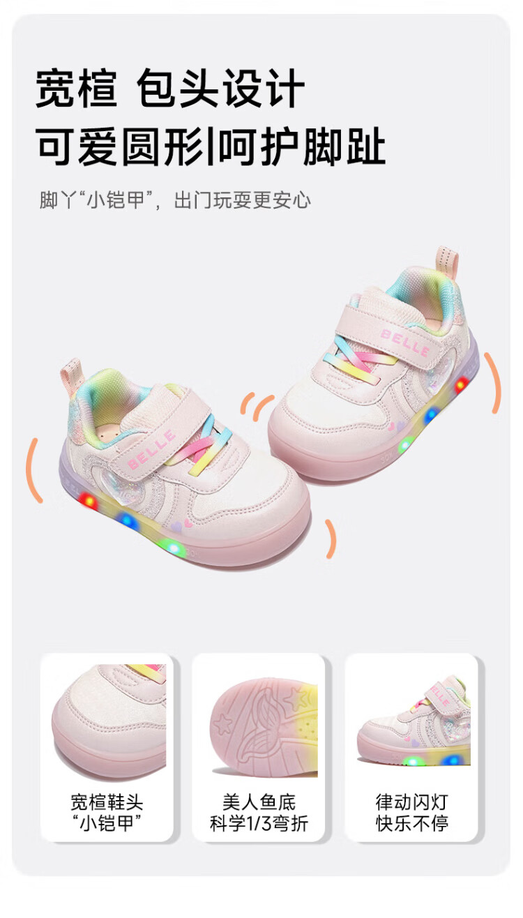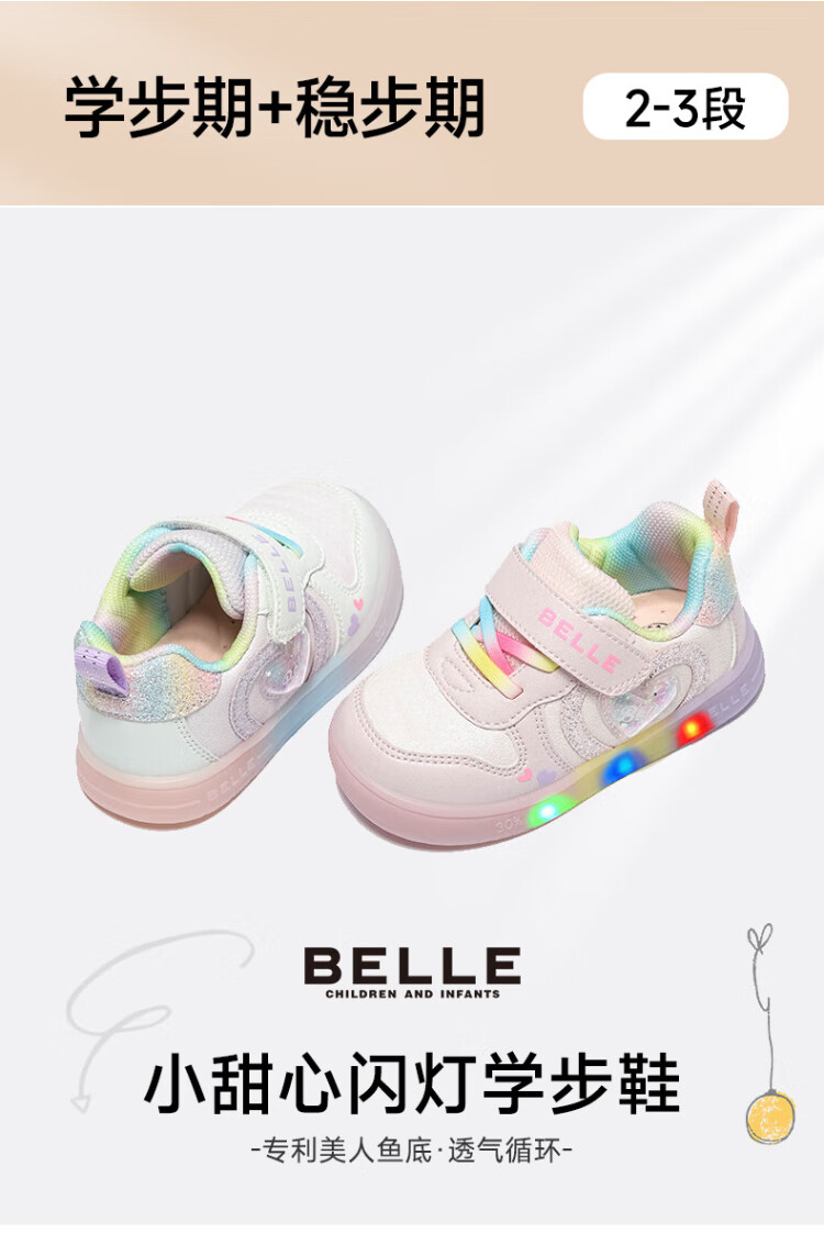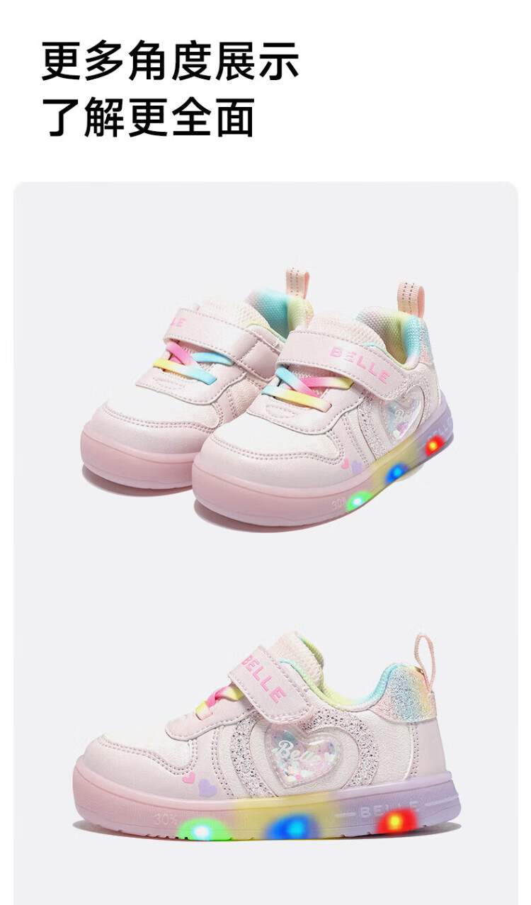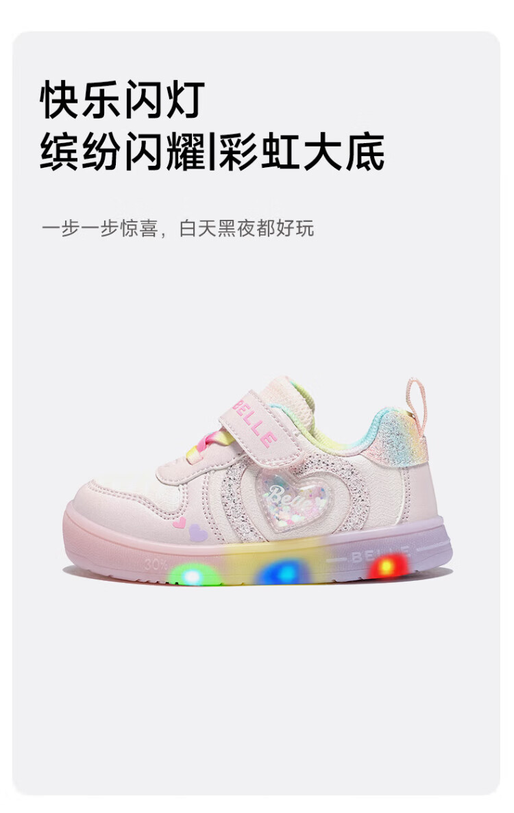 Belle Children's Shoes 2025 Autumn New Girls' Flashing Shoes Baby Casual Sneakers Girls' Sports Shoes Pink 26