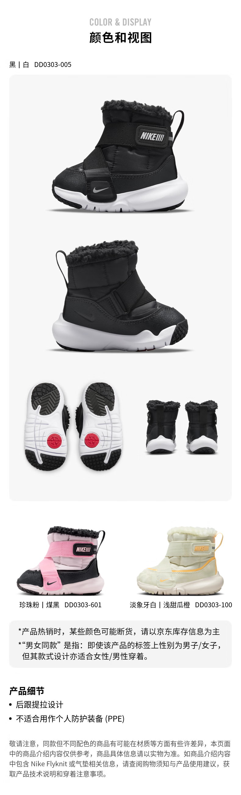 Nike (NIKE) small flying saucer baby easy to put on and take off warm sports boots winter plush baby for boys and girls NIKE DD0303