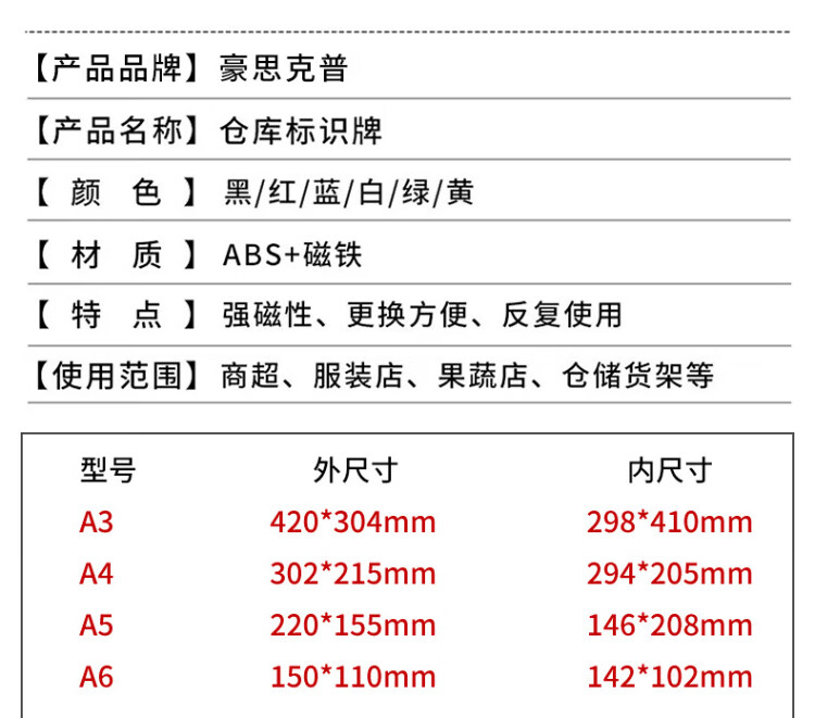 Hauskop magnetic shelf signage 5 pack A5 blue warehouse material classification label sign warehouse partition cargo location card indicator sign