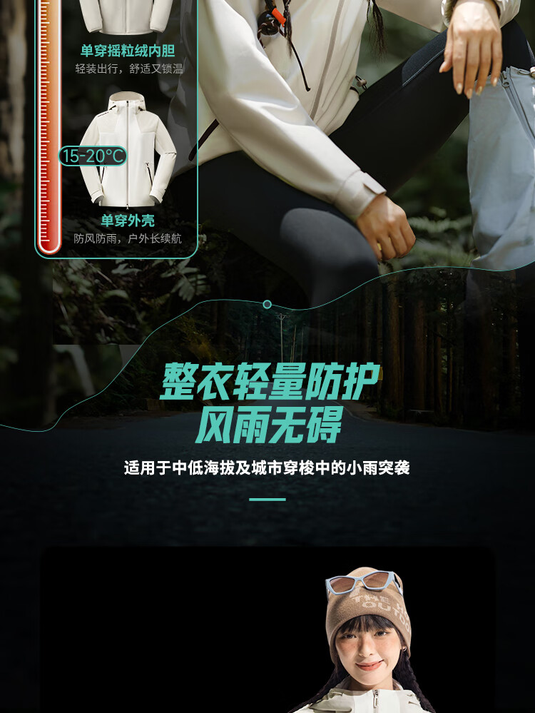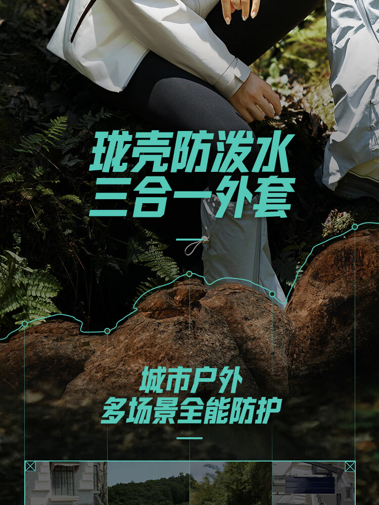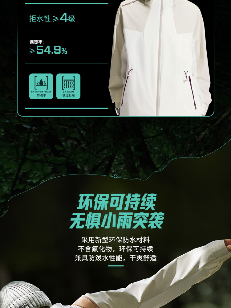 Li Ning (LI-NING) outdoor CF traceable three-in-one jacket women's 25 autumn and winter velvet water-repellent hiking windbreaker AWBV090