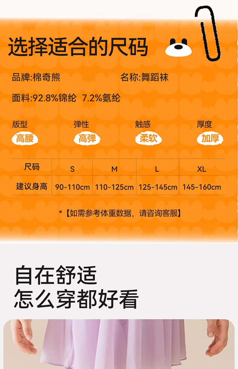 Mianqi Xiong girls dance socks autumn and winter children's leggings plus velvet thickened dancing spring and autumn stockings leggings 1 pair WDW05-M