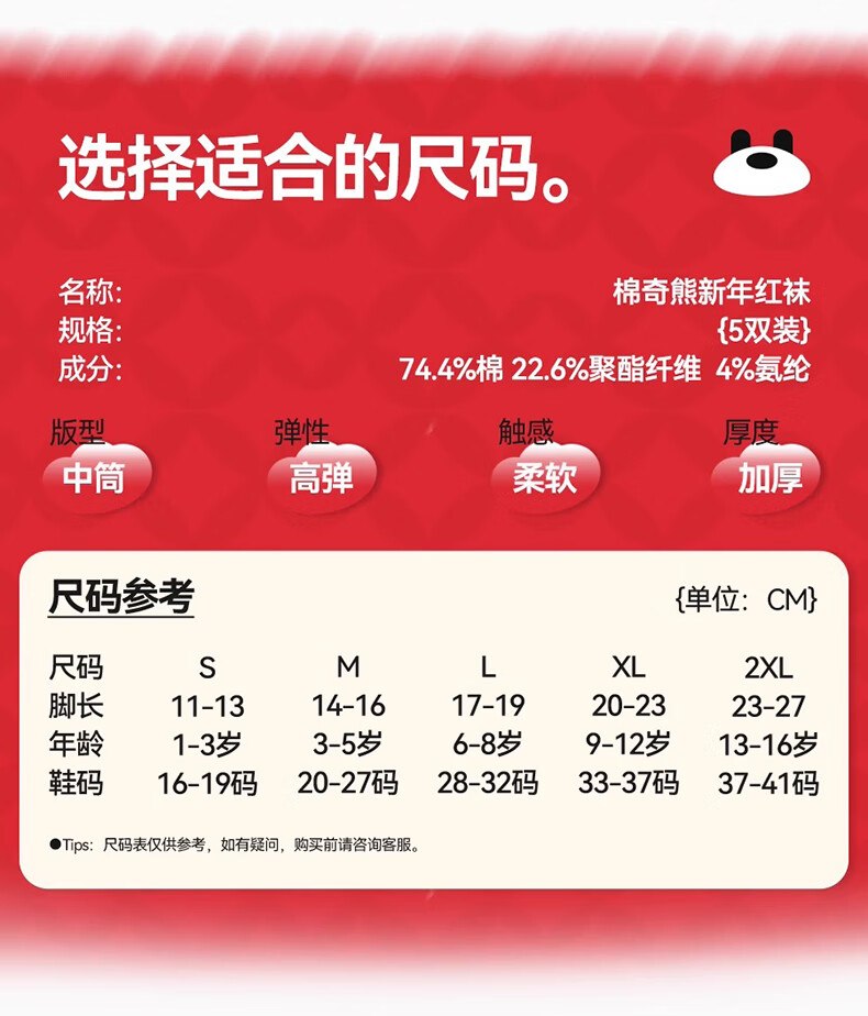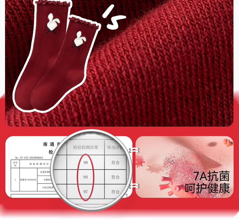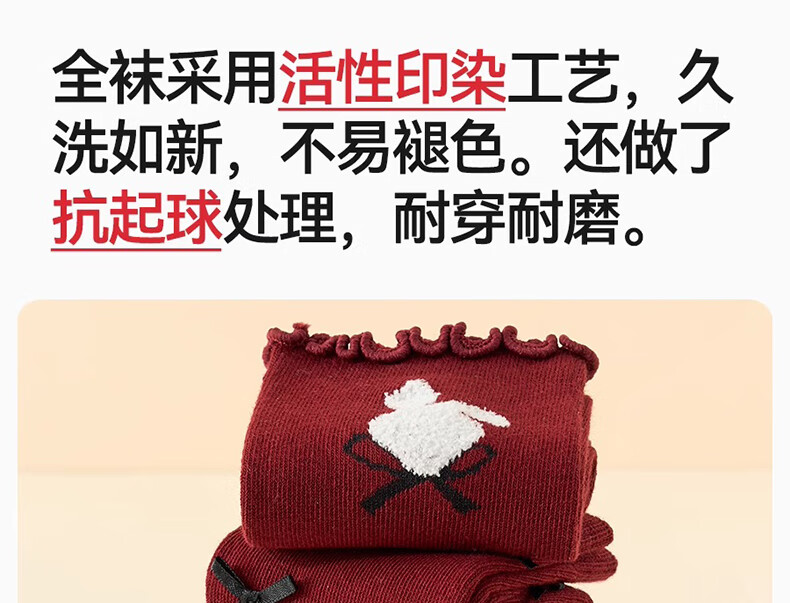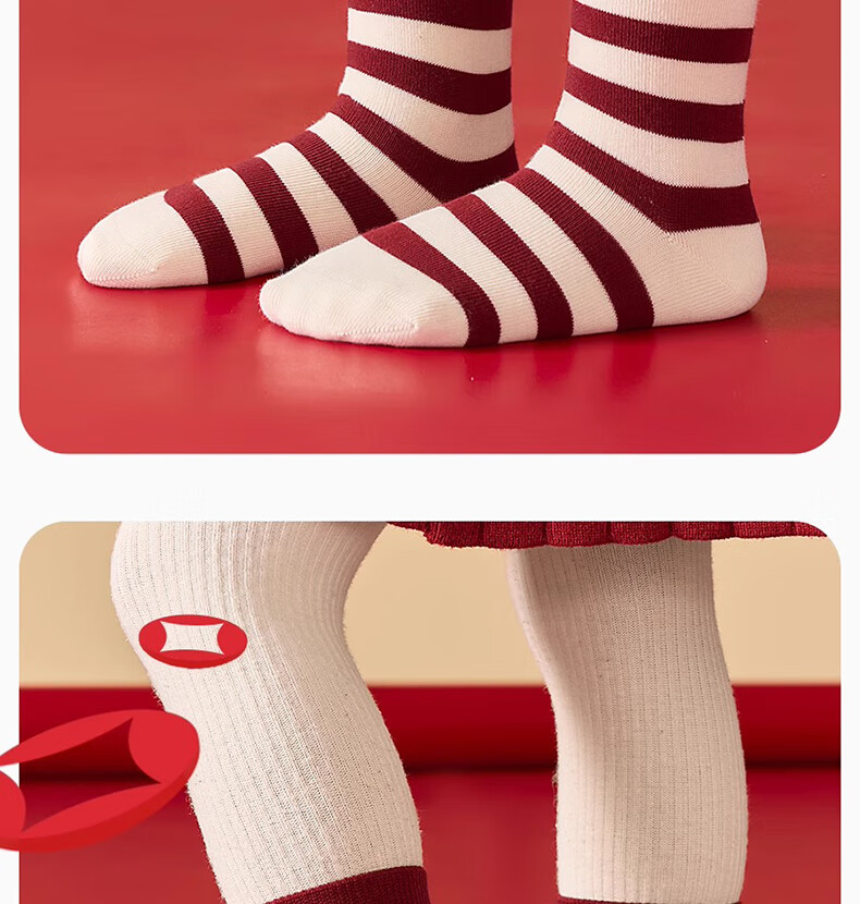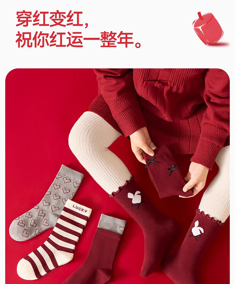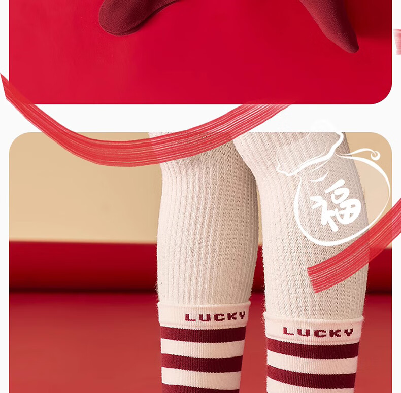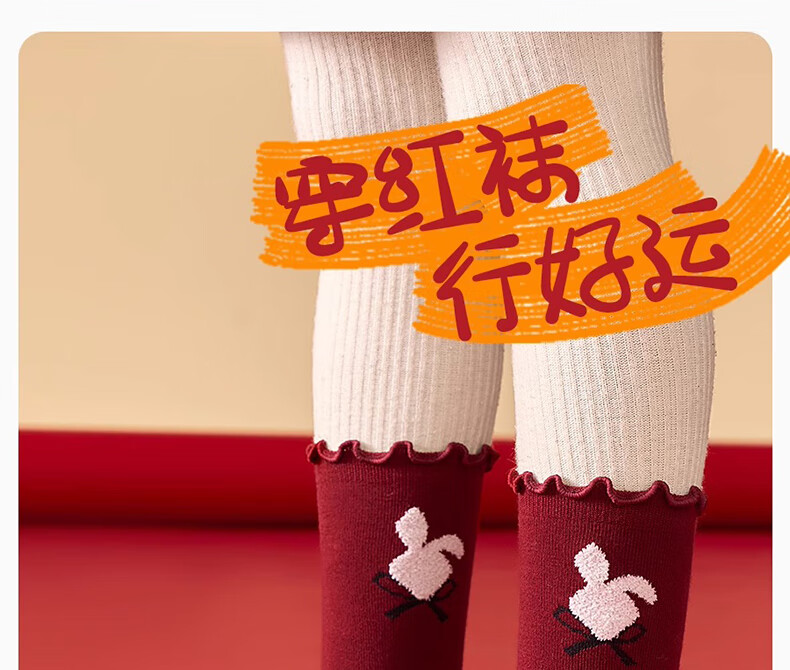 Mianqi Bear Girls Red Socks Children's Winter Pure Cotton Zodiac Long Socks Girls Autumn Winter New Year Cotton Socks XNY37-13-16