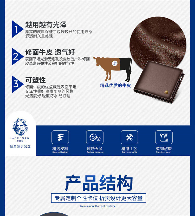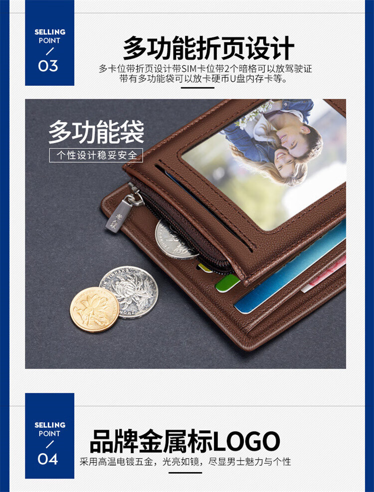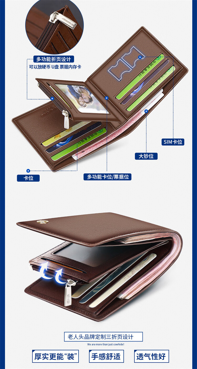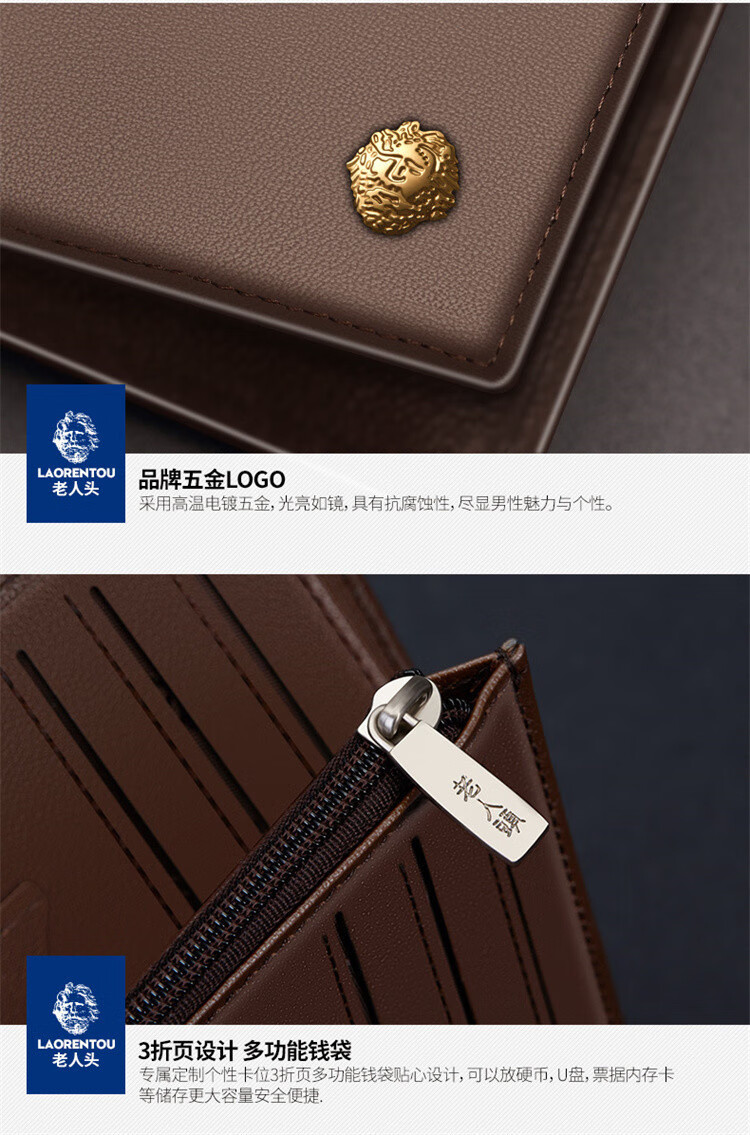 Old man's head men's wallet short business first-layer cowhide horizontal style two-fold coin purse ticket holder multi-card slot wallet Valentine's Day
