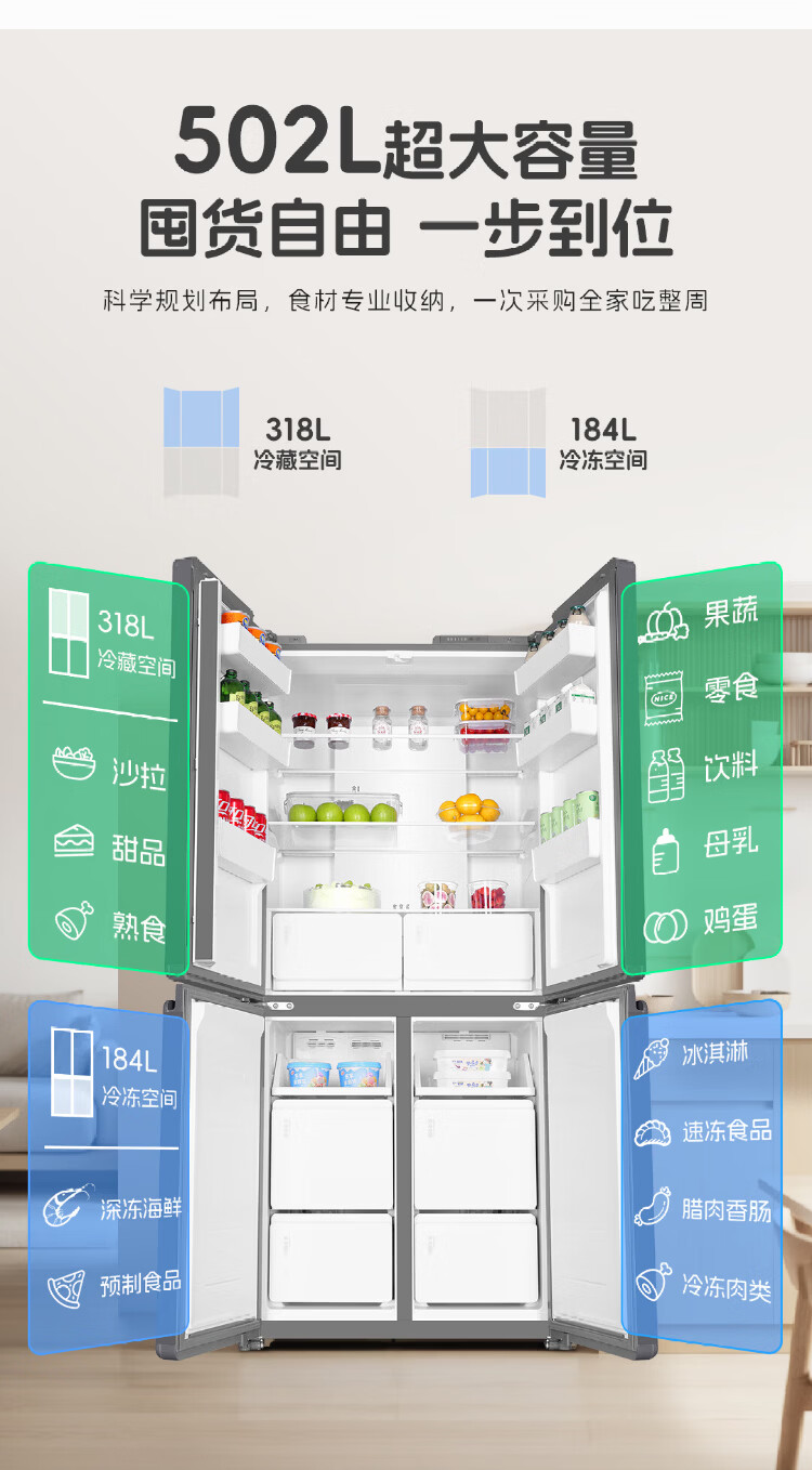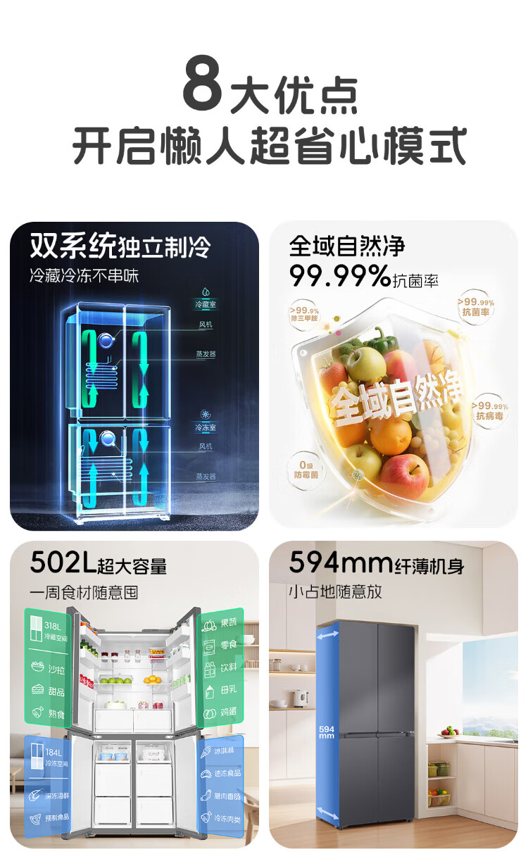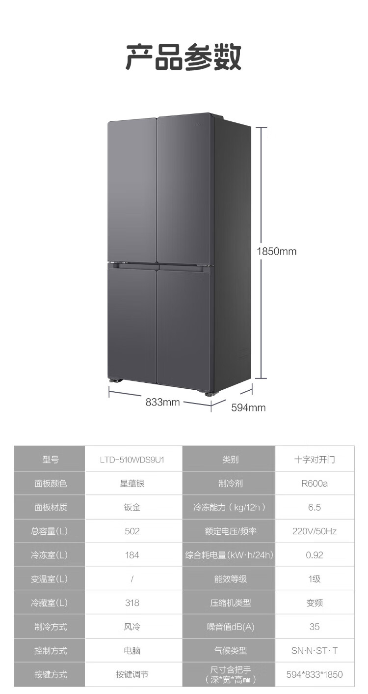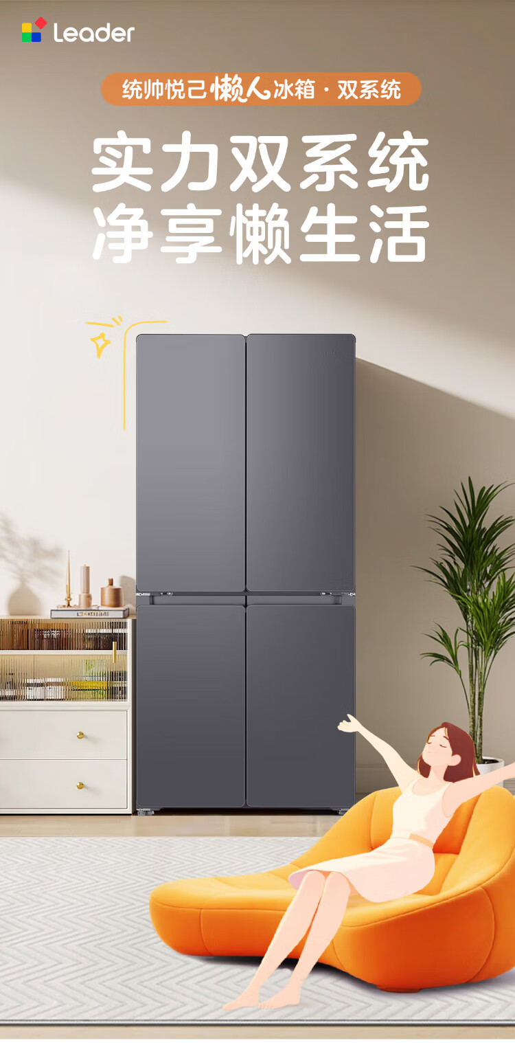 Leader Haier refrigerator produces lazy 510 series 502L cross-door household refrigerator ultra-thin dual system large capacity LTD-510WDS9U1 trade-in national subsidy of 20%