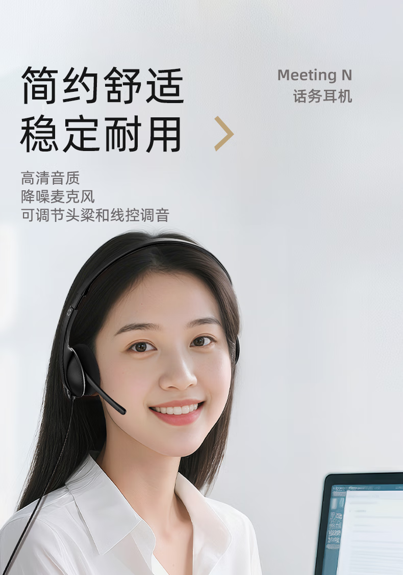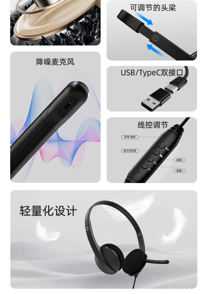 HP (HP) MeetingN wired headset headset call center customer service dedicated high-definition noise reduction headset computer office online course learning level 4 and 6
