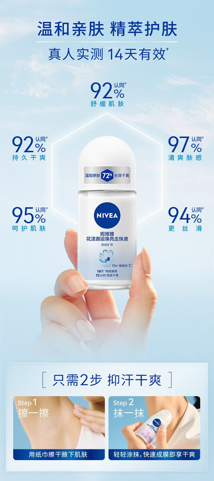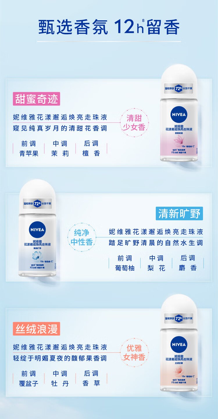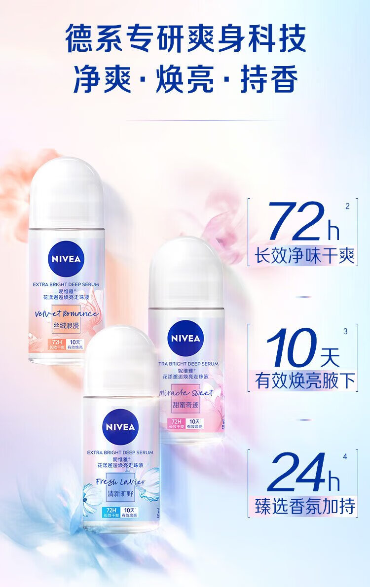 NIVEA Flower Encounter Brightening Lotion Series Sweet Miracle 50ml*2 (underarm antiperspirant, antiperspirant and dry)