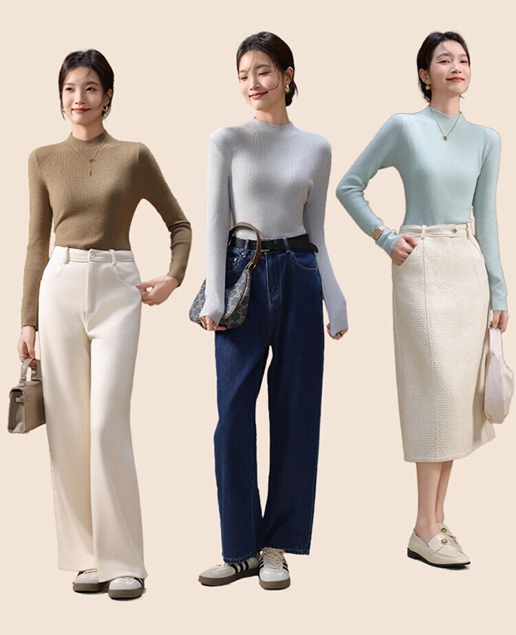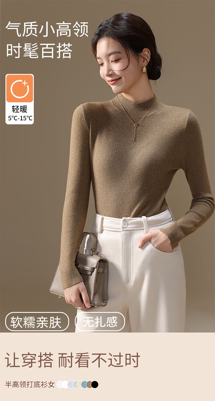 Urban Beauty Knitwear Women's Half Turtle Collar 2025 Autumn and Winter New Style Bottoming Shirt for Women Slim Fit Versatile Anti-pilling Sweater Top