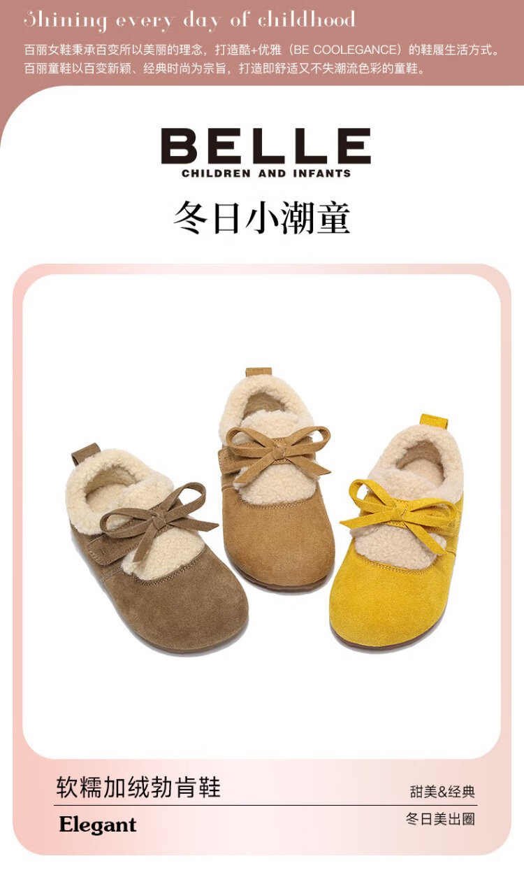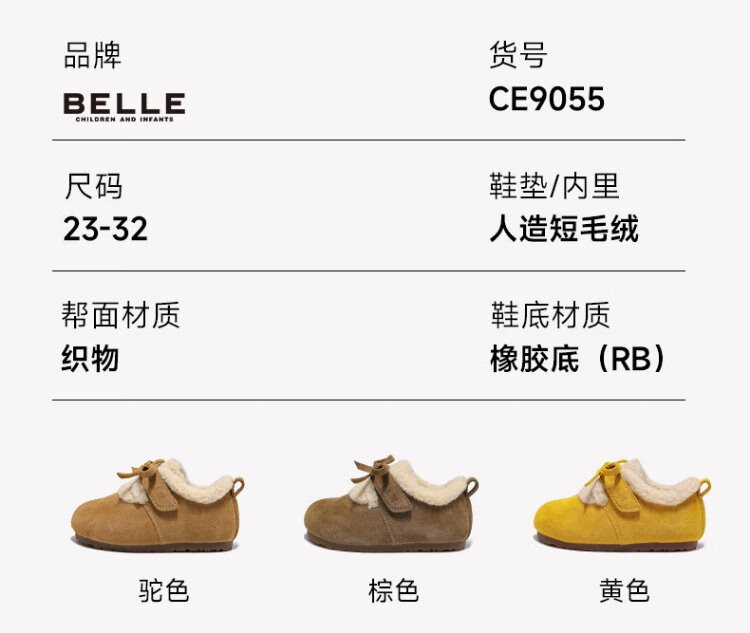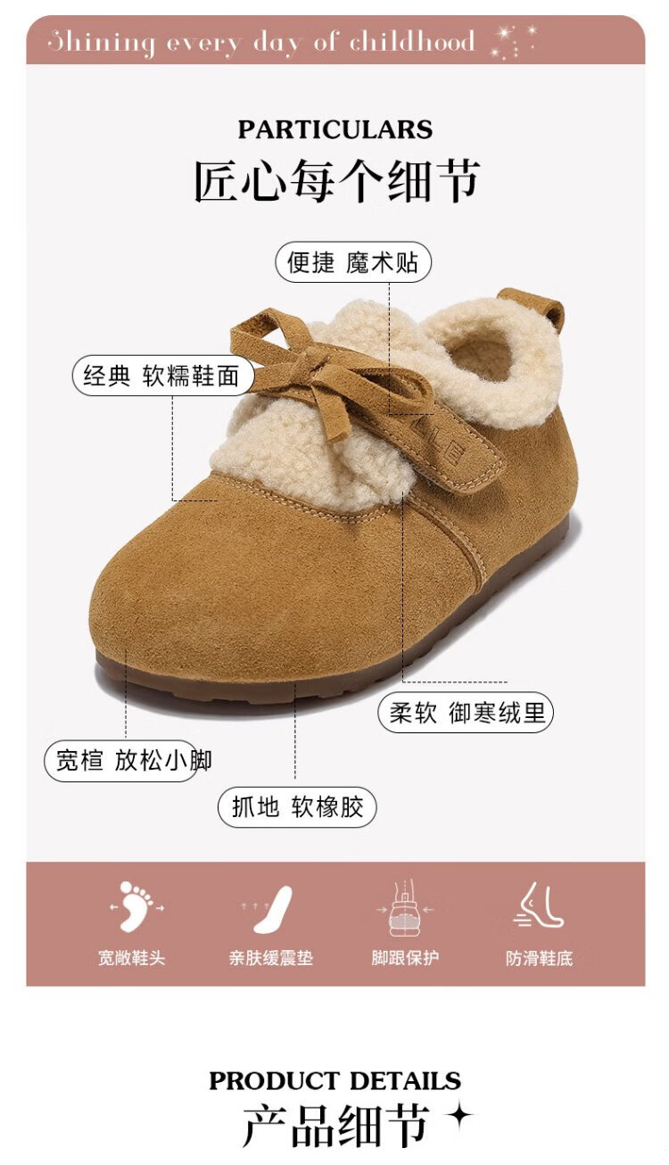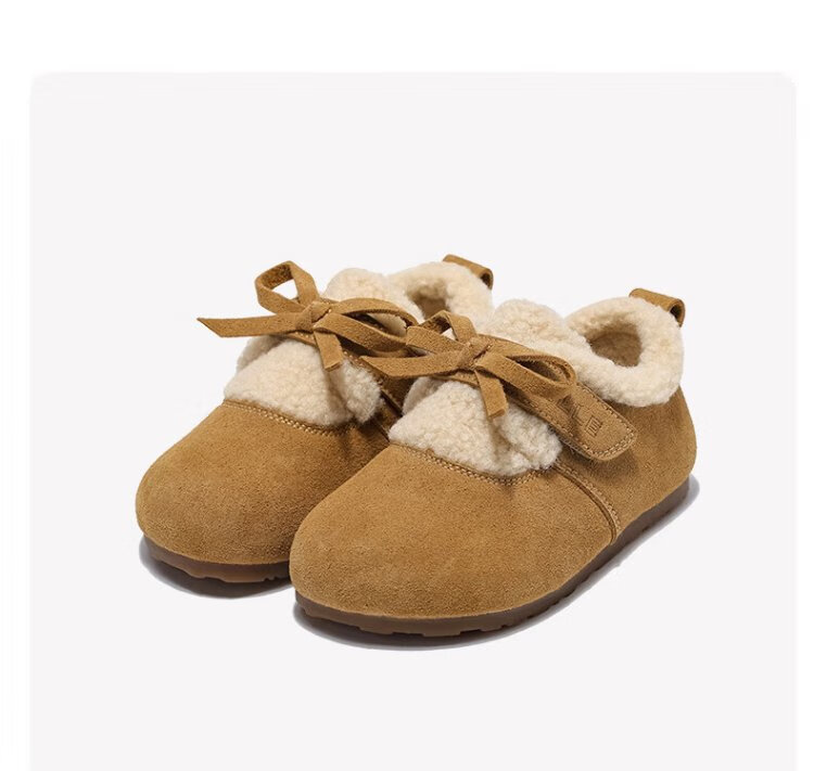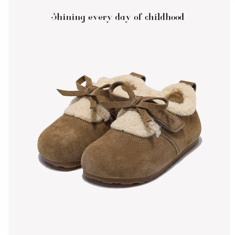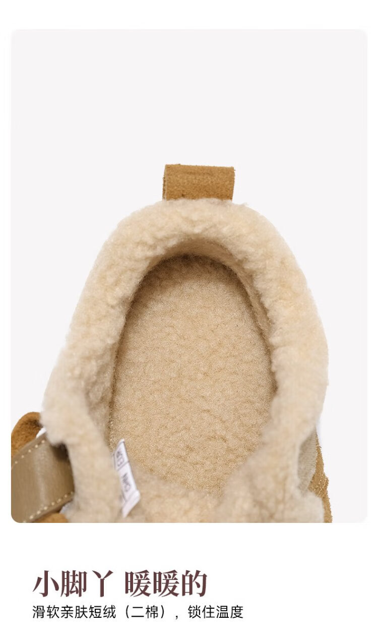 Belle Children's Shoes Plus Velvet Birkenstock Shoes 2025 Winter New Girls' Warm Wool Cotton Shoes Little Girls Casual Shoes Camel 26