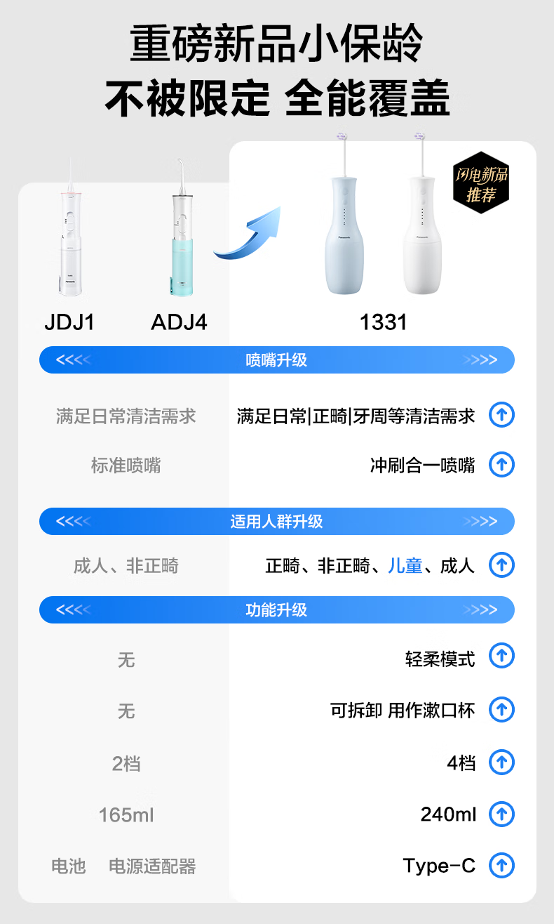 Panasonic small bowl adult and children tooth irrigator orthodontic special youth tooth cleaner water flosser tooth sonic irrigator tooth cleaner New Year gift 1331 blue