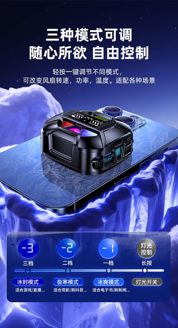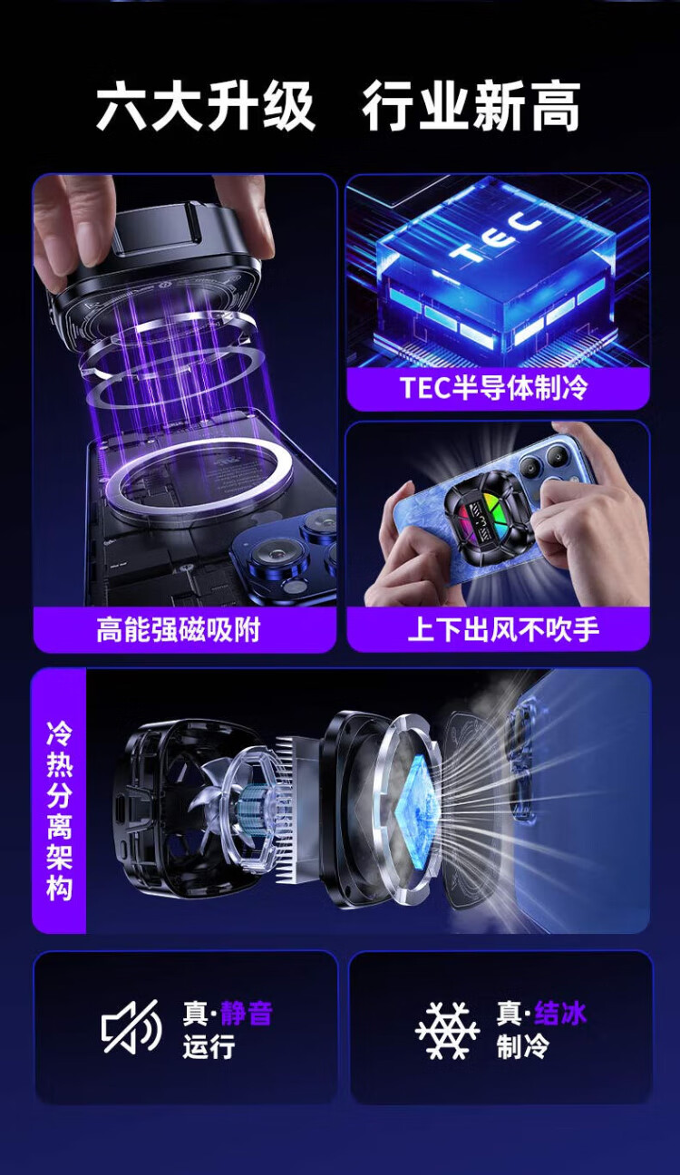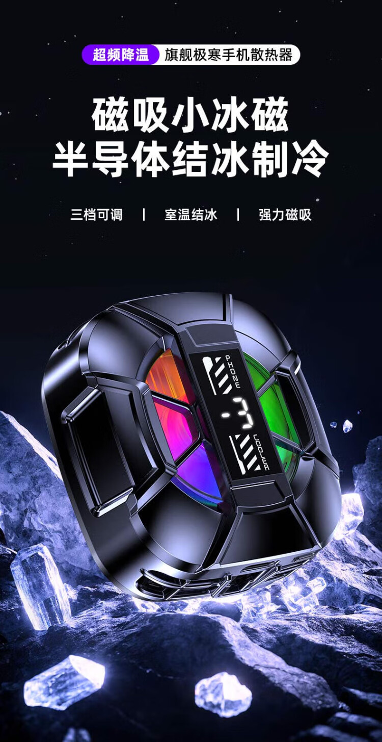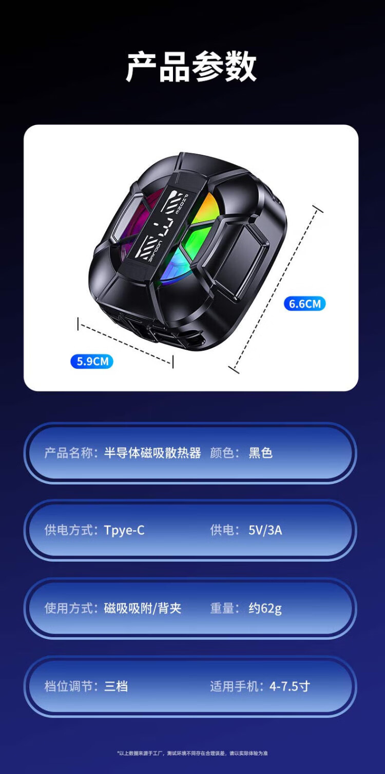 Bkayp three-speed adjustable icing mobile phone radiator cooling magnetic back-clip tablet game dedicated live broadcast semiconductor refrigeration suitable for Apple iqoo Asus Xiaomi