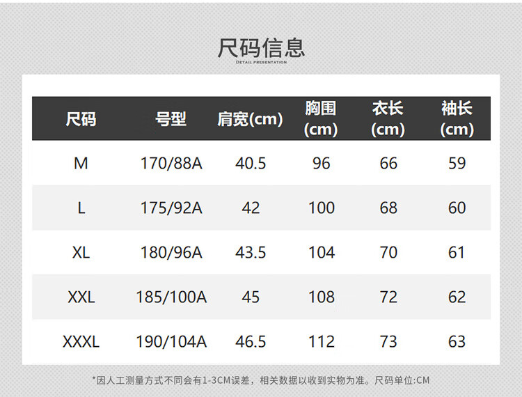 China (cm) 160-165/84-86 165-170 / 88-90 167-172 / 92-96 168-173 / 98-102 170-176 / 106-110
