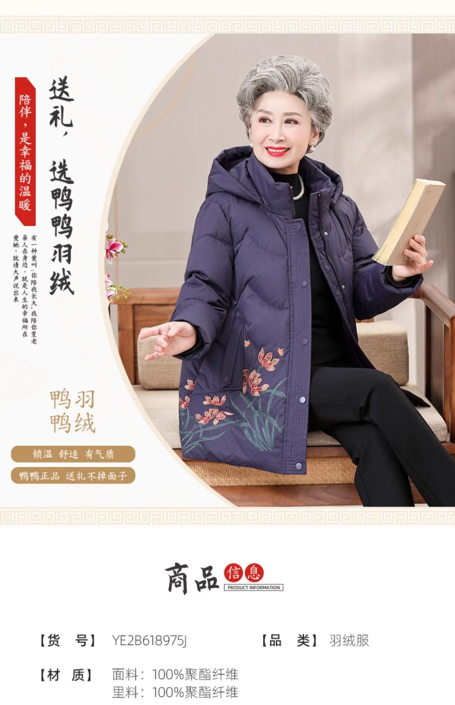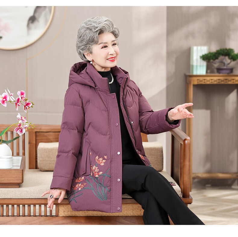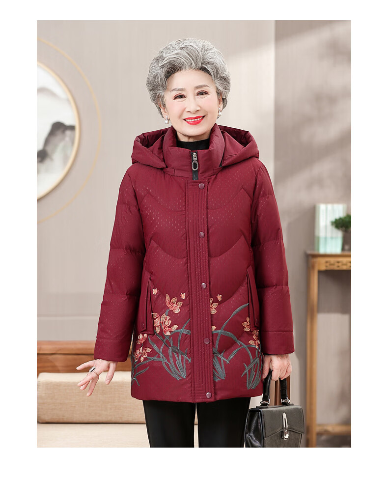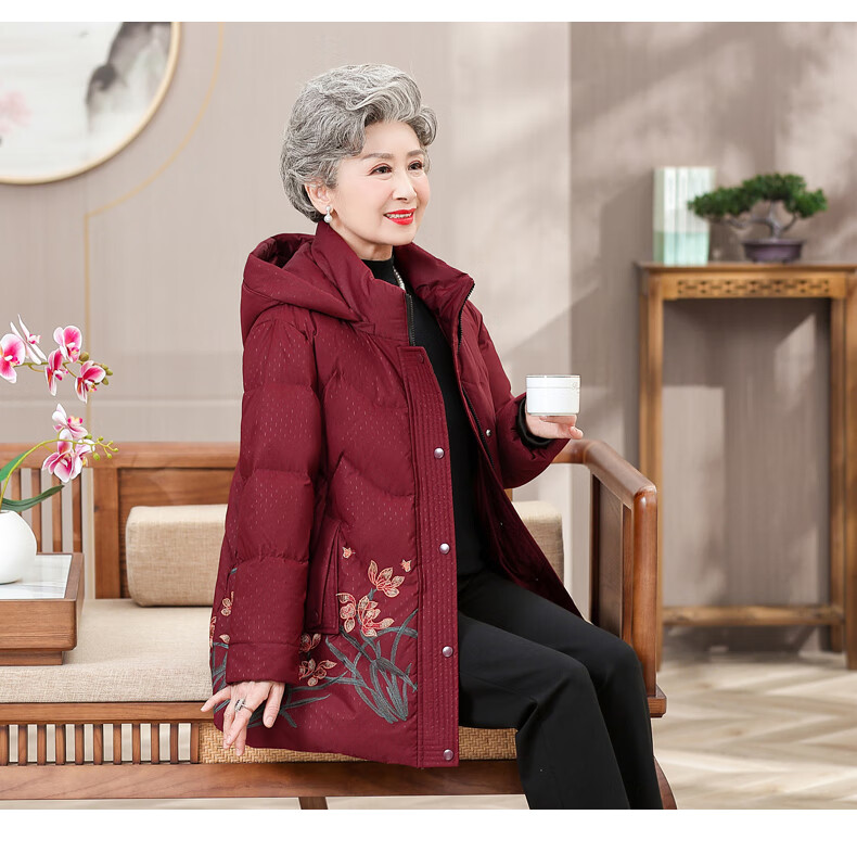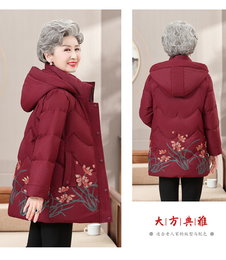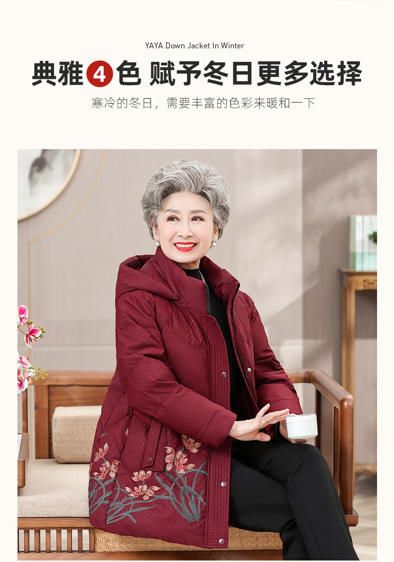 Yaya (YAYA) grandma's winter down jacket 60 and 70 year old lady's wedding banquet clothes for middle-aged and elderly mothers festive thickened coat for women