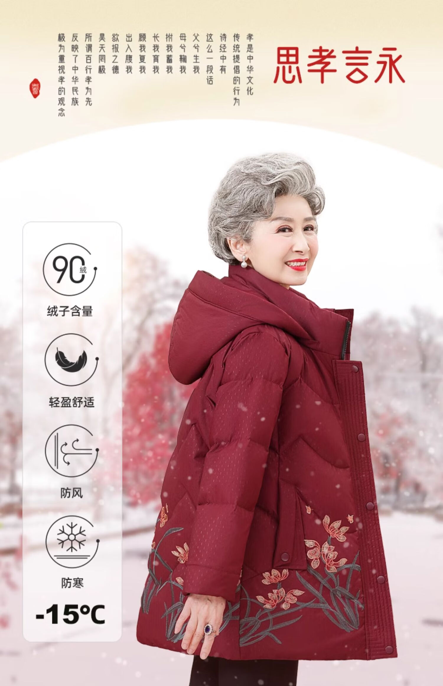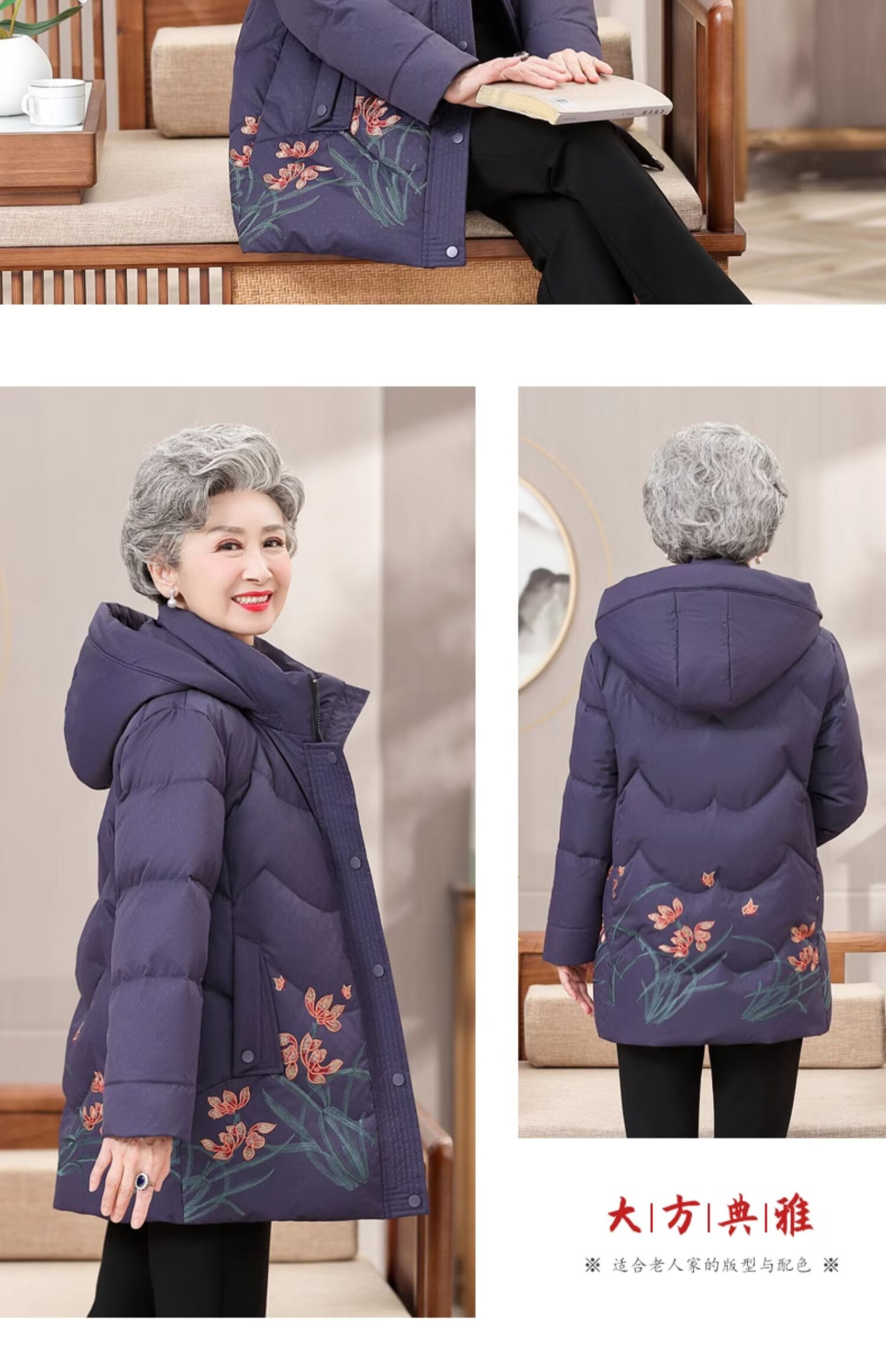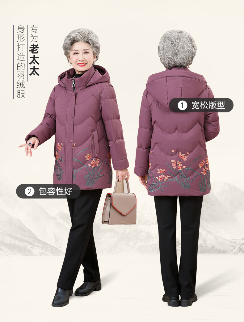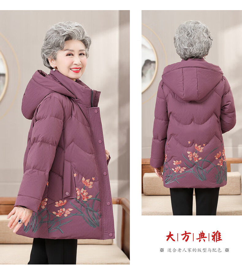 Yaya (YAYA) grandma's winter down jacket 60 and 70 year old lady's wedding banquet clothes for middle-aged and elderly mothers festive thickened coat for women