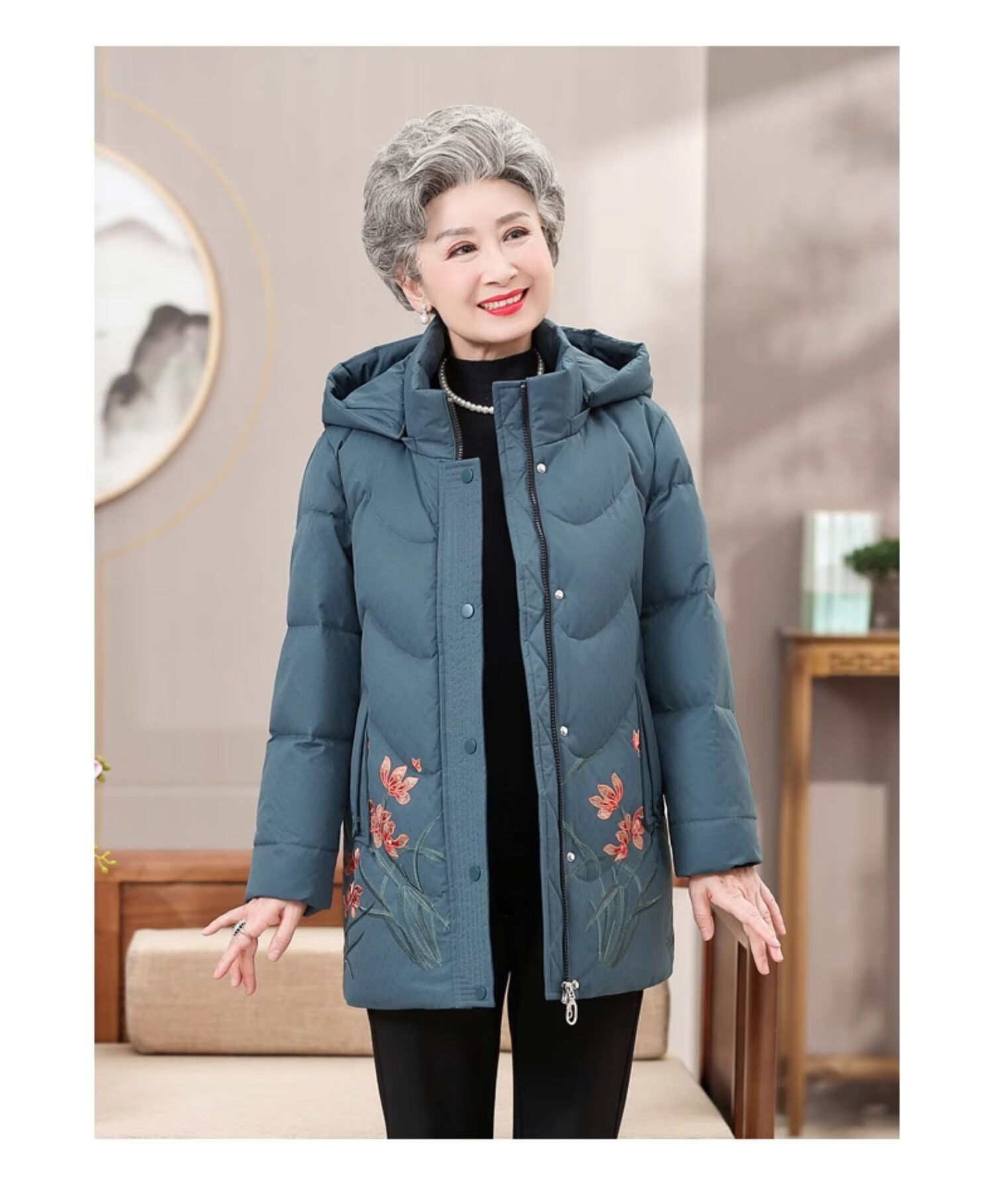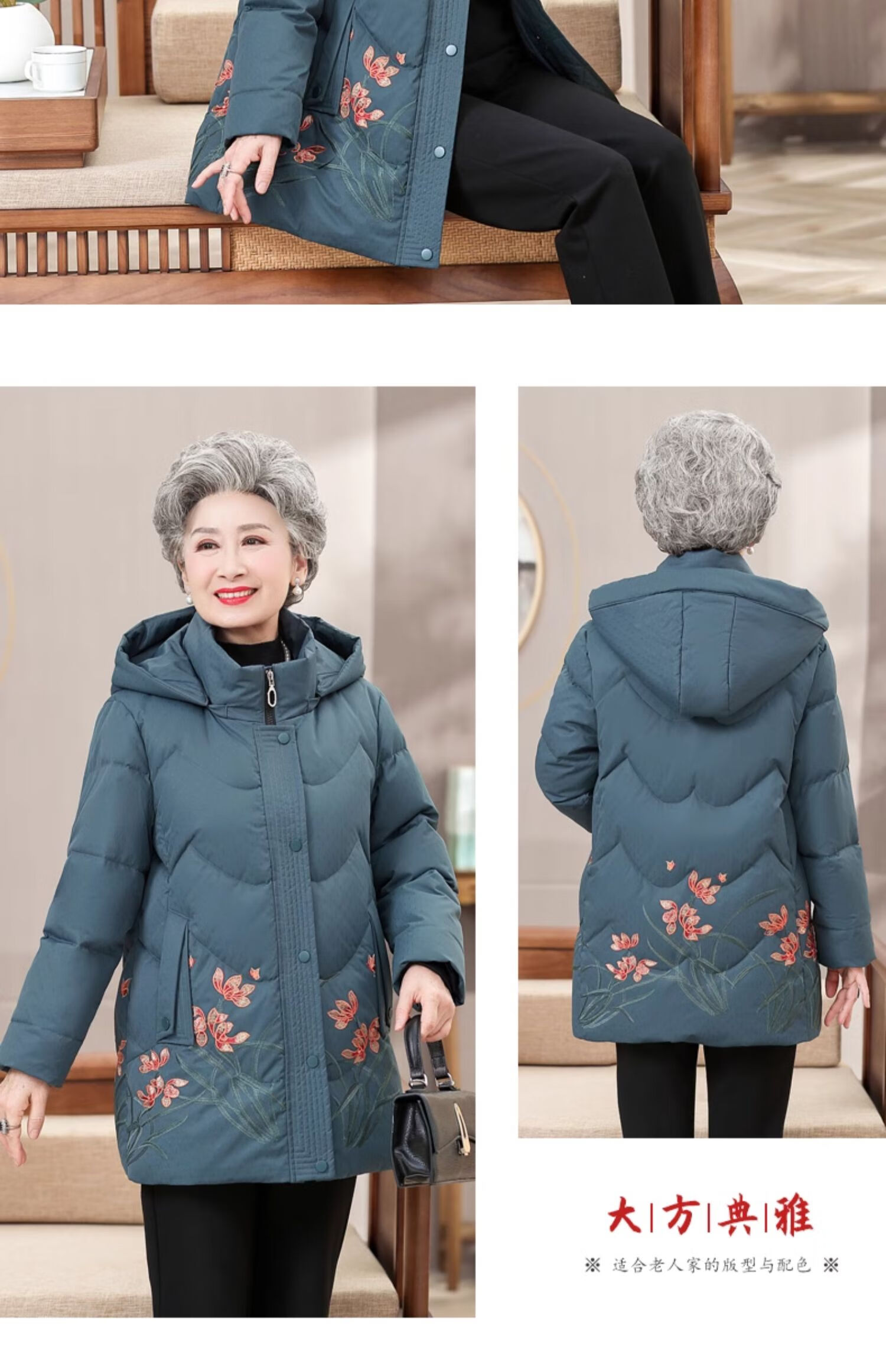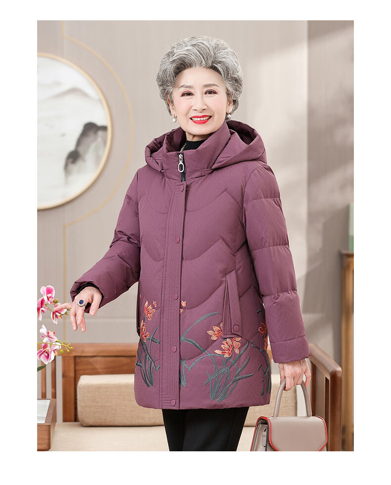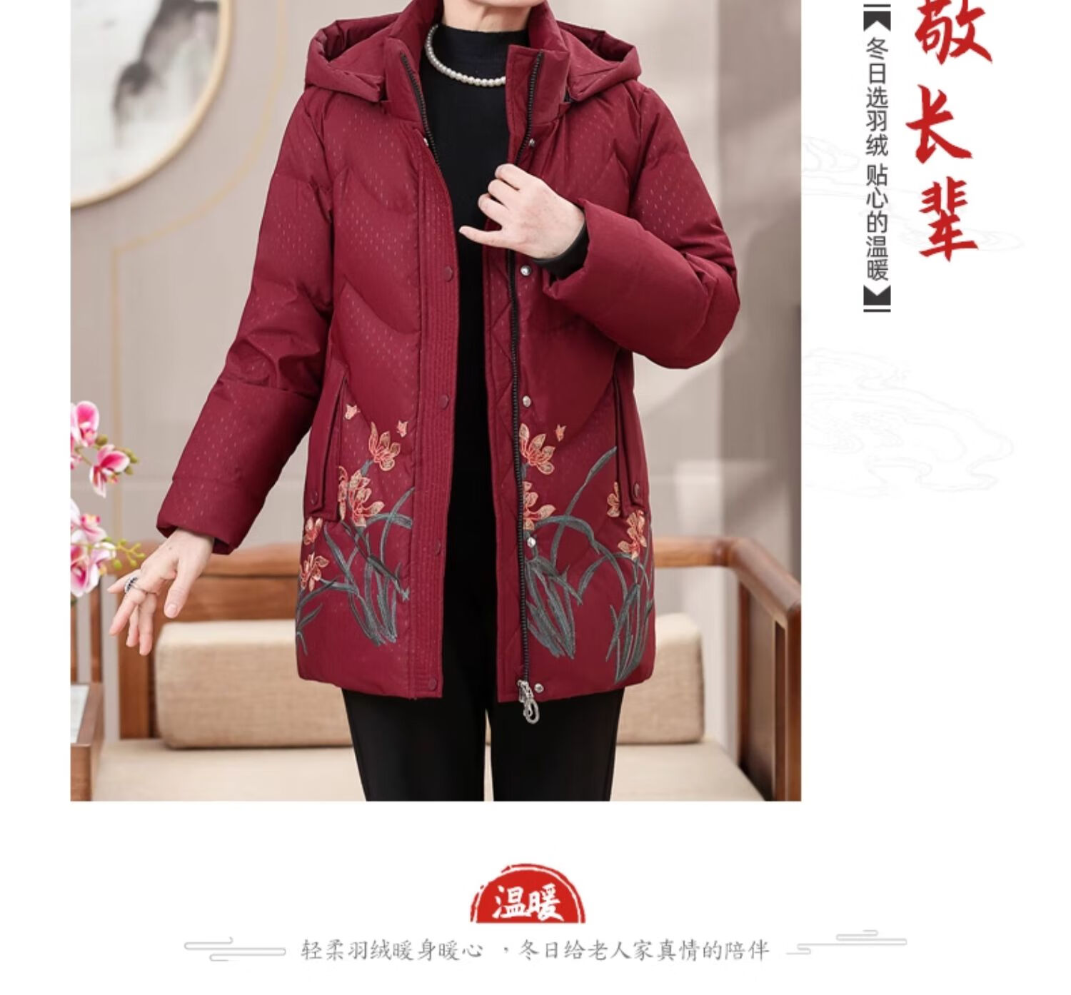 Yaya (YAYA) grandma's winter down jacket 60 and 70 year old lady's wedding banquet clothes for middle-aged and elderly mothers festive thickened coat for women