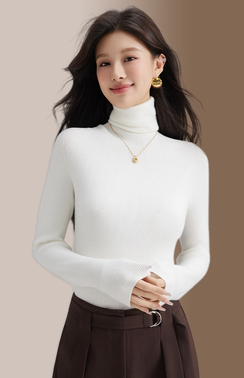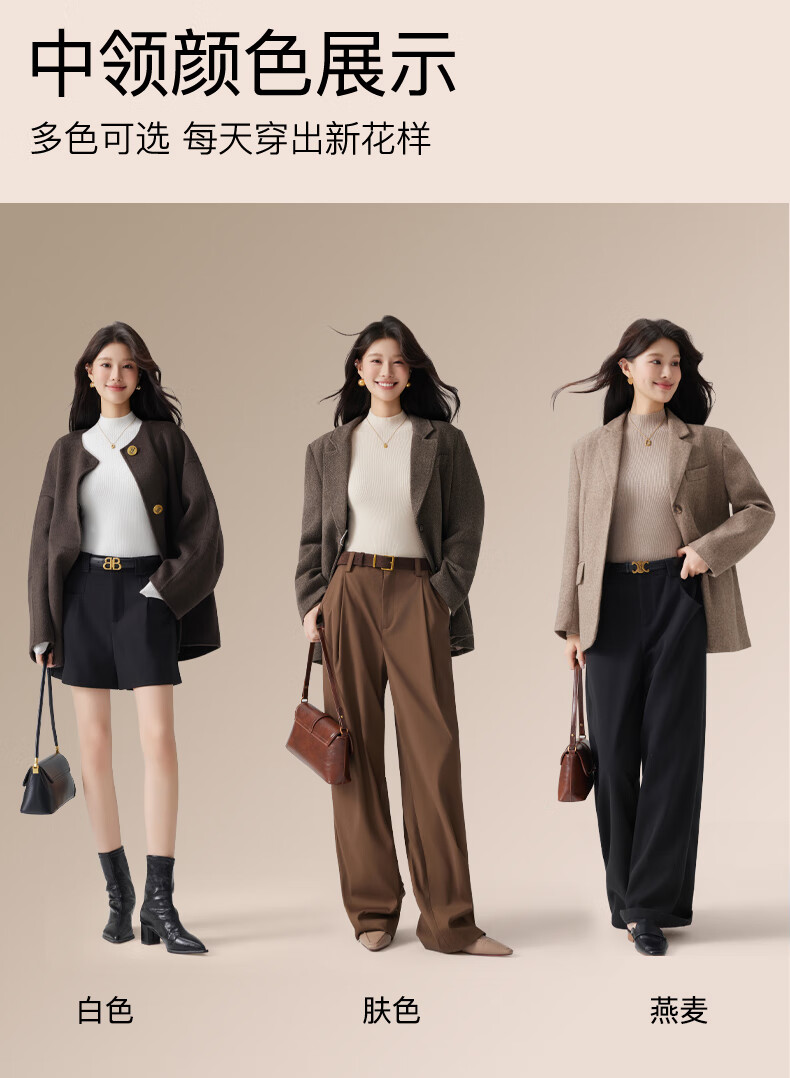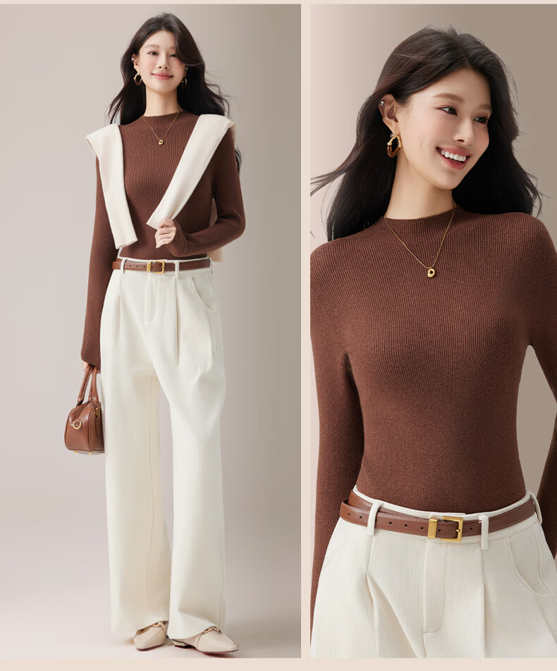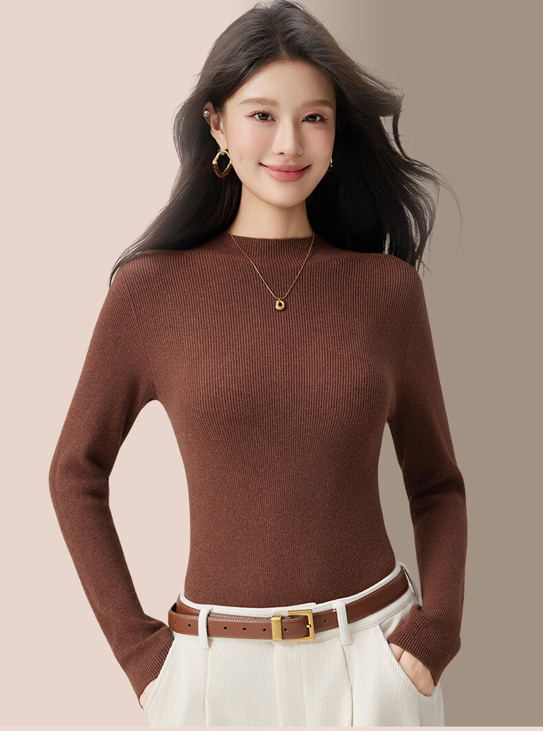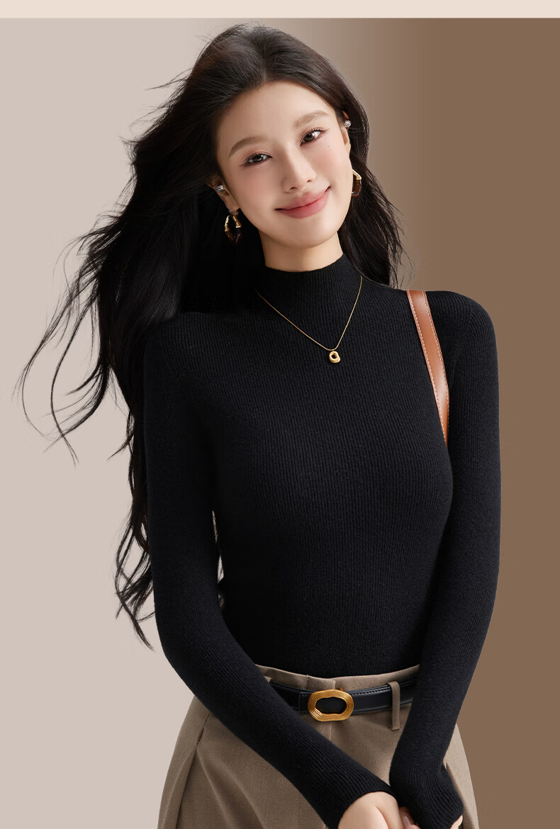 Catman 2025 new seamless knitted sweater for women, mid-high collar pullover black bottoming shirt with slim warm sweater top