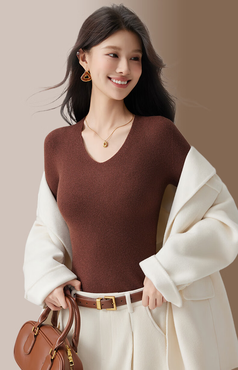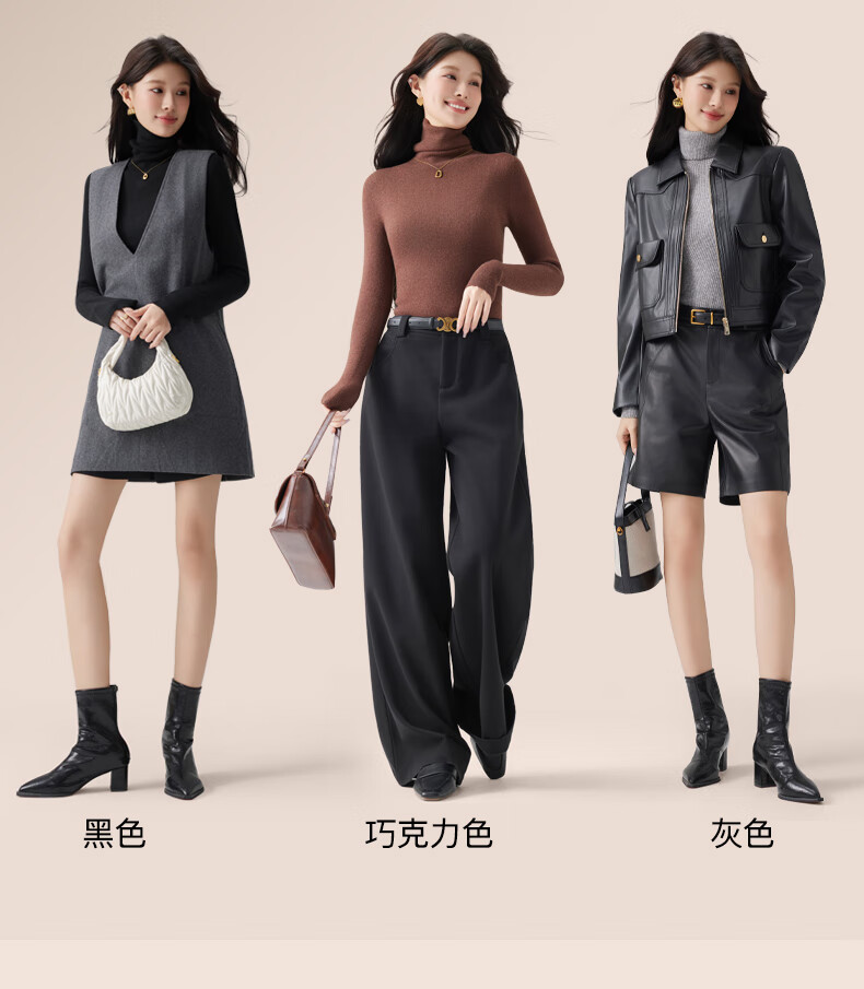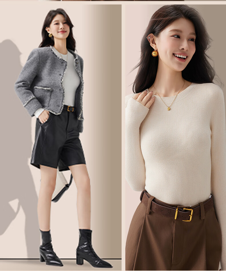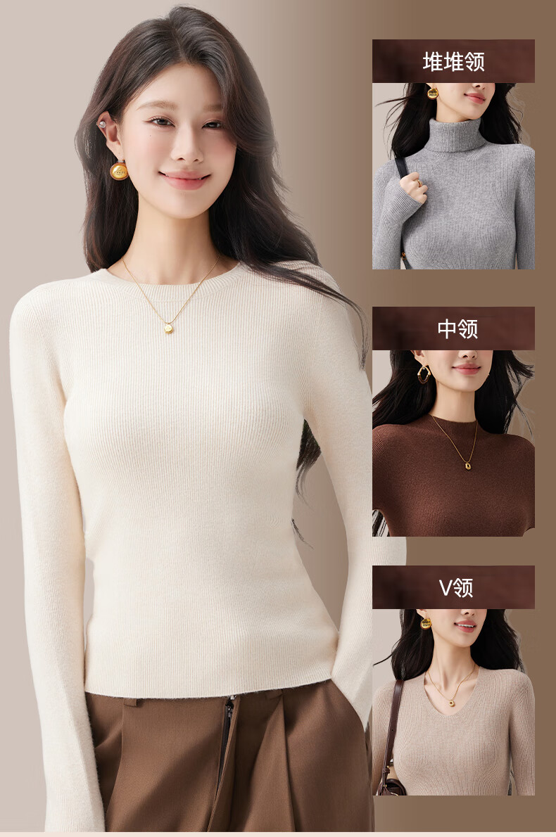 Catman 2025 new seamless knitted sweater for women, mid-high collar pullover black bottoming shirt with slim warm sweater top