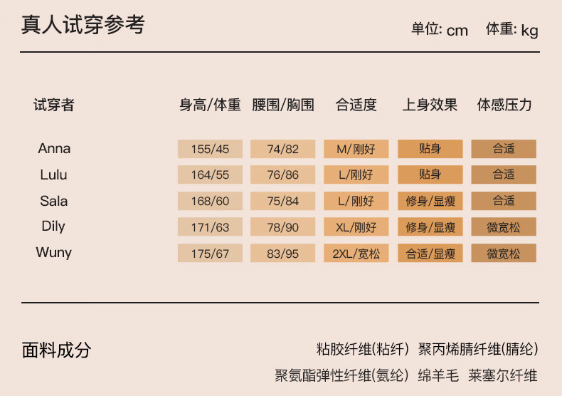 China (cm) 160-165/84-86 165-170 / 88-90 167-172 / 92-96 168-173 / 98-102 170-176 / 106-110