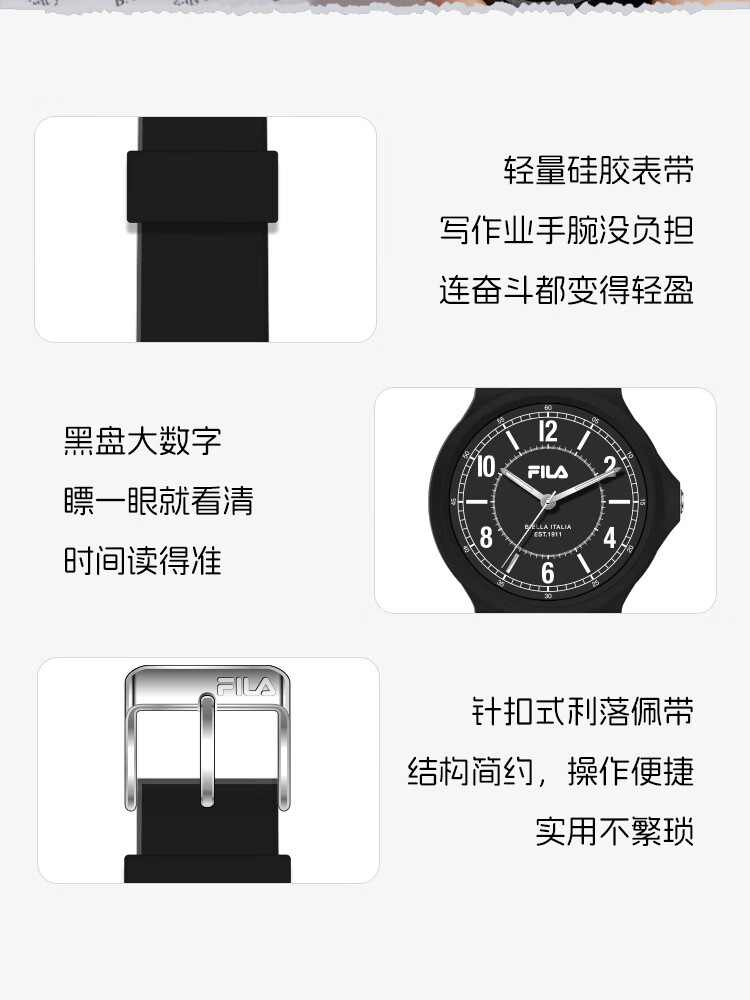 FILA Fashion Sports Student Watch Commuting Fashion Men's and Women's Trendy Unisex Silicone Quartz Watch 6789