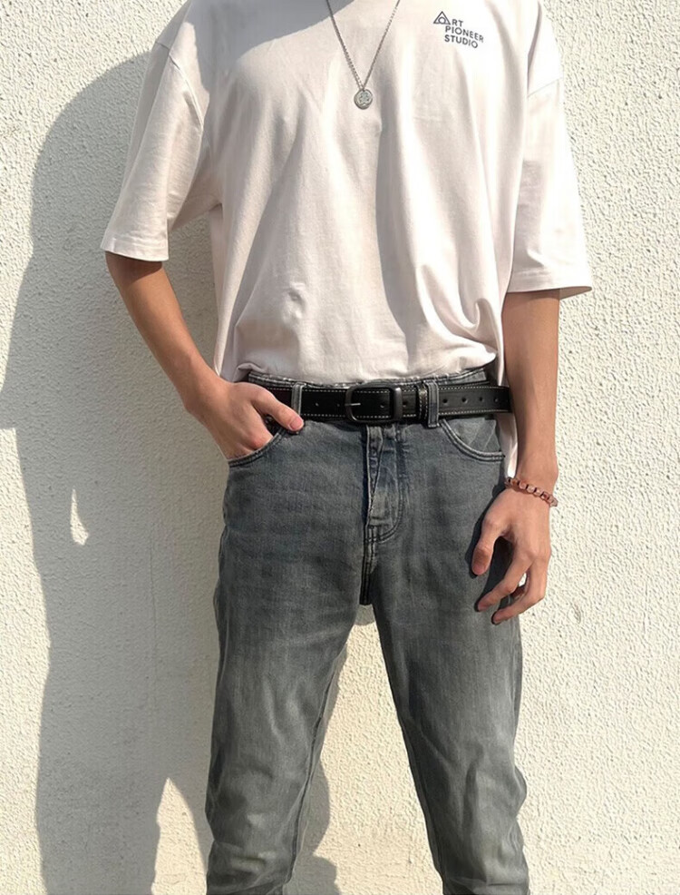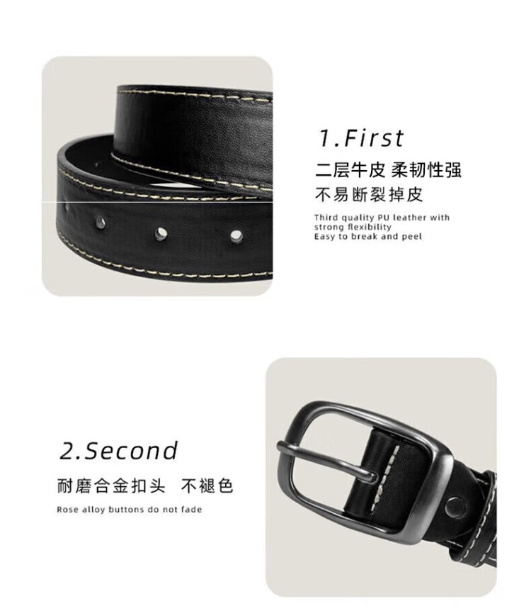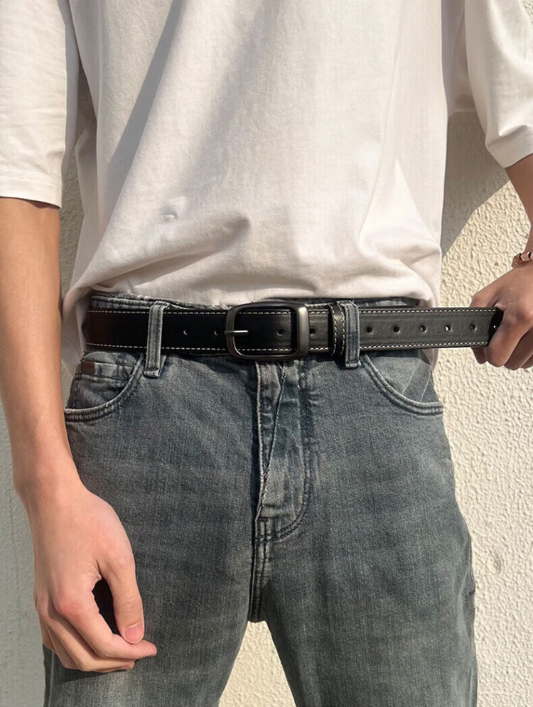 Pull back belt men's genuine leather belt two-layer cowhide pin buckle Hong Kong style trouser belt 2025 new fashion versatile fashionable young people
