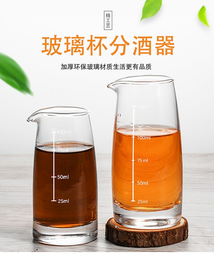 Molson Liquor Divider Set Without Handle, Jug Fair Cup, Thickened Glass Divider with Scale, 2-Liang Wine Divider, Handleless White Line Scale Model (6 Pack) - 100ml