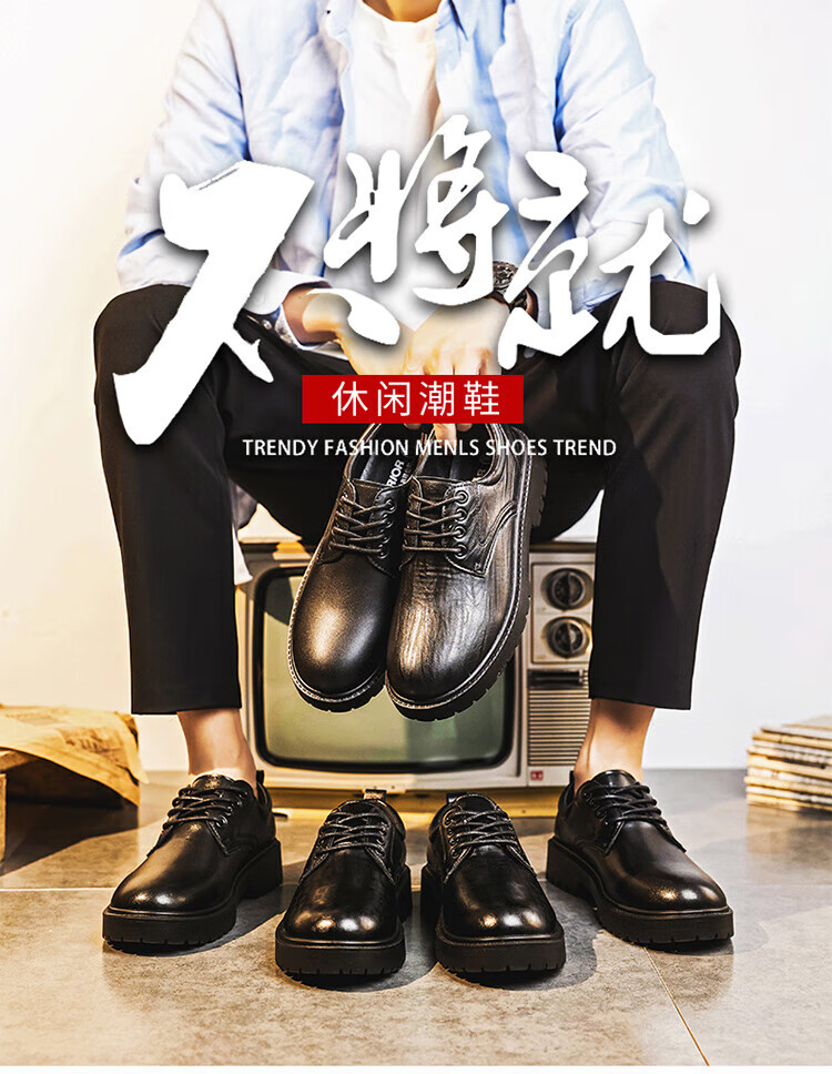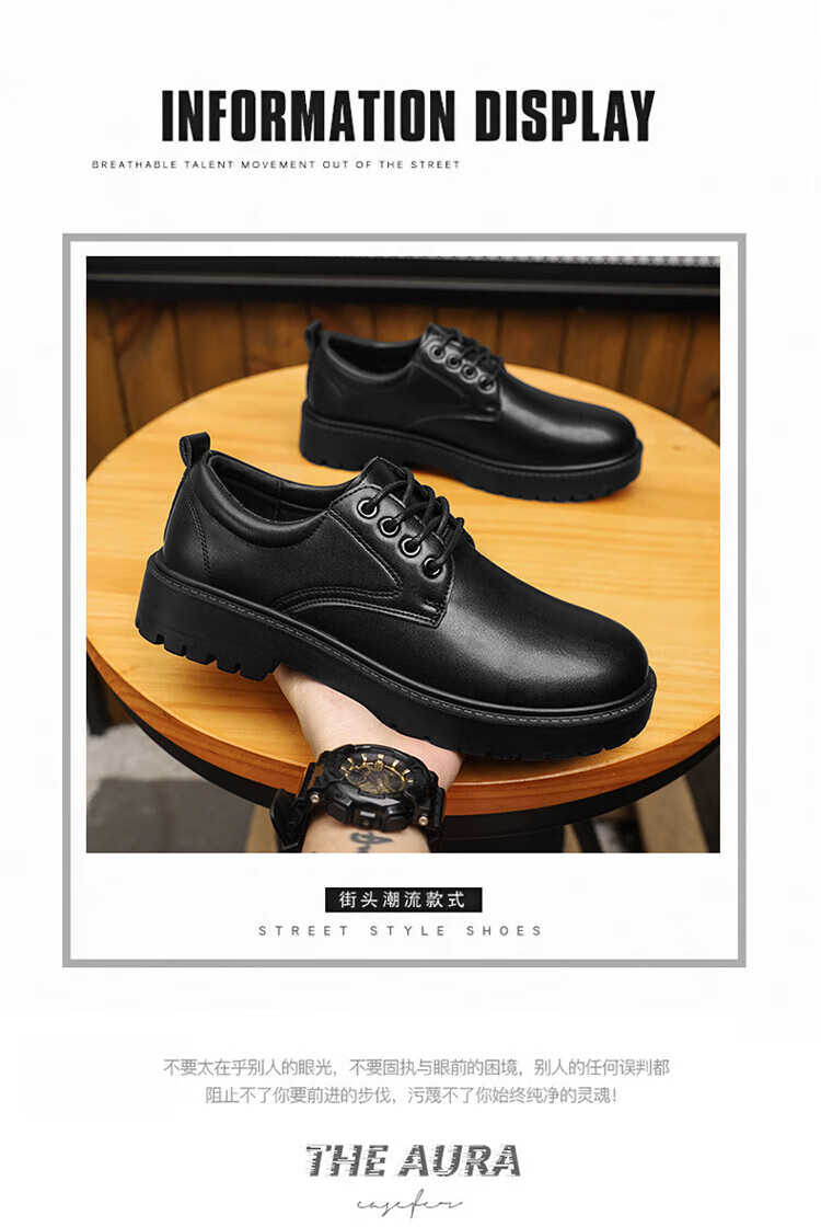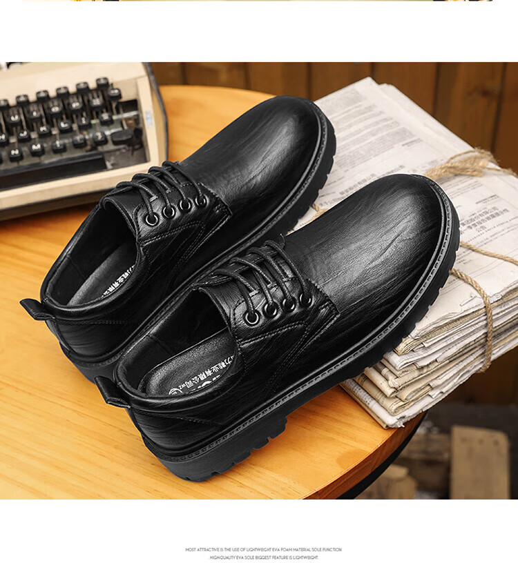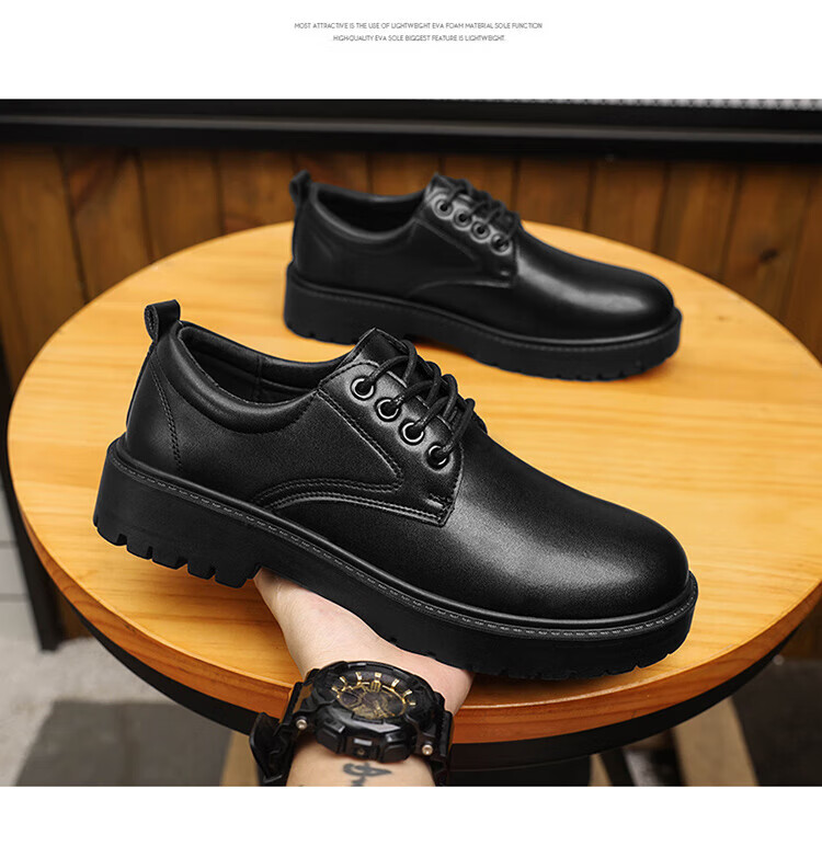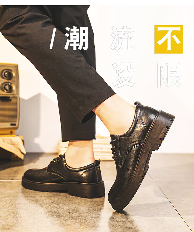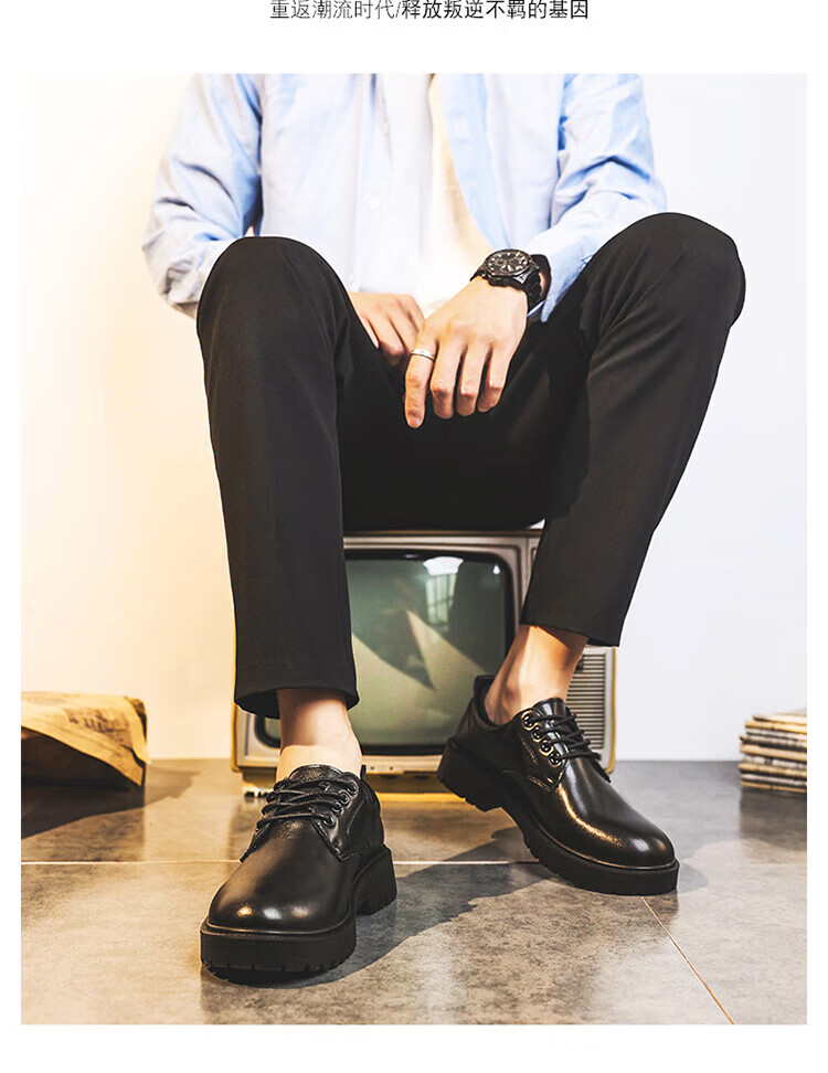 Pull-back leather shoes for men in autumn, all-match heightening, business black casual men's shoes, commuter shoes, oil wax black 42