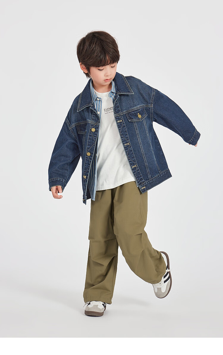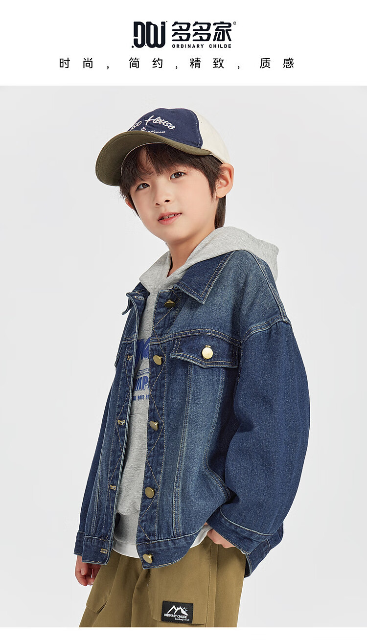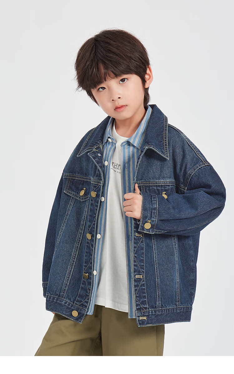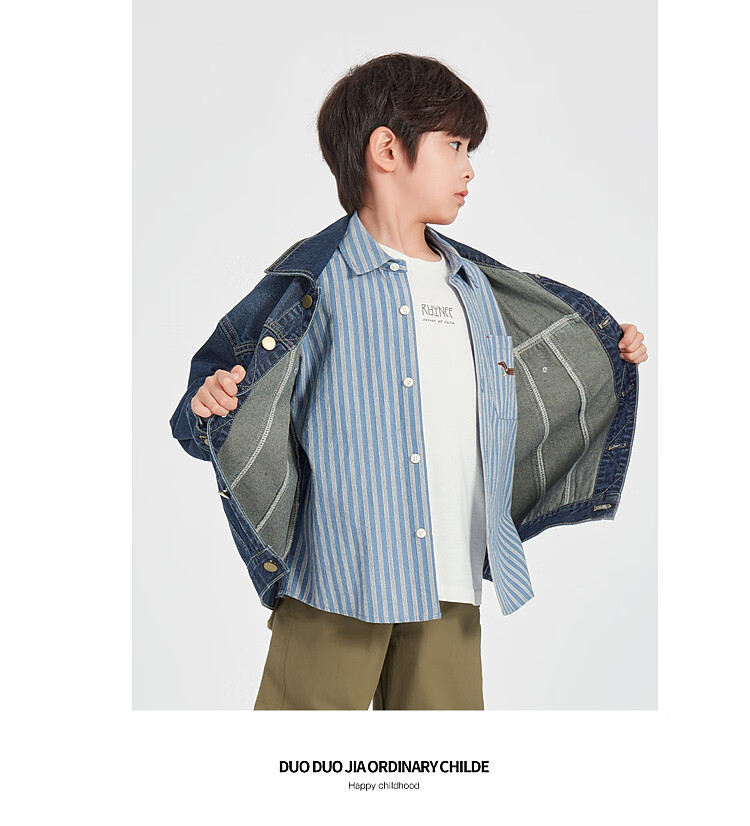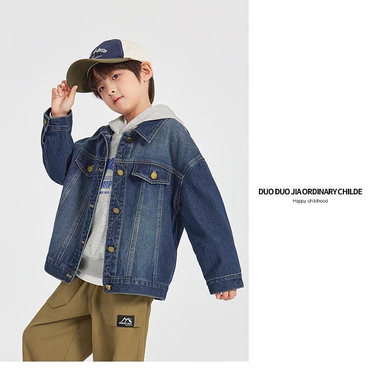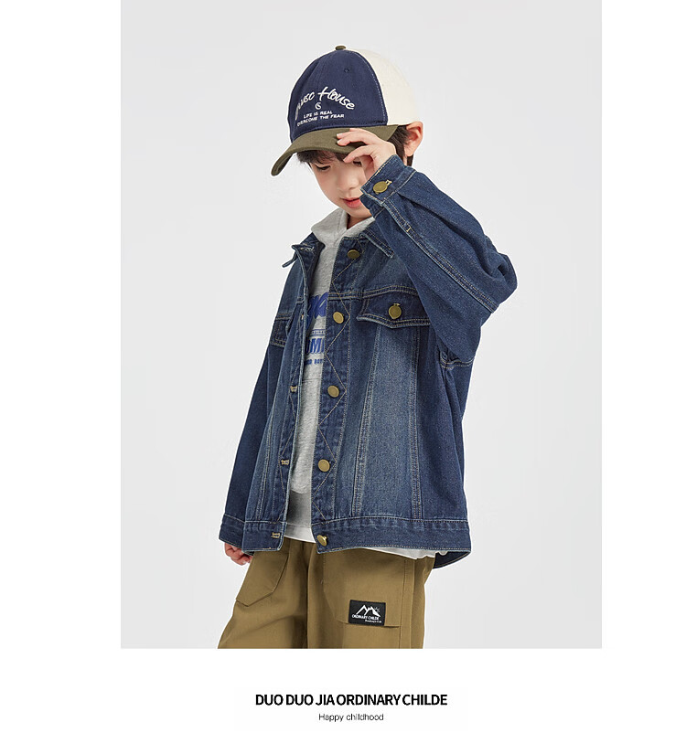 Duojia placket rhombus boys' denim spring children's workwear casual jackets for middle-aged and older children handsome and stylish jackets
