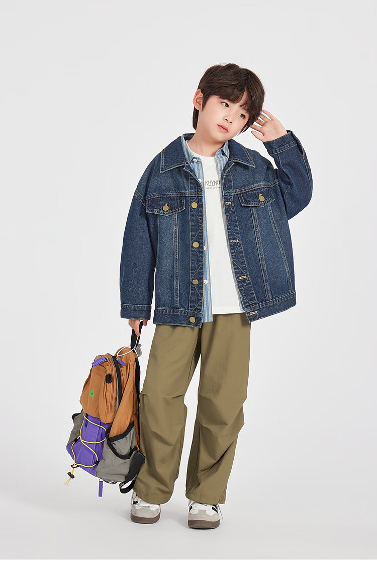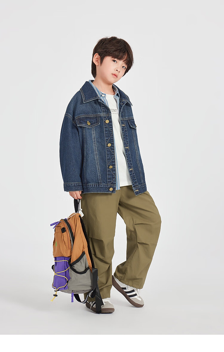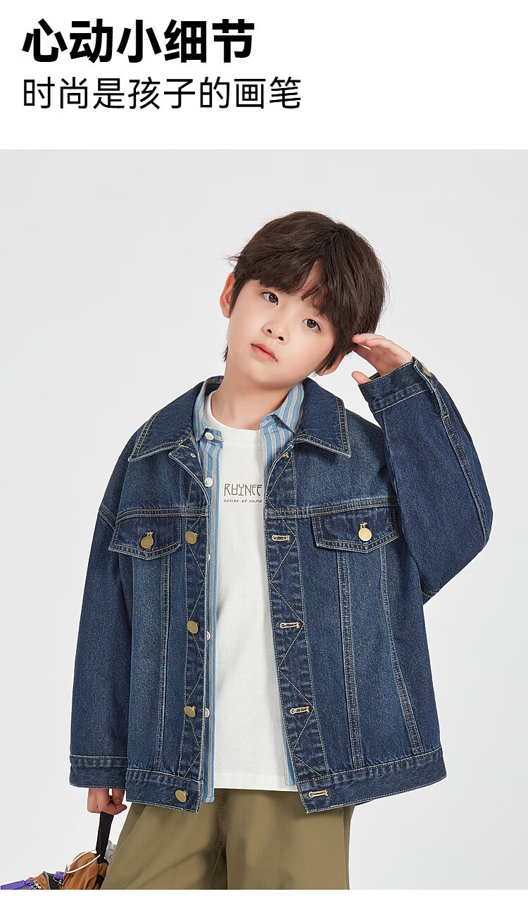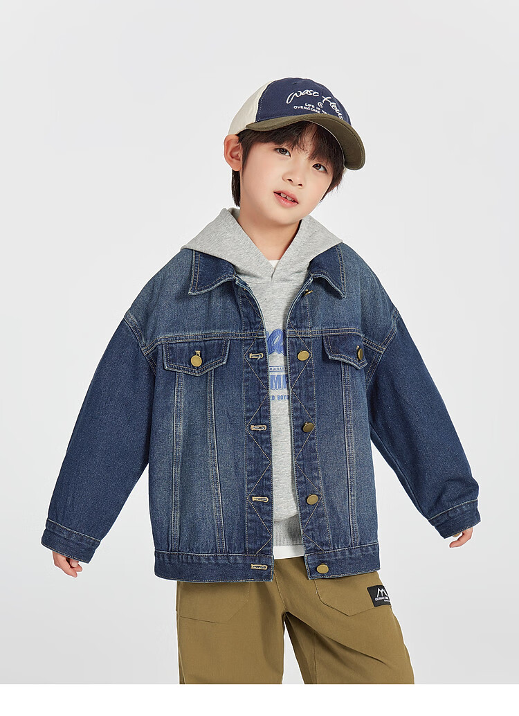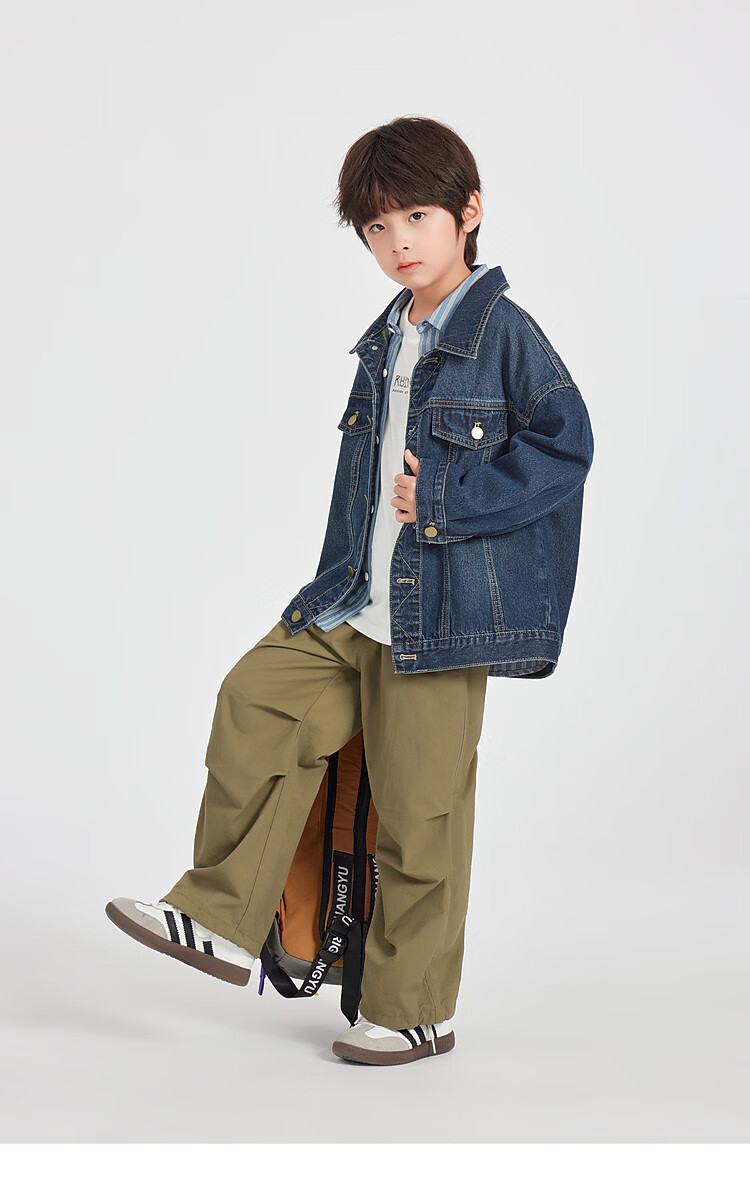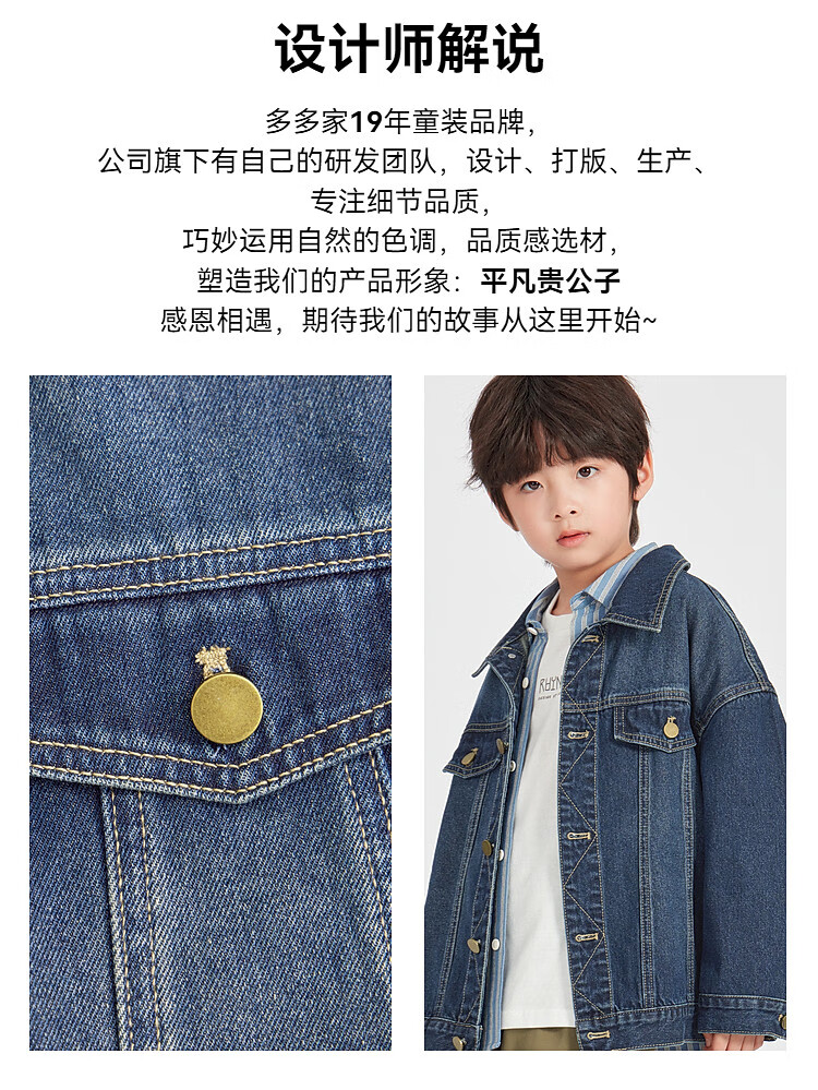 Duojia placket rhombus boys' denim spring children's workwear casual jackets for middle-aged and older children handsome and stylish jackets