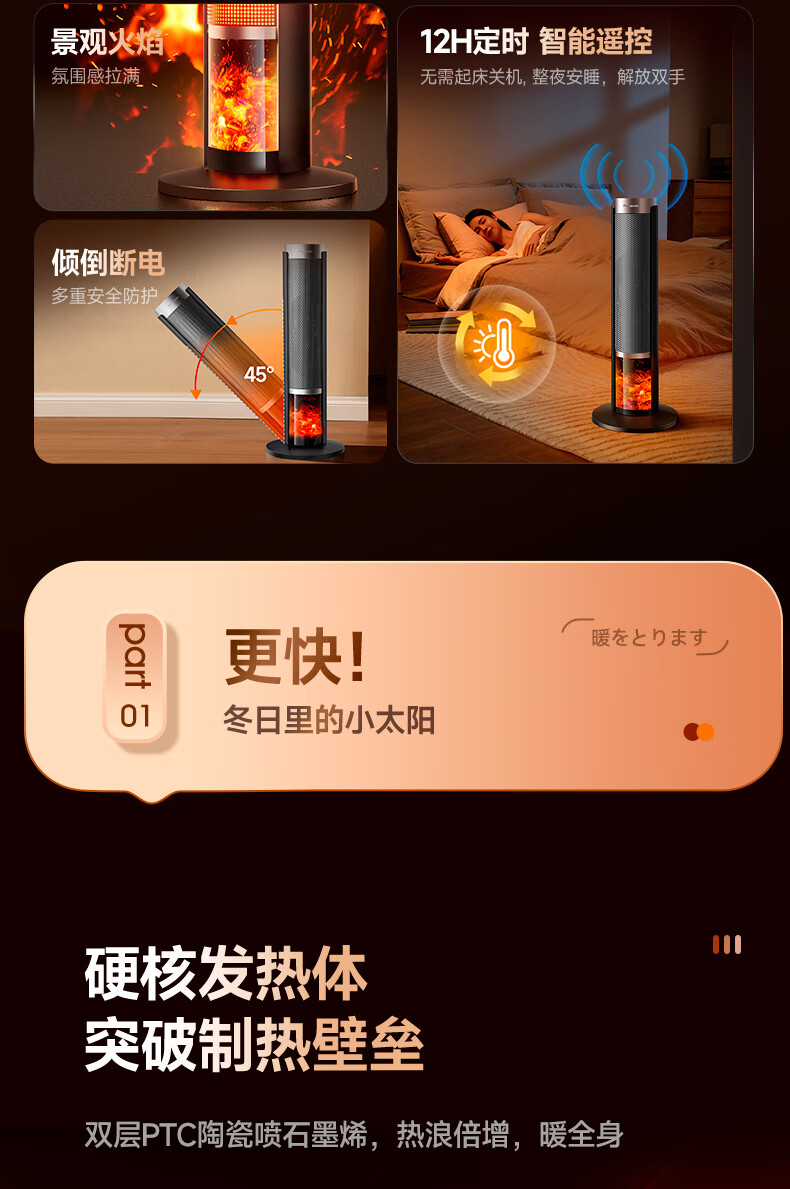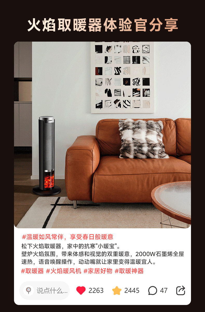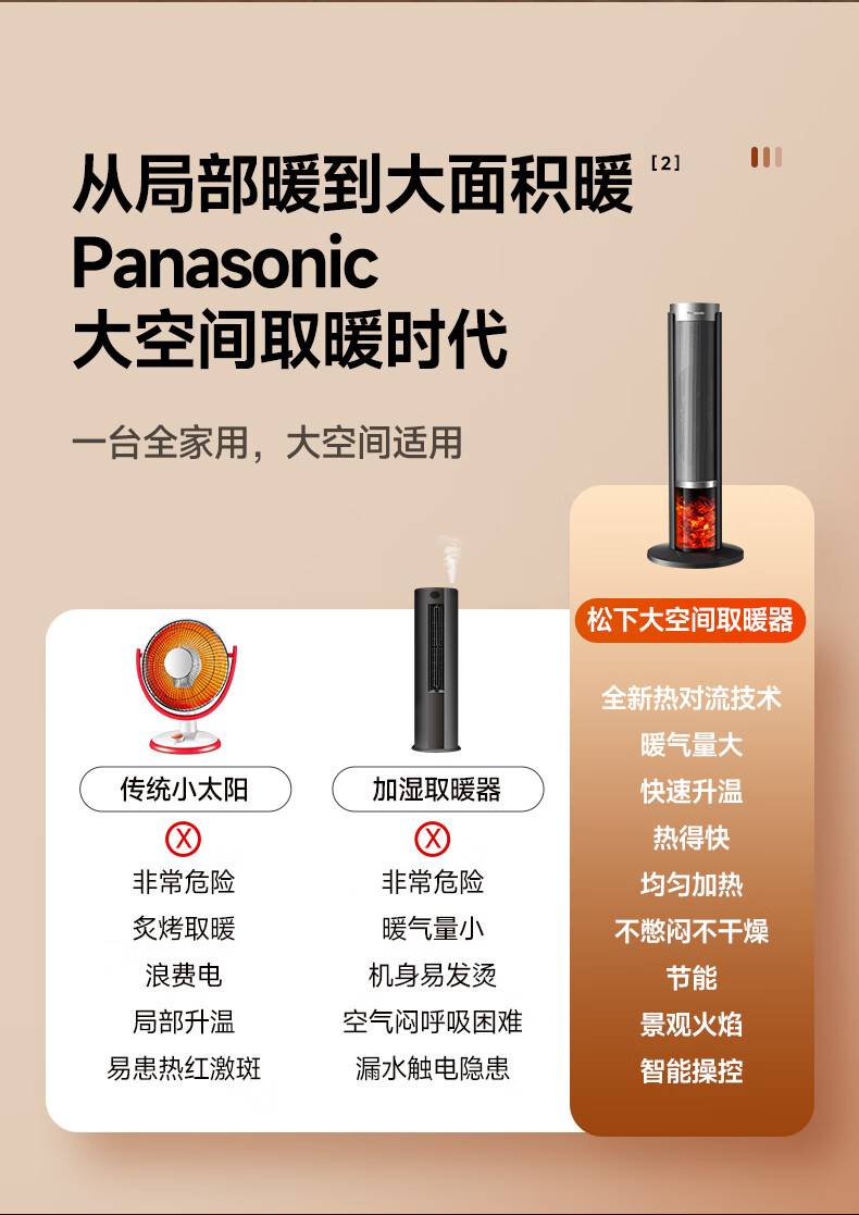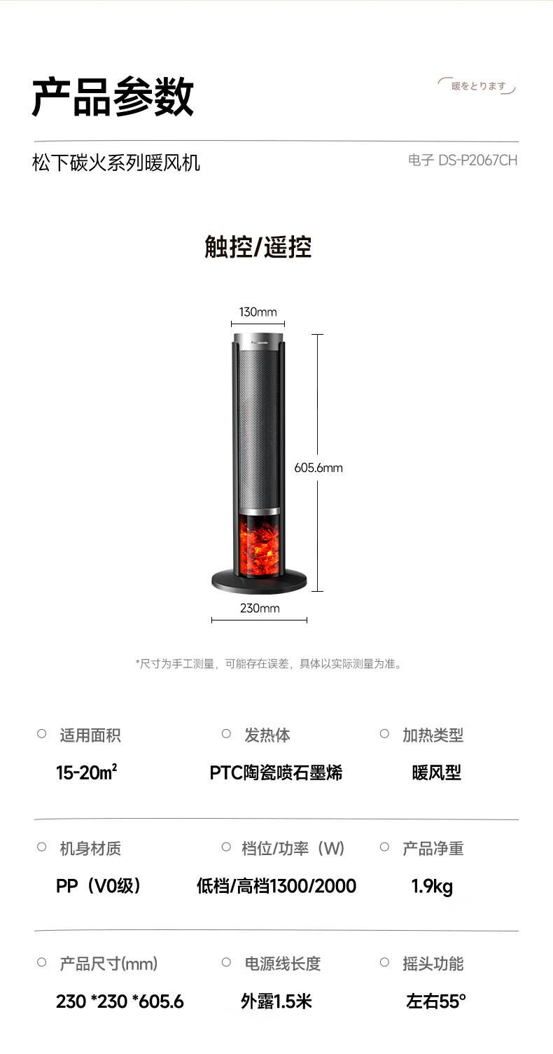 Panasonic flame heater household graphene heater electric heater small sunroom electric heater energy-saving whole house office artifact large area rapid heating-DS-P2067CH