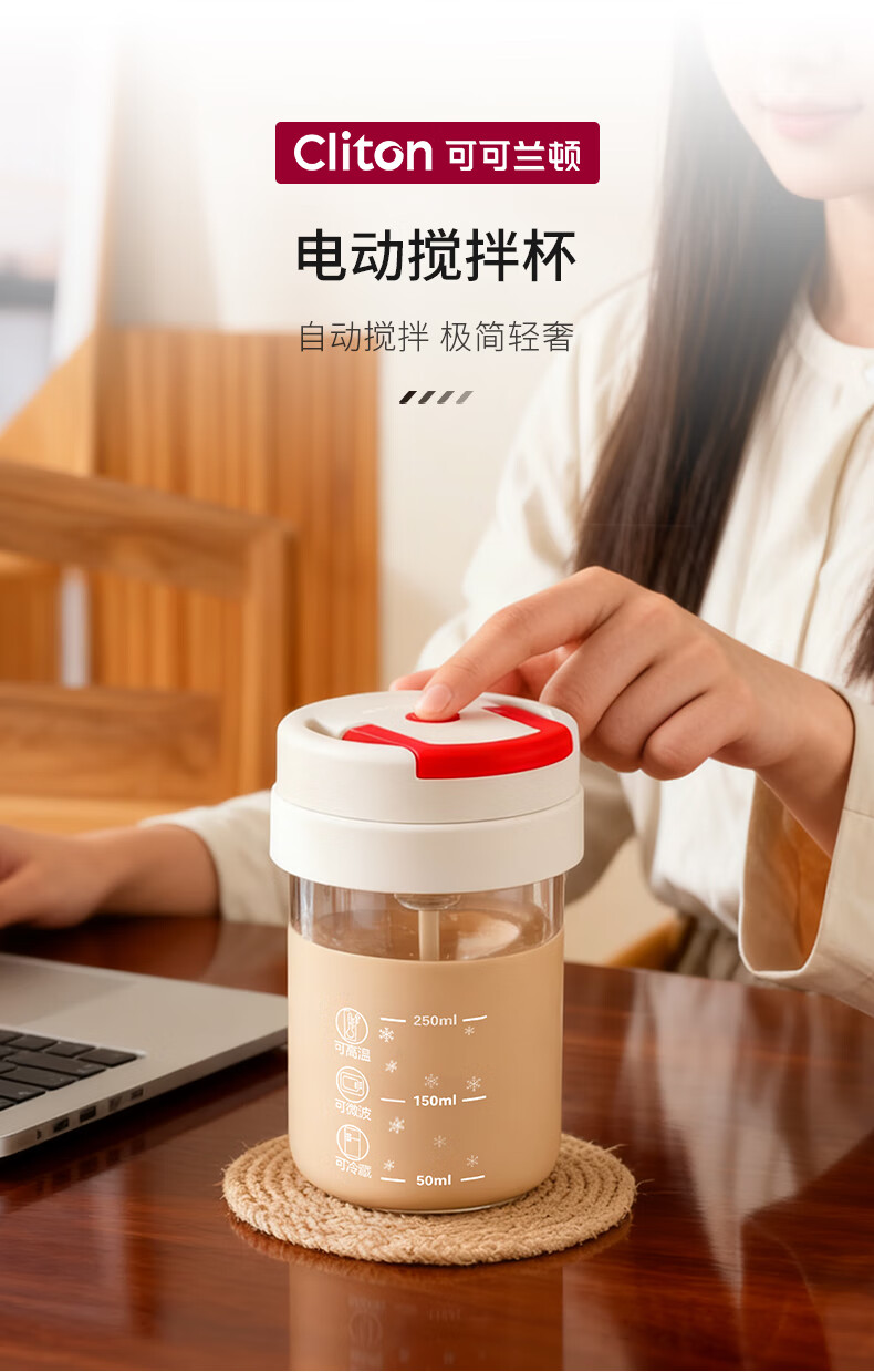 CLITON electric mixing cup, automatic stirring milk powder coffee cup, magnetic rotating stirring soy milk powder, lazy shaker water cup