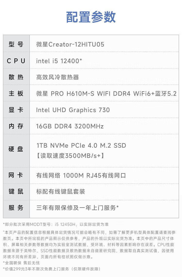 MSI Family Bucket Creator i5 12400/16G/1T National subsidy 20% designer complete set of commercial office desktop computer host