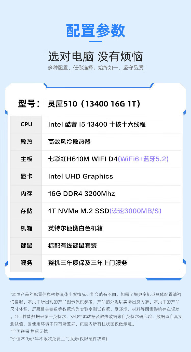 Intel Lingxi 510 desktop computer (i5 13400 16G 1T SSD business keyboard and mouse) WIFi6 commercial office machine mini single host