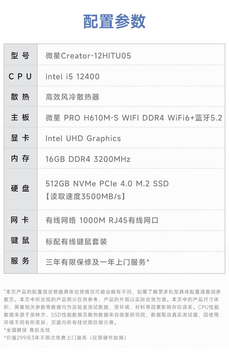 MSI Family Bucket Creator i5 12400/16G/512G National subsidy 20% designer complete set of commercial office desktop computer host