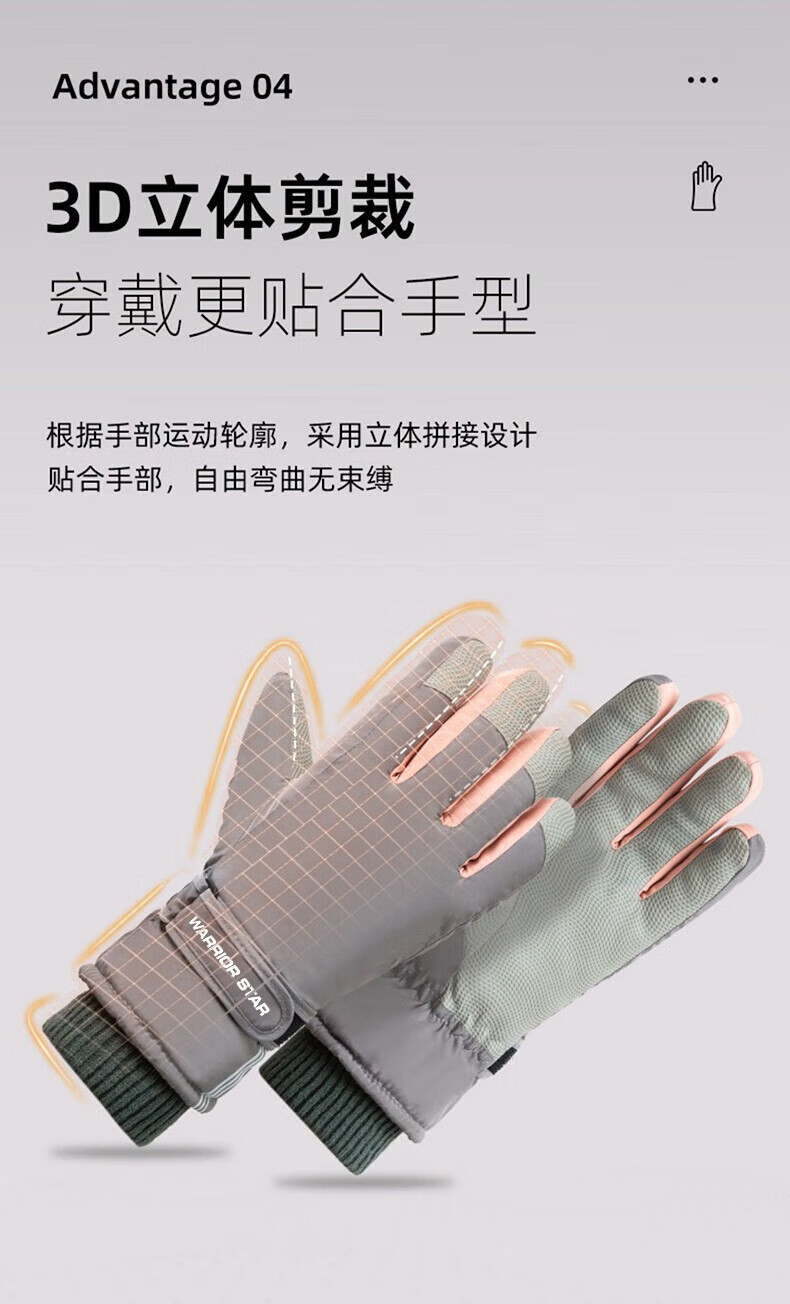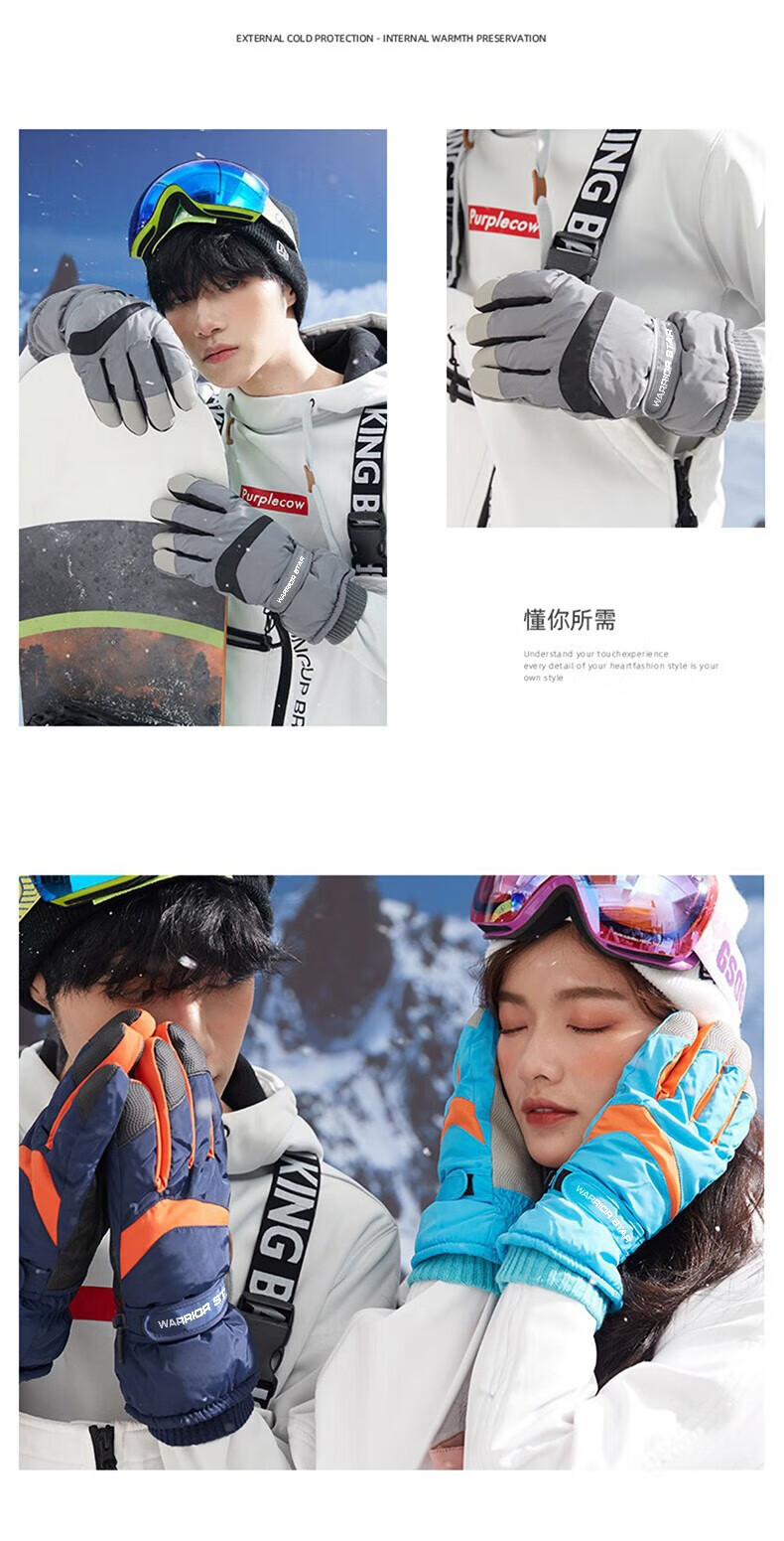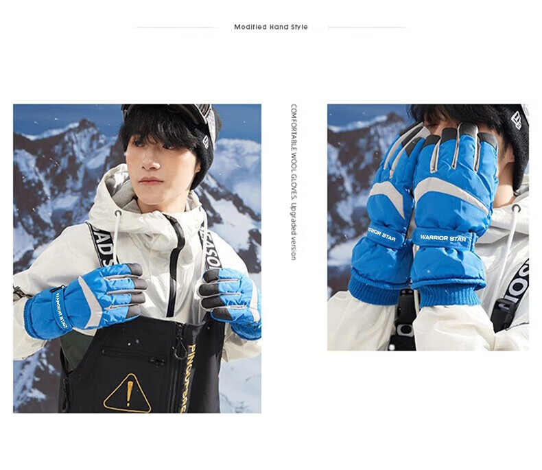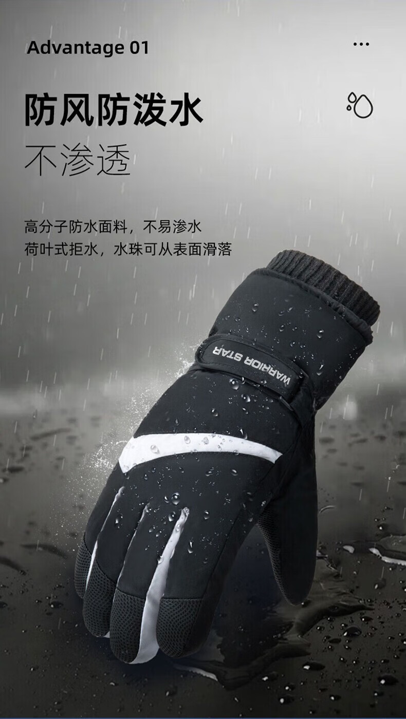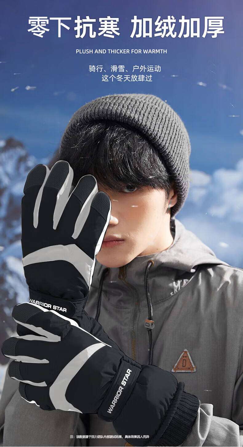 Warrior gloves, winter men's cycling gloves, ski gloves, thickened warm gloves, water-repellent, wind-proof, cold-proof, touch screen sensitive