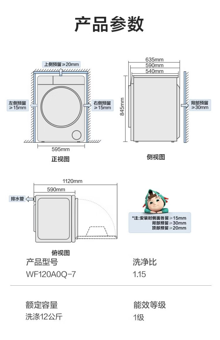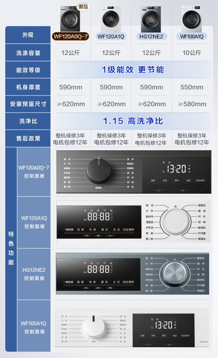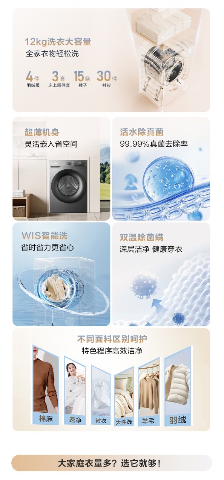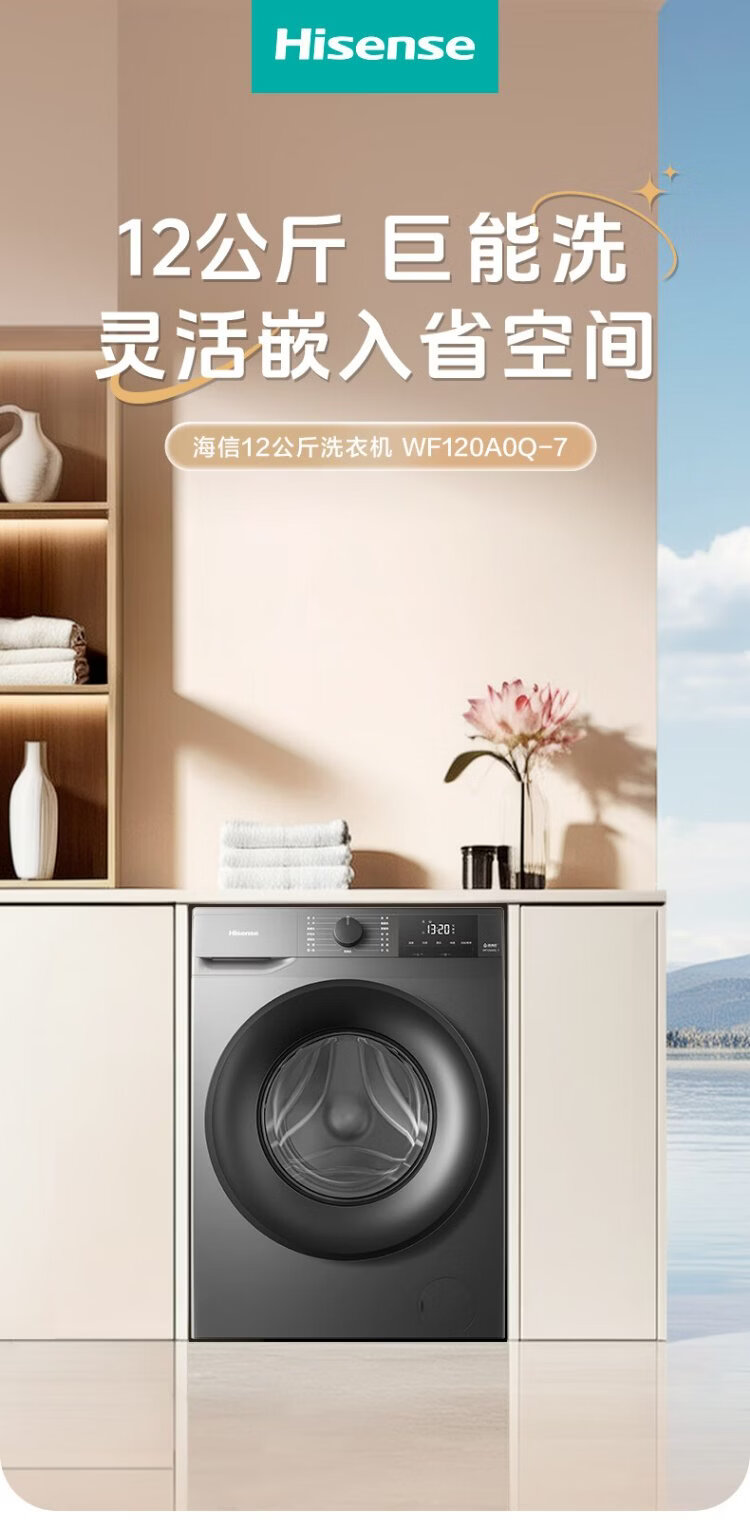 海信(Hisense)全自动滚筒单洗洗衣机 12KG超薄高洗净比一级能效 出租家用WF120A0Q-7以旧换新家电补贴 京东自营