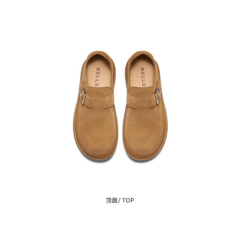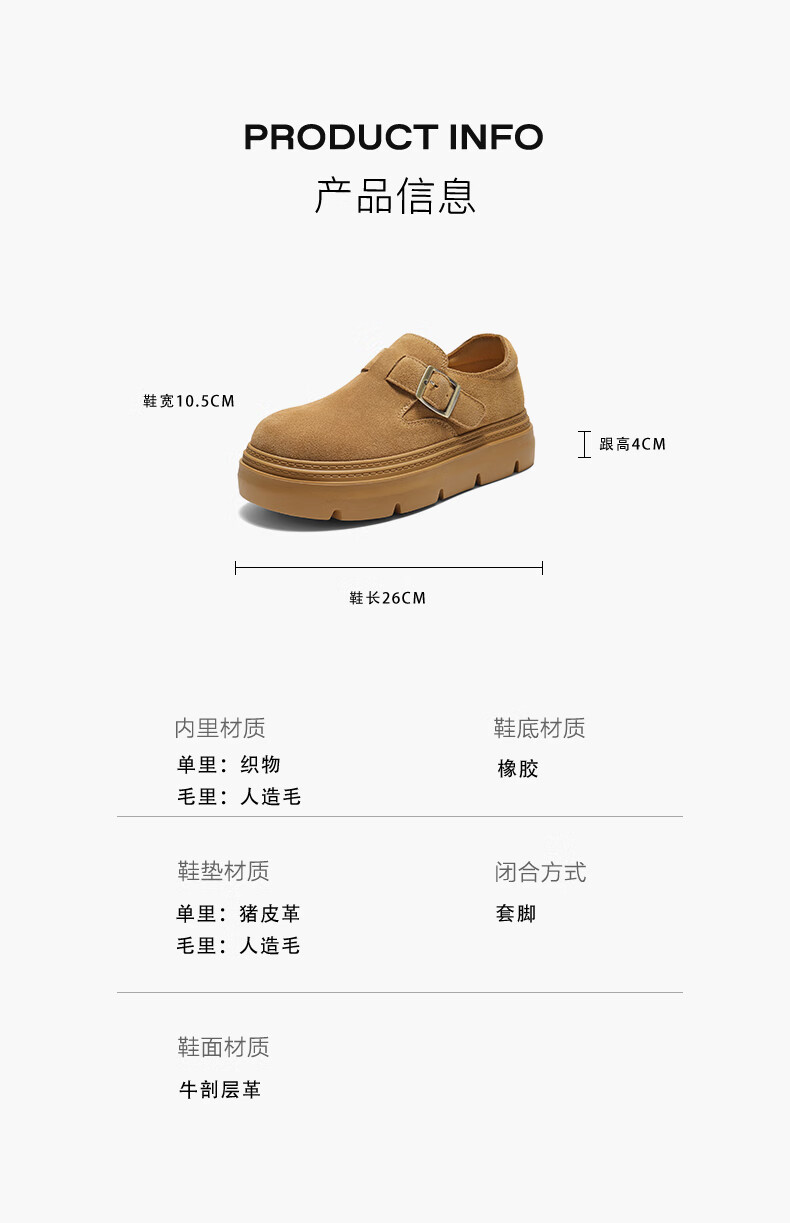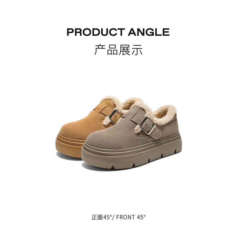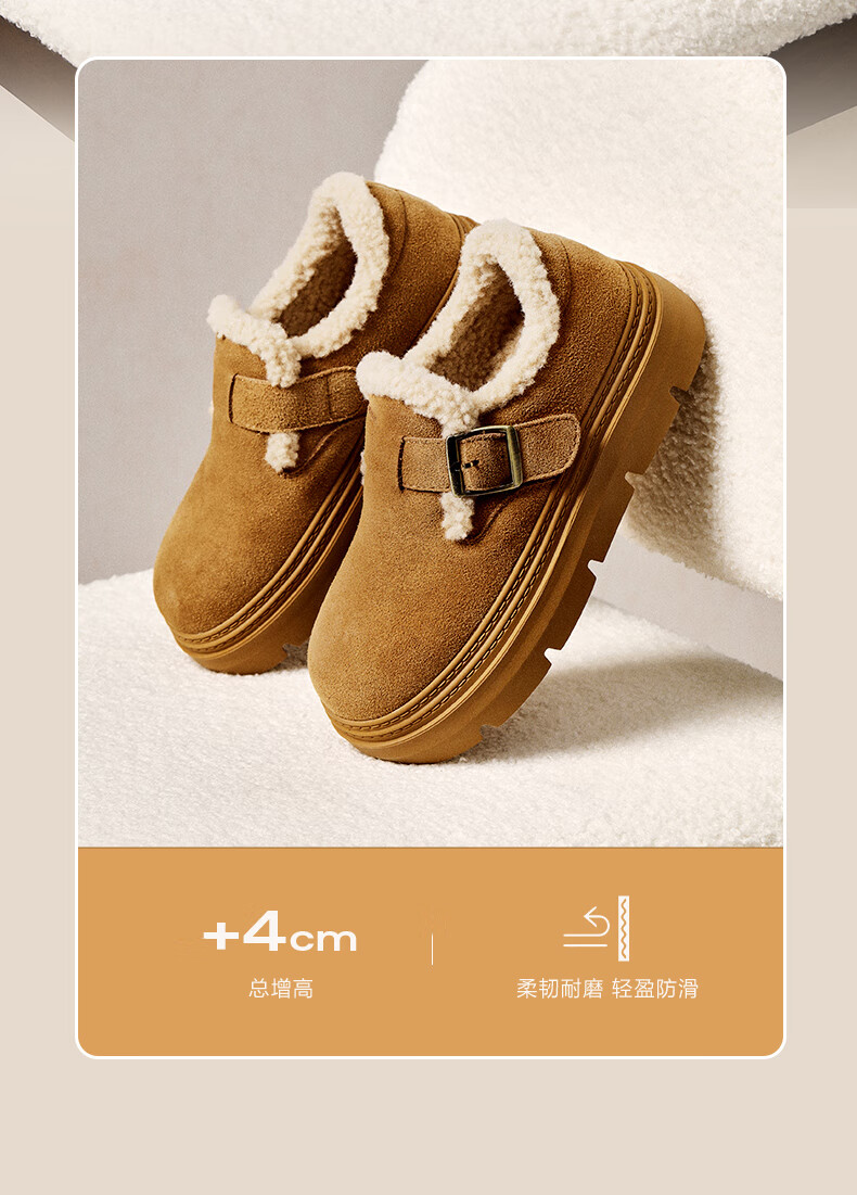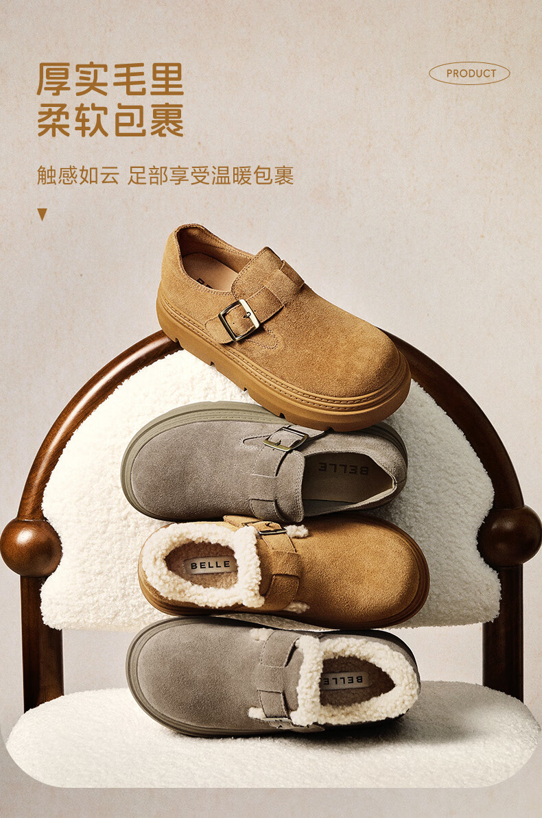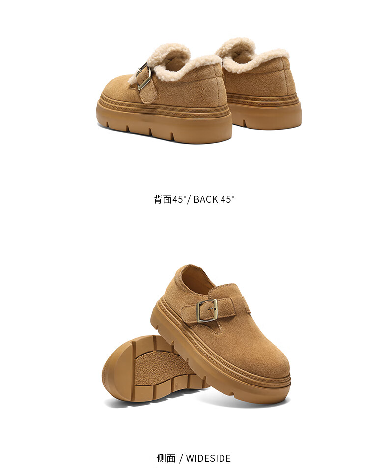 百丽厚底保暖毛毛鞋女2025冬新二层牛皮复古勃肯鞋JD009DM5 棕毛里 37