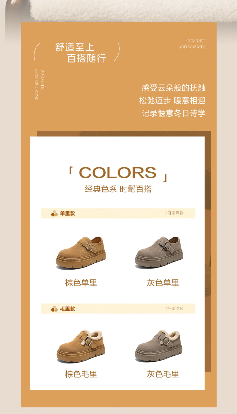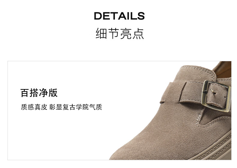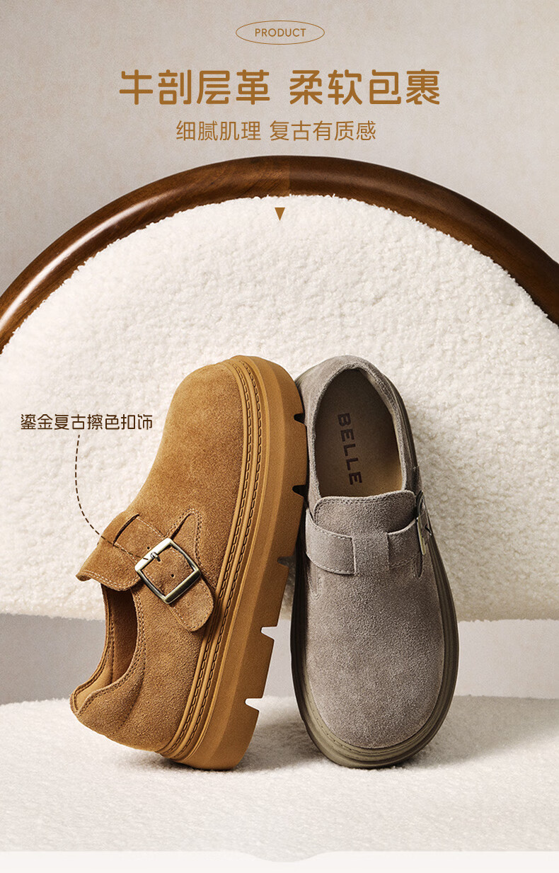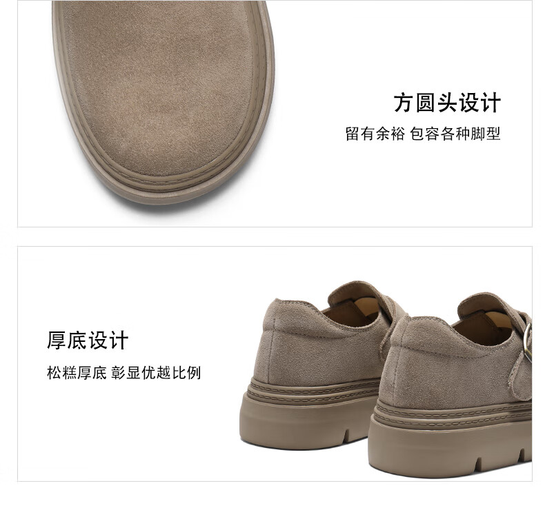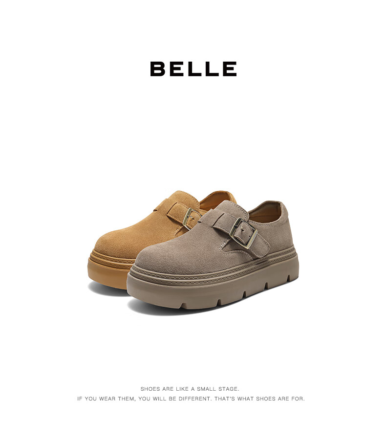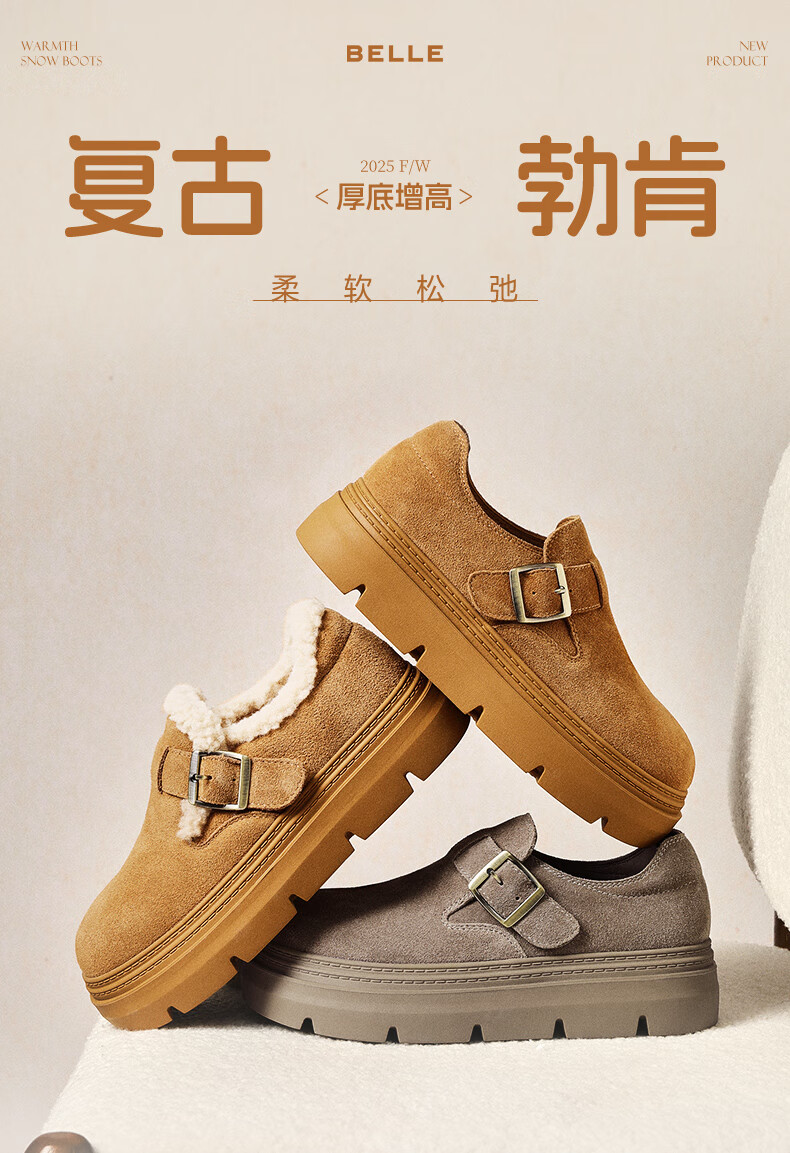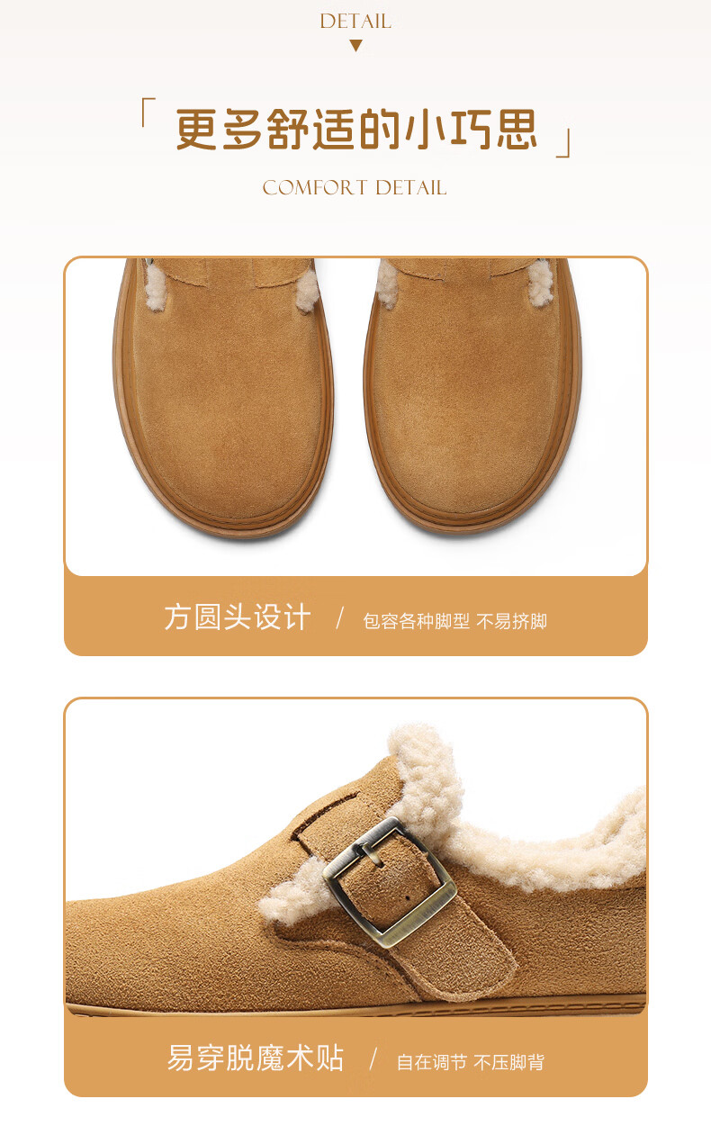 百丽厚底保暖毛毛鞋女2025冬新二层牛皮复古勃肯鞋JD009DM5 棕毛里 37