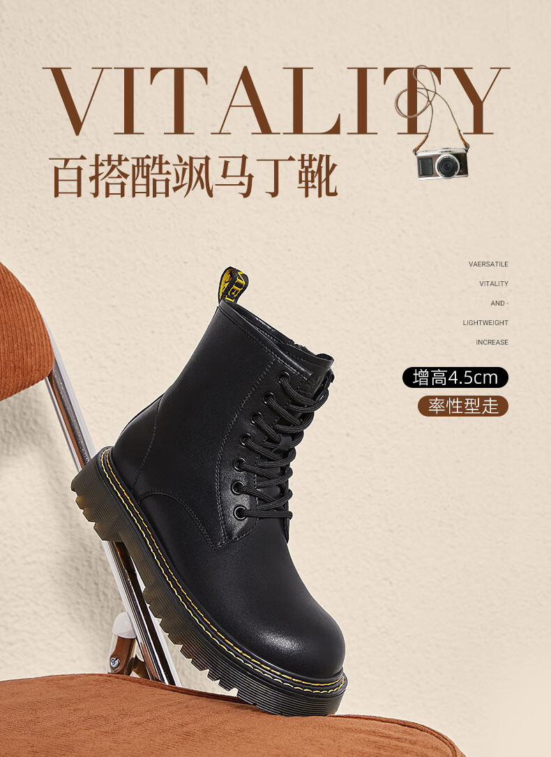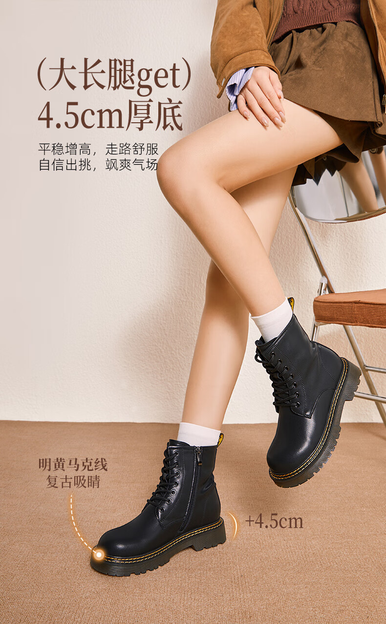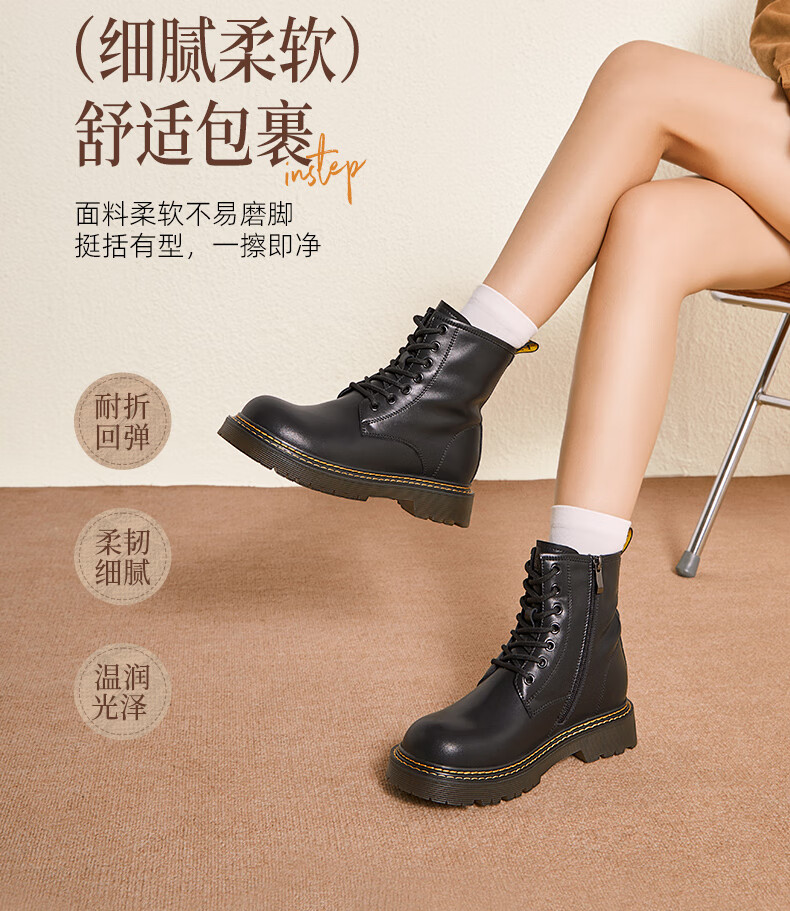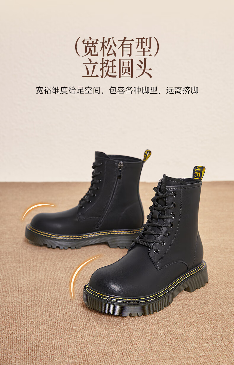 Camel (CAMEL) Martin boots women's new versatile leather and velvet thick-soled casual boots L25W283089 black 37