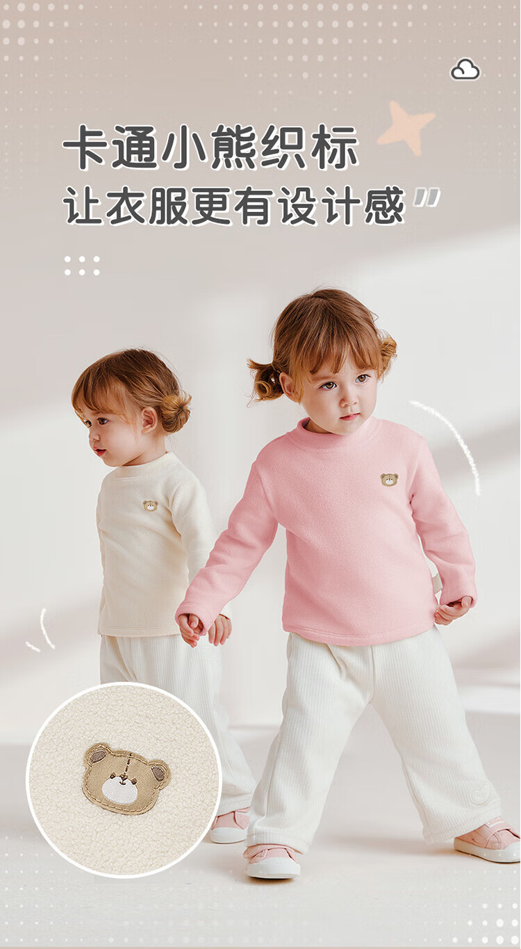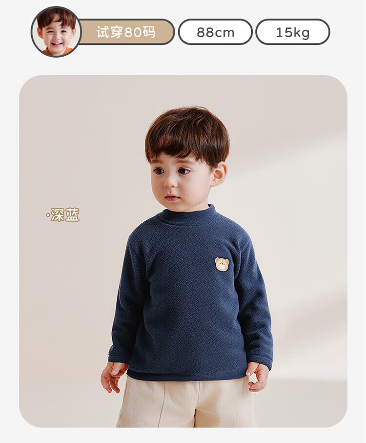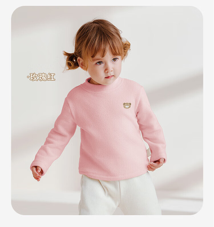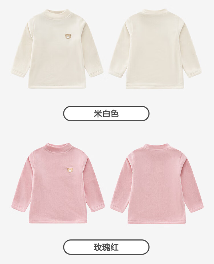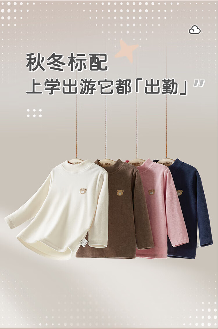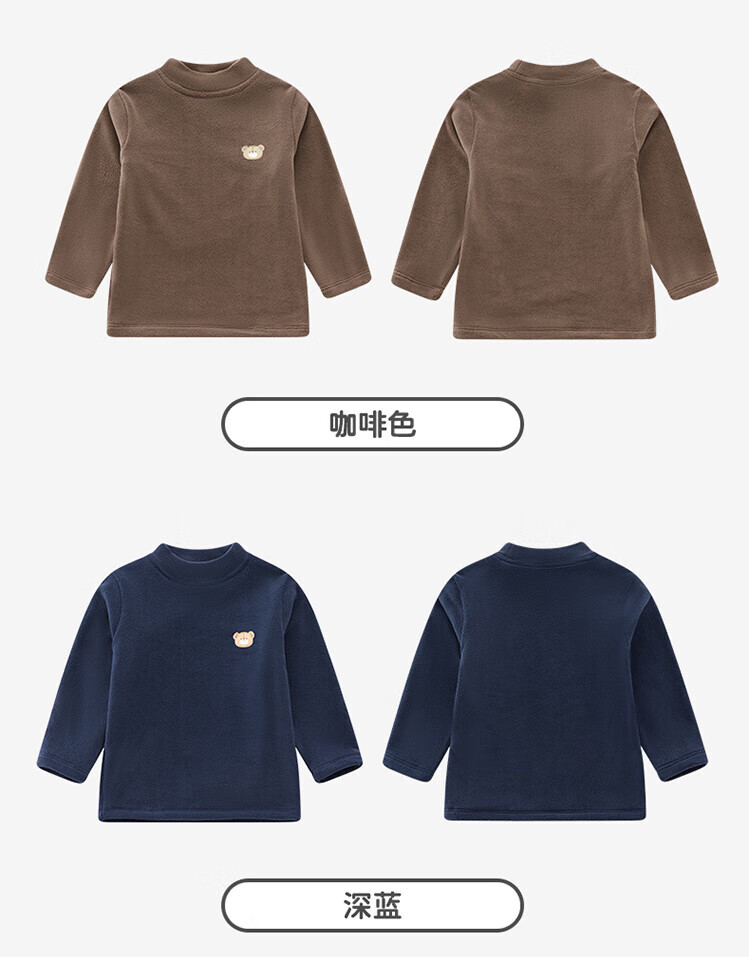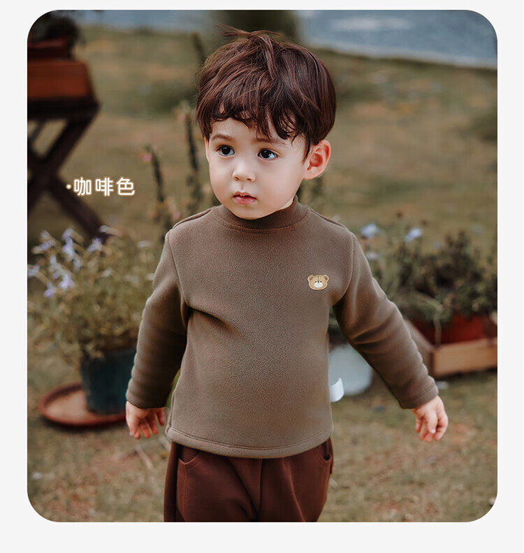 Rabbi children's top with velvet to keep warm for boys and girls, long-sleeved T-shirt, autumn and winter half turtleneck, brown 110