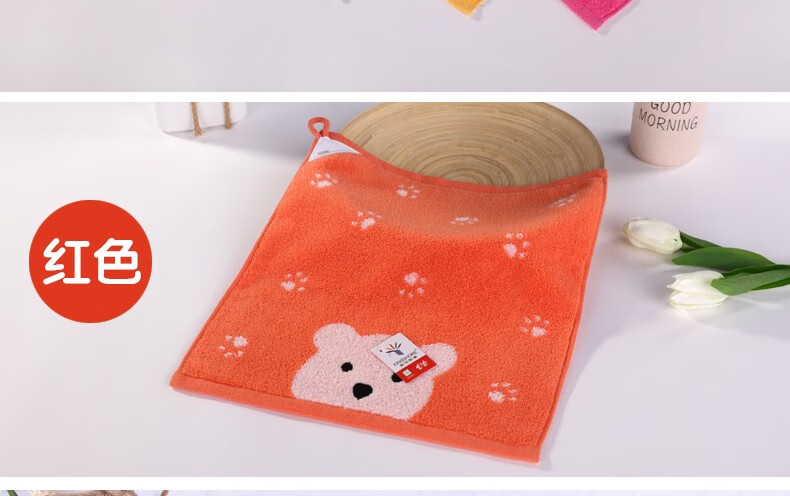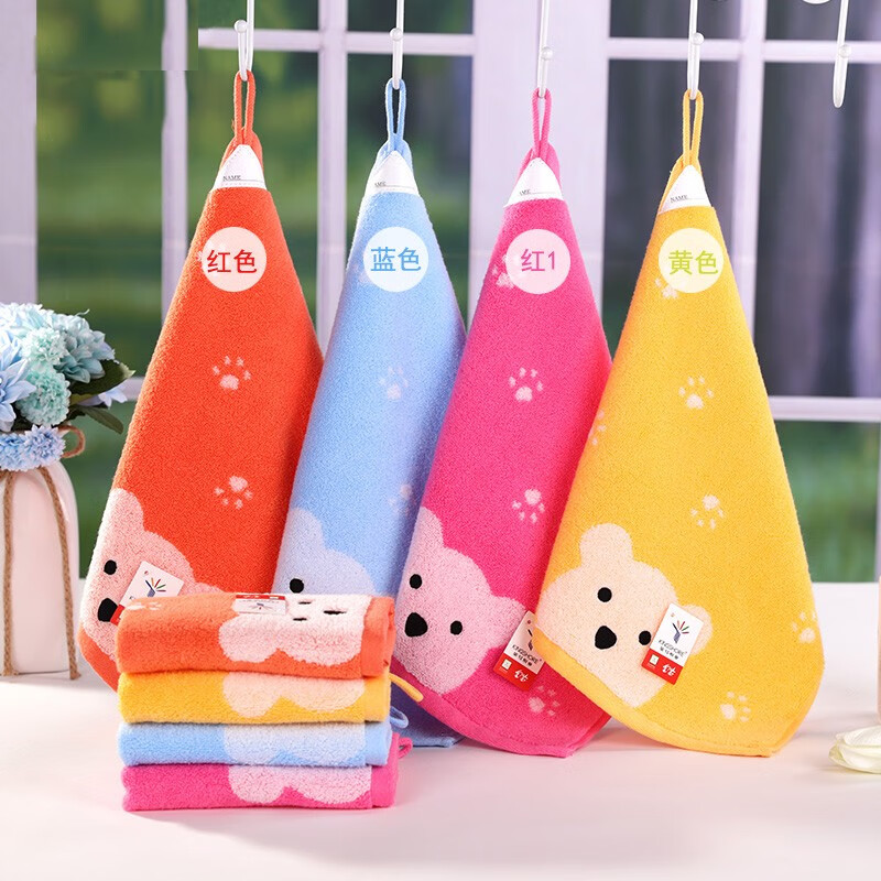 Gold number pure cotton twist-free hand towel children's towel square towel with lanyard children's saliva towel square small towel cartoon couple style kindergarten towel cartoon bear (red 1) 1 piece 30*30cm