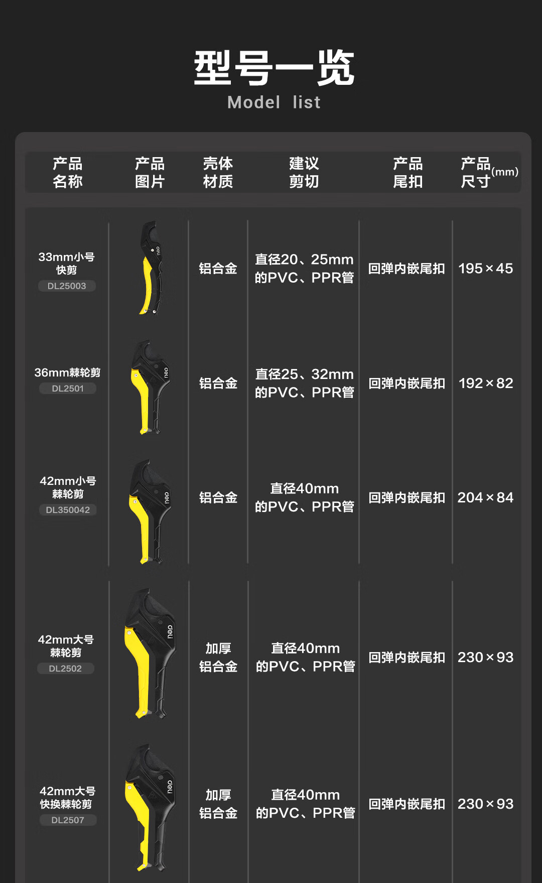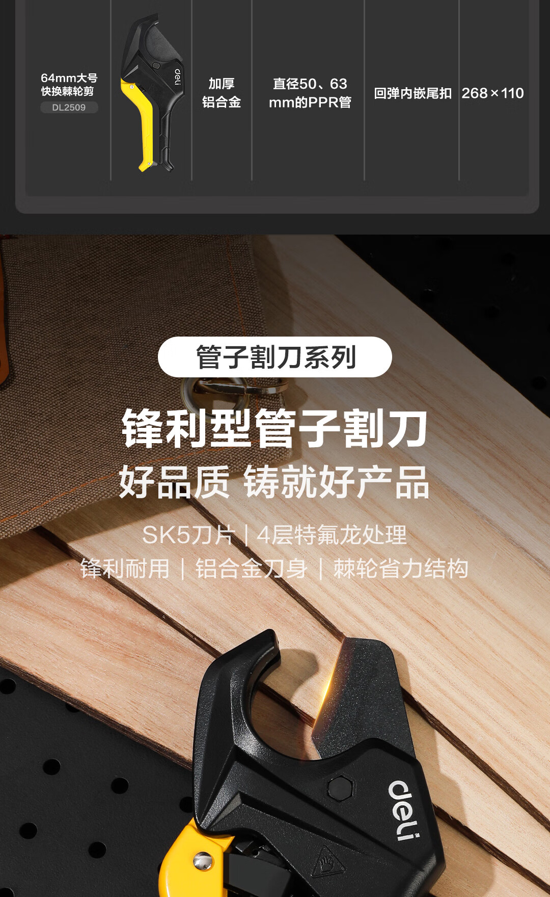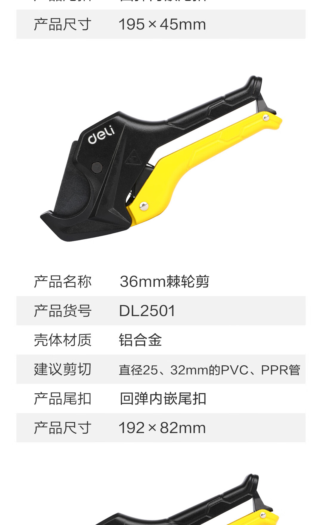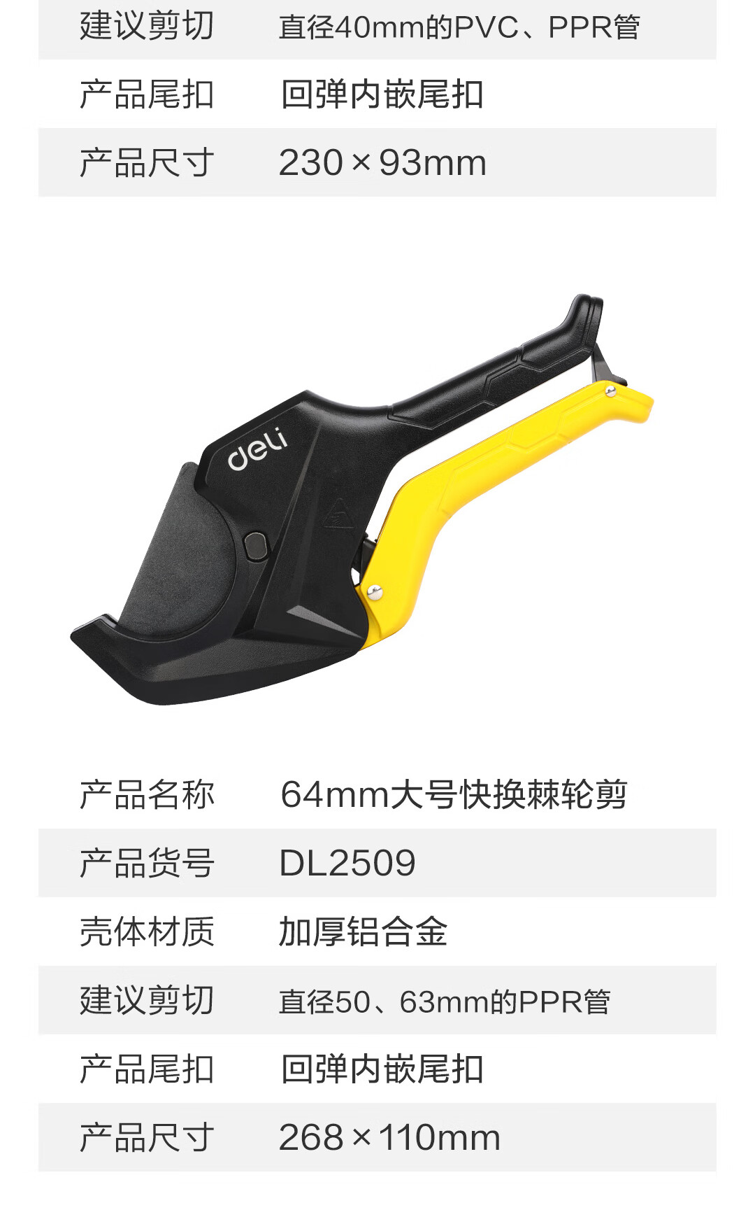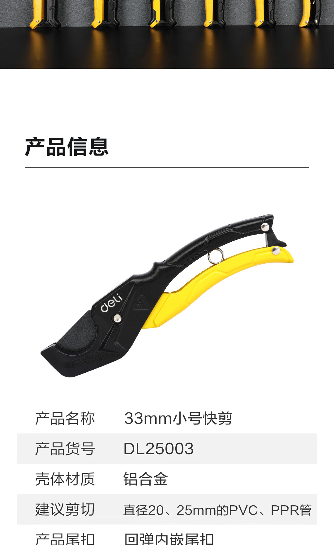 Deli pipe cutter PVC pipe cutter PPR scissors quick cut line pipe water pipe cutter pipe cutter electrician pipe knife pipe cutter cutter 33mm DL350033