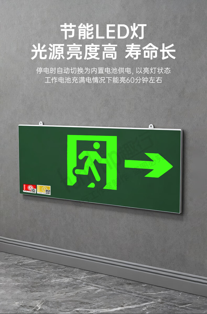 Quxing Fire Emergency Sign Light 2025 New National Standard LED Safety Exit Lighting Evacuation Indicator Light Single Side Right