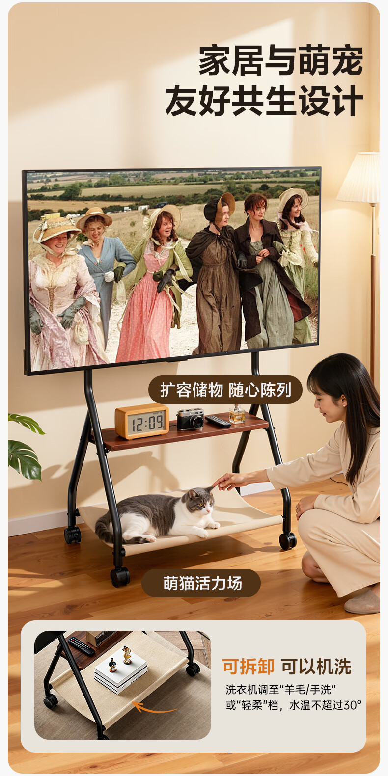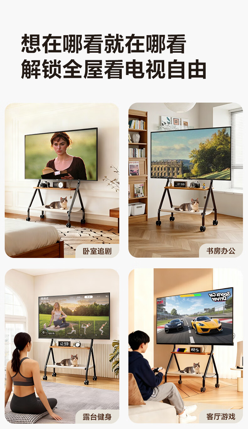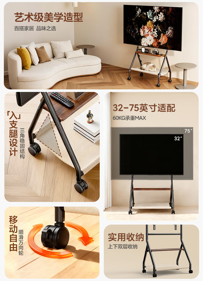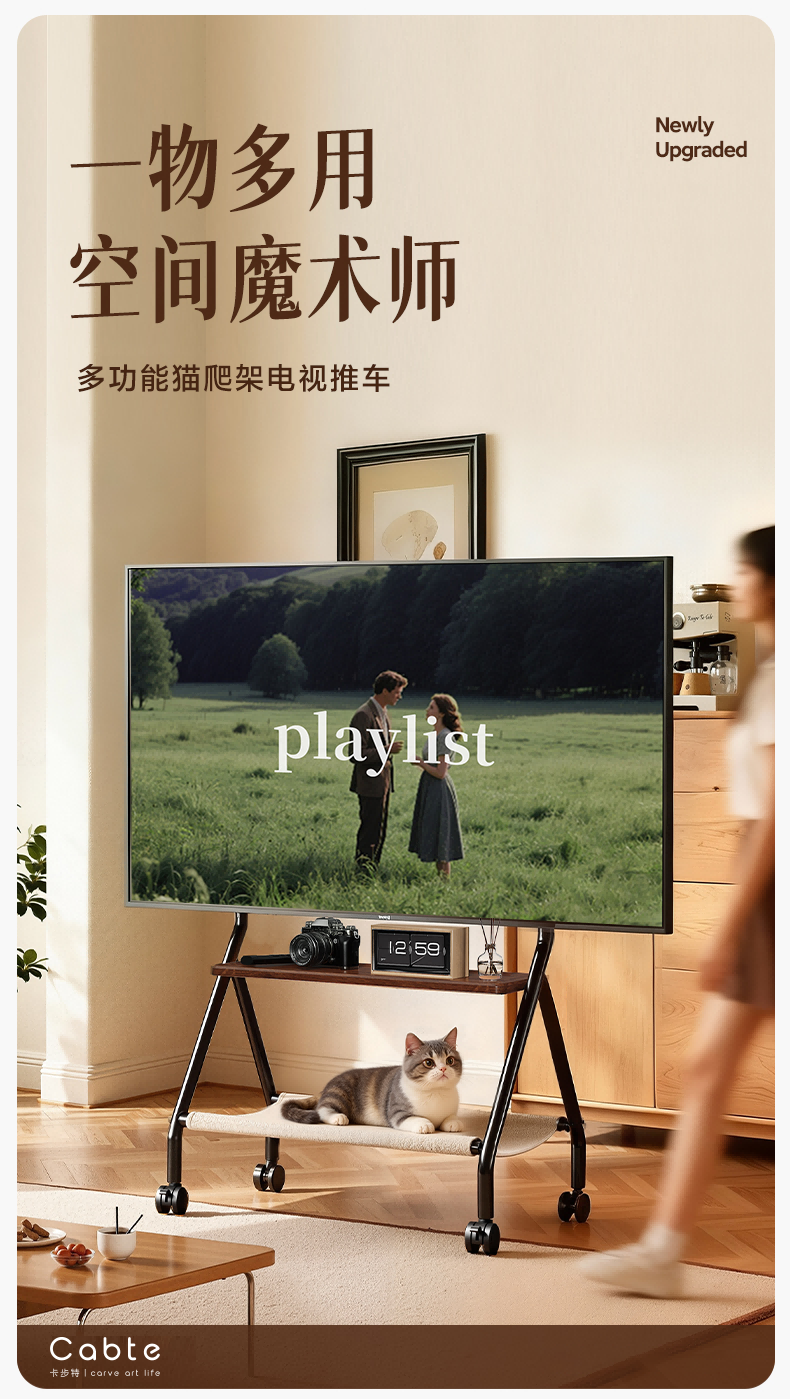 CABTE 32-75-inch mobile TV bracket cat climbing frame cart art cart 32/43/55/65/TV hanger TV mobile cart universal TV cart