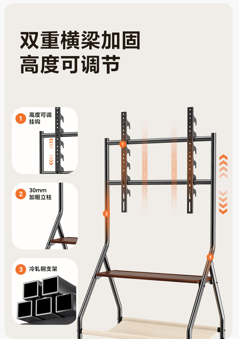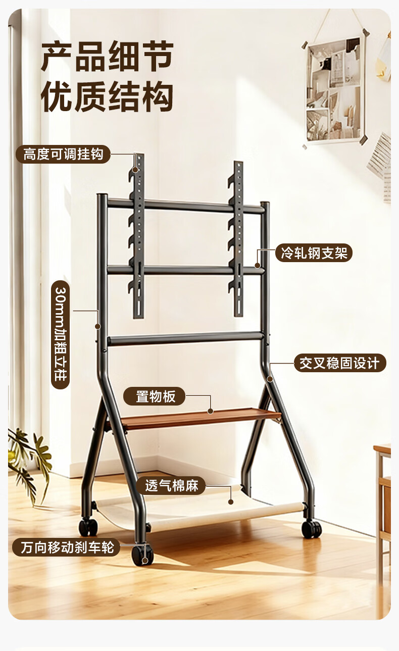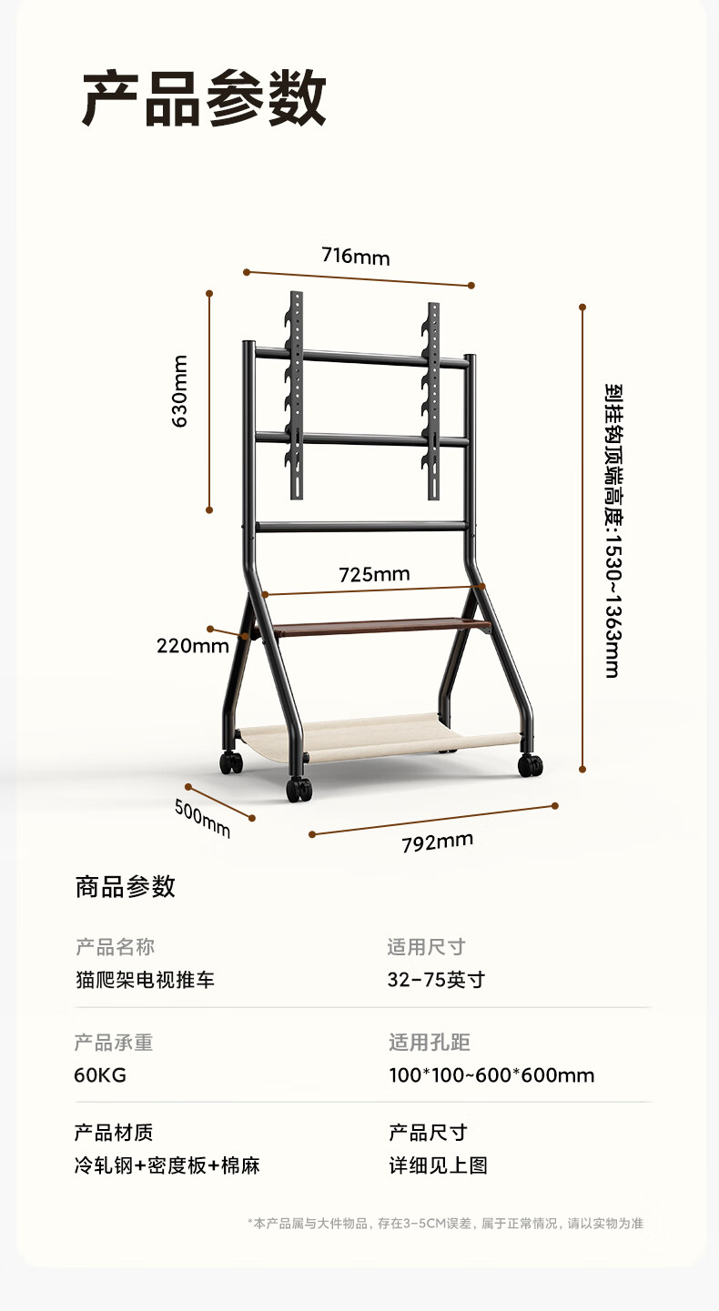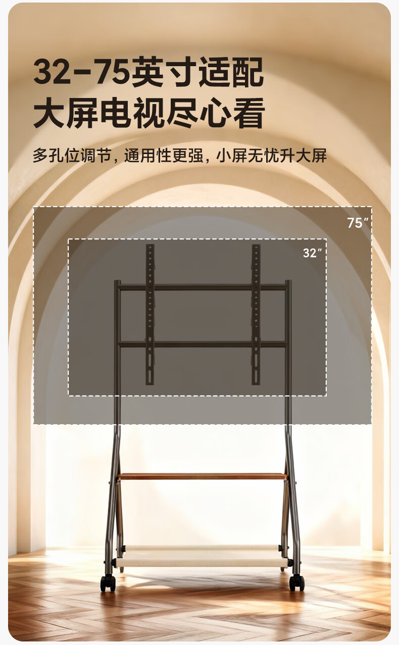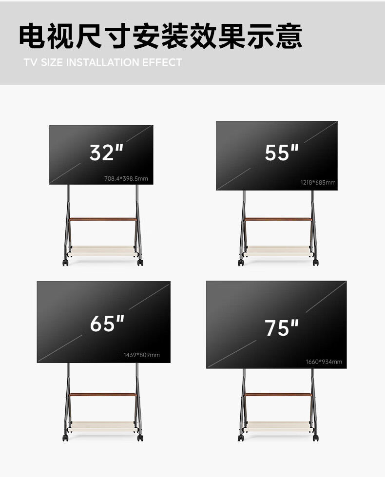 CABTE 32-75-inch mobile TV bracket cat climbing frame cart art cart 32/43/55/65/TV hanger TV mobile cart universal TV cart