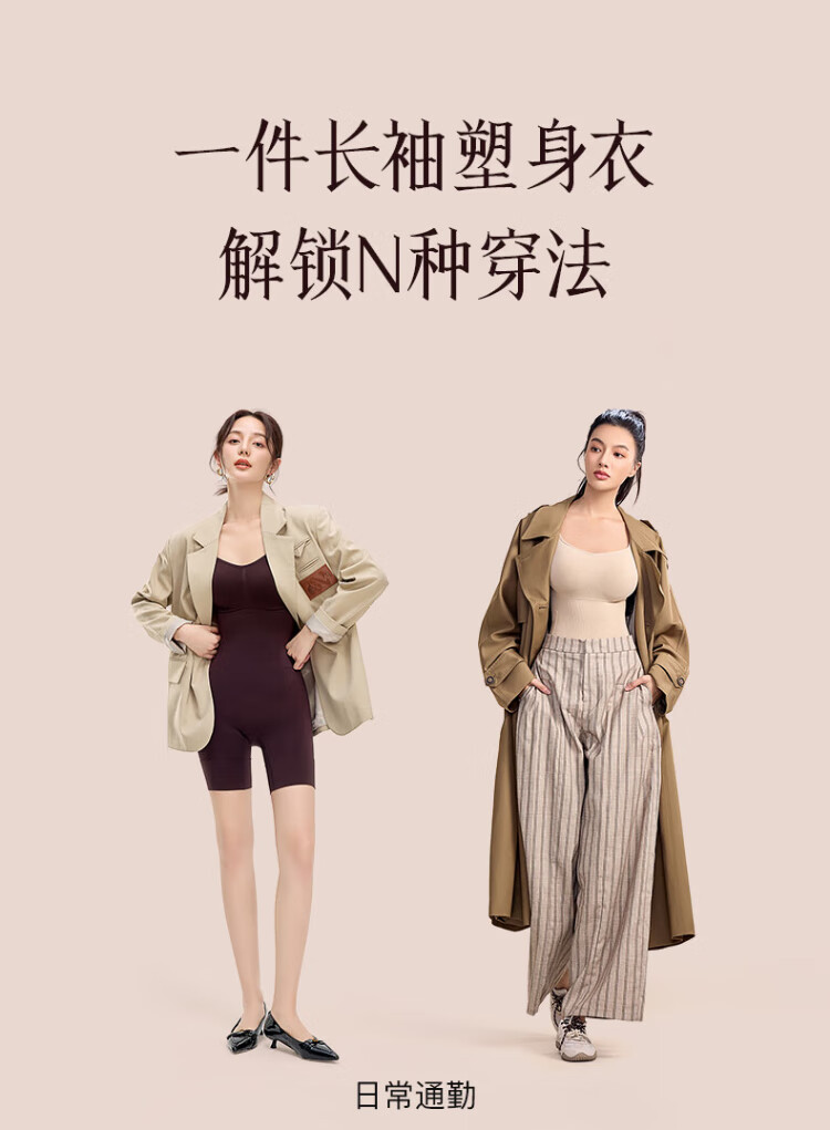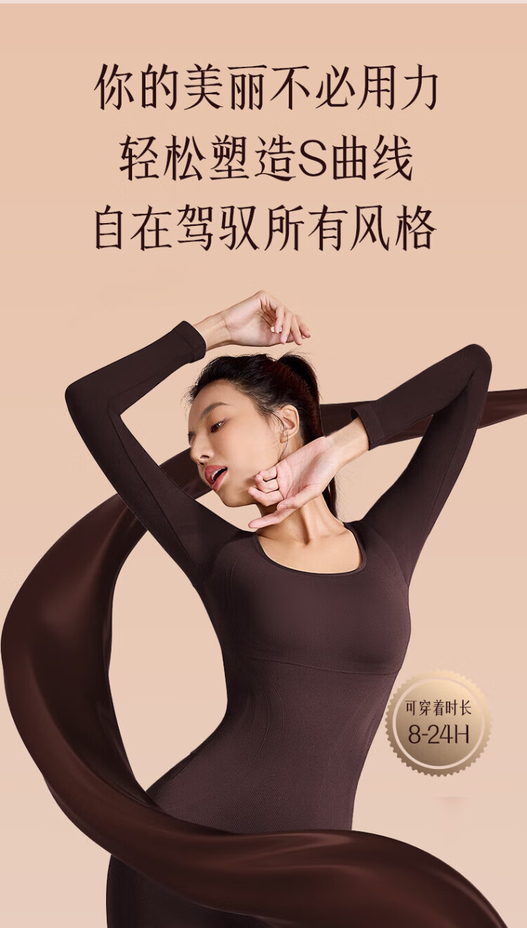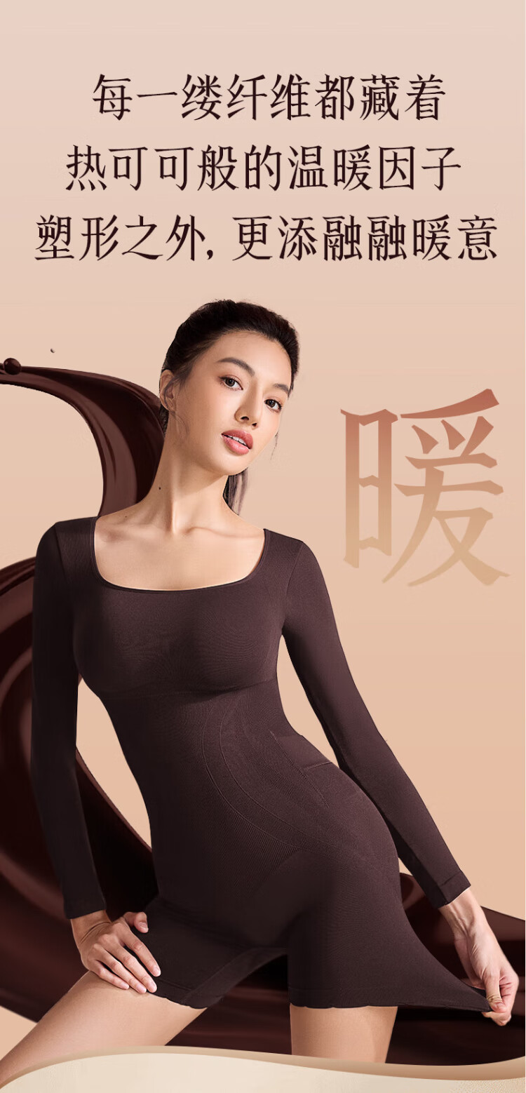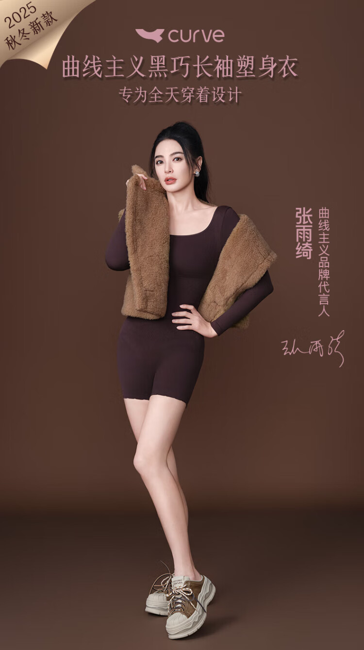Curveism Zhang Yuqi's same style black long-sleeved shapewear warm tummy control butt lift corset bodysuit black M